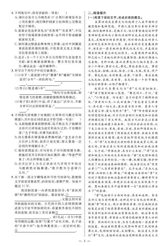 国学阅读与积累,配套专项练习,助力能力巩固与提升