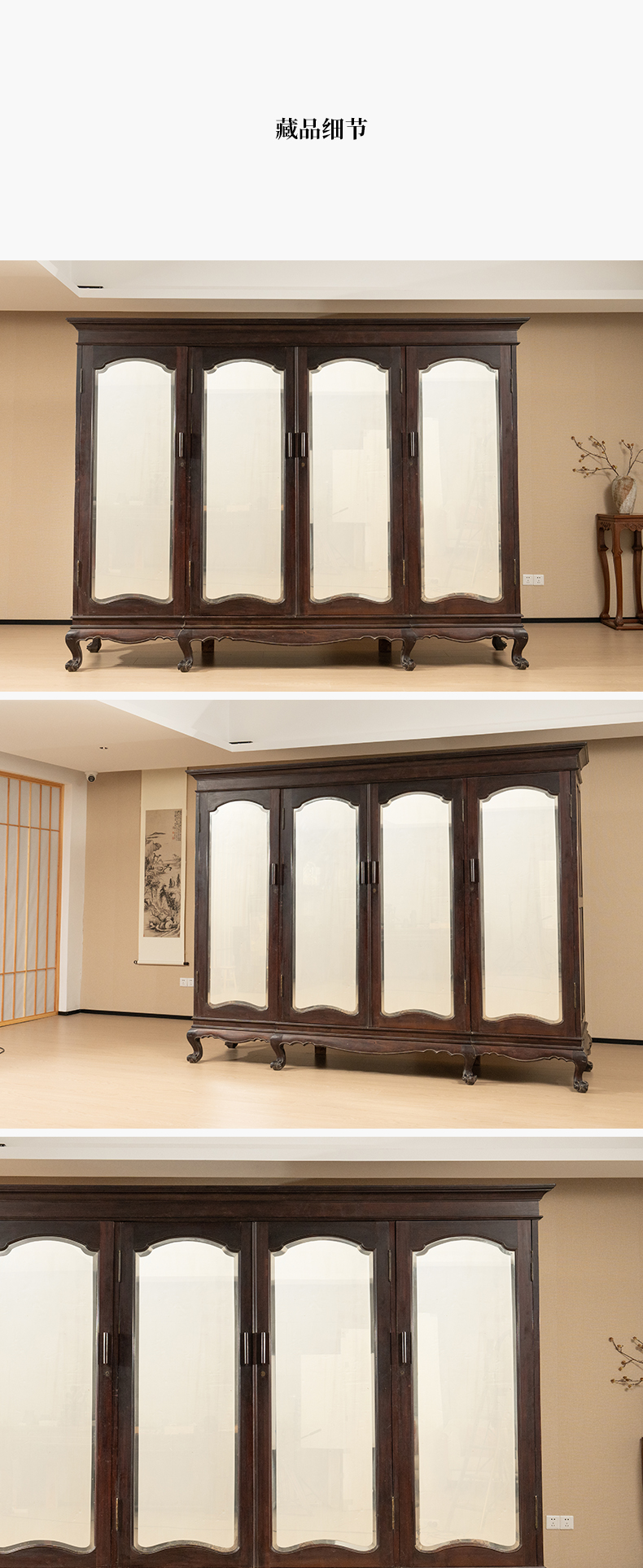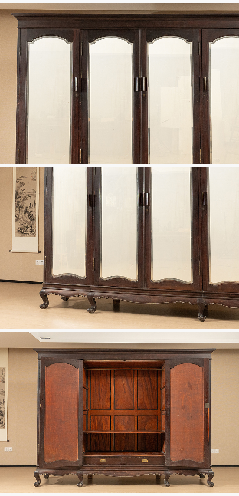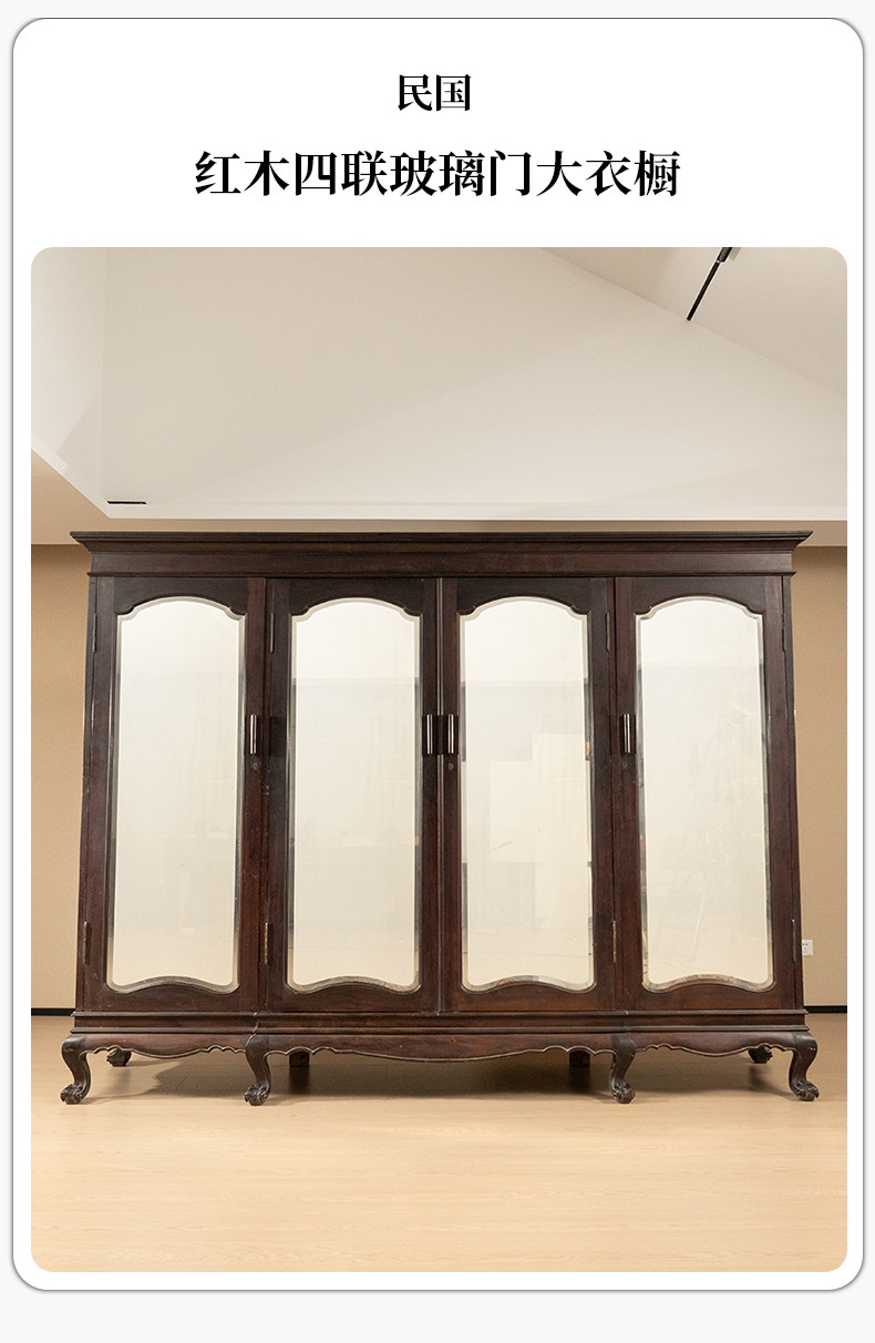 民国 红木四联玻璃门大衣橱