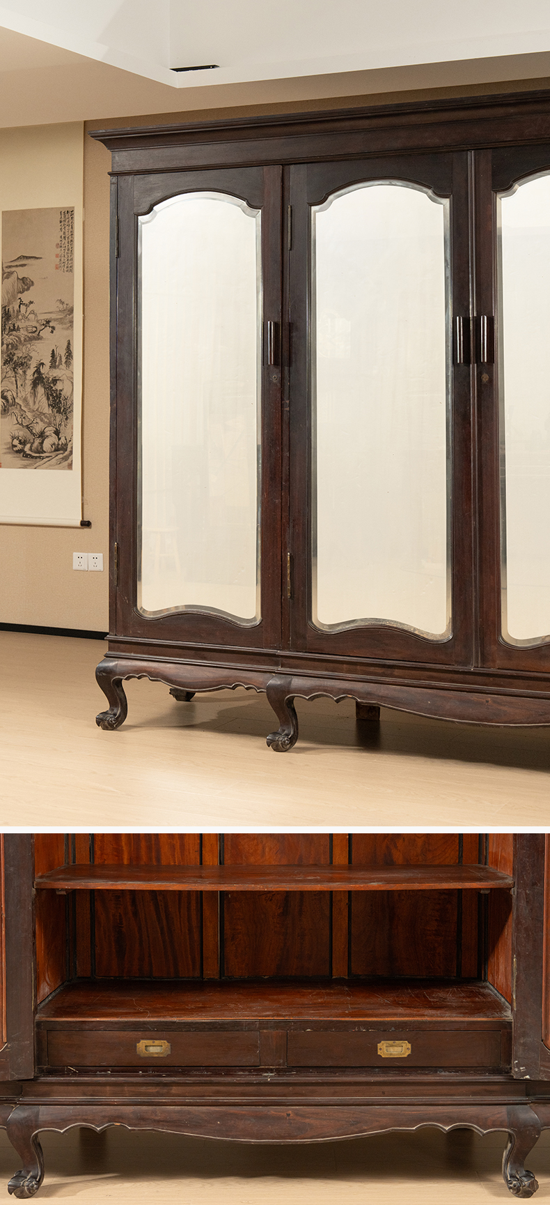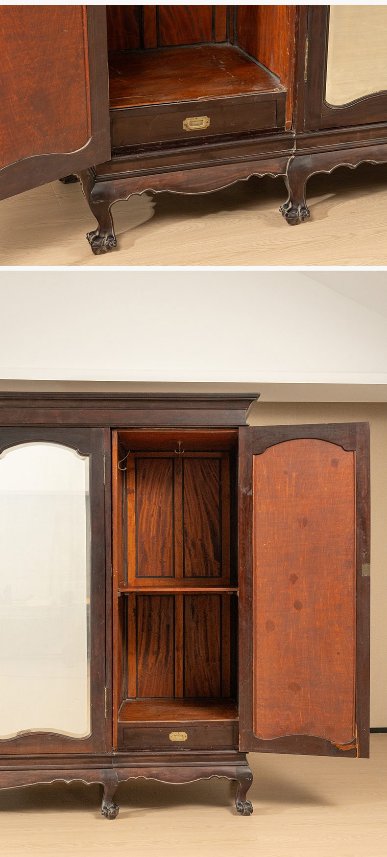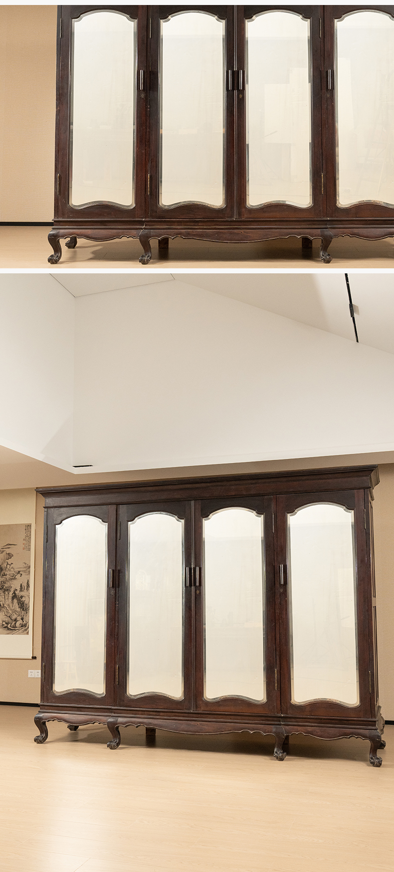 民国 红木四联玻璃门大衣橱