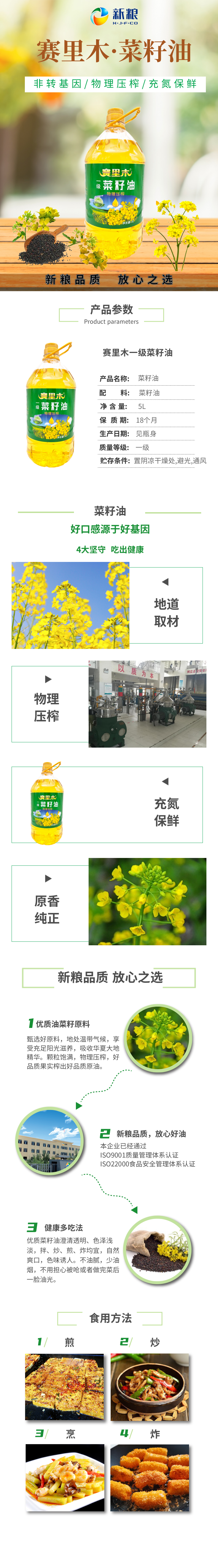 赛里木·一级菜籽油5L 地道取材 物理压榨