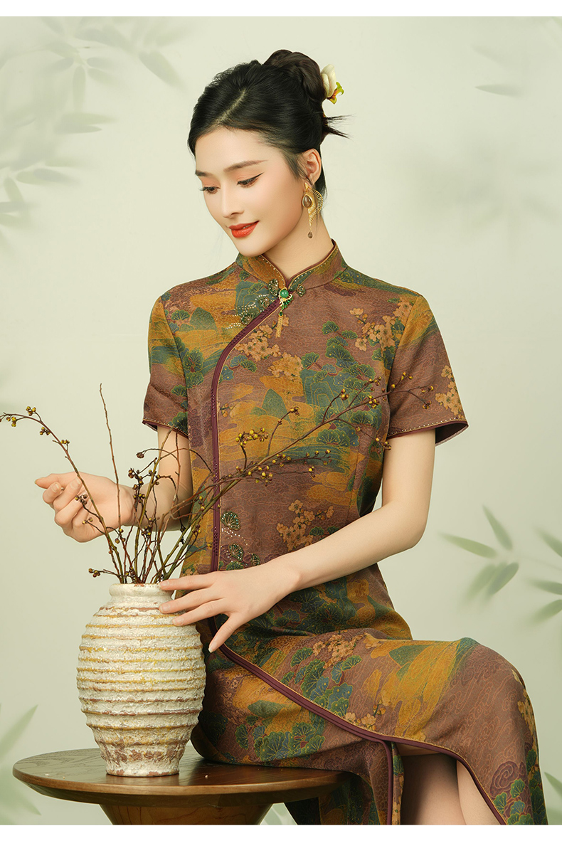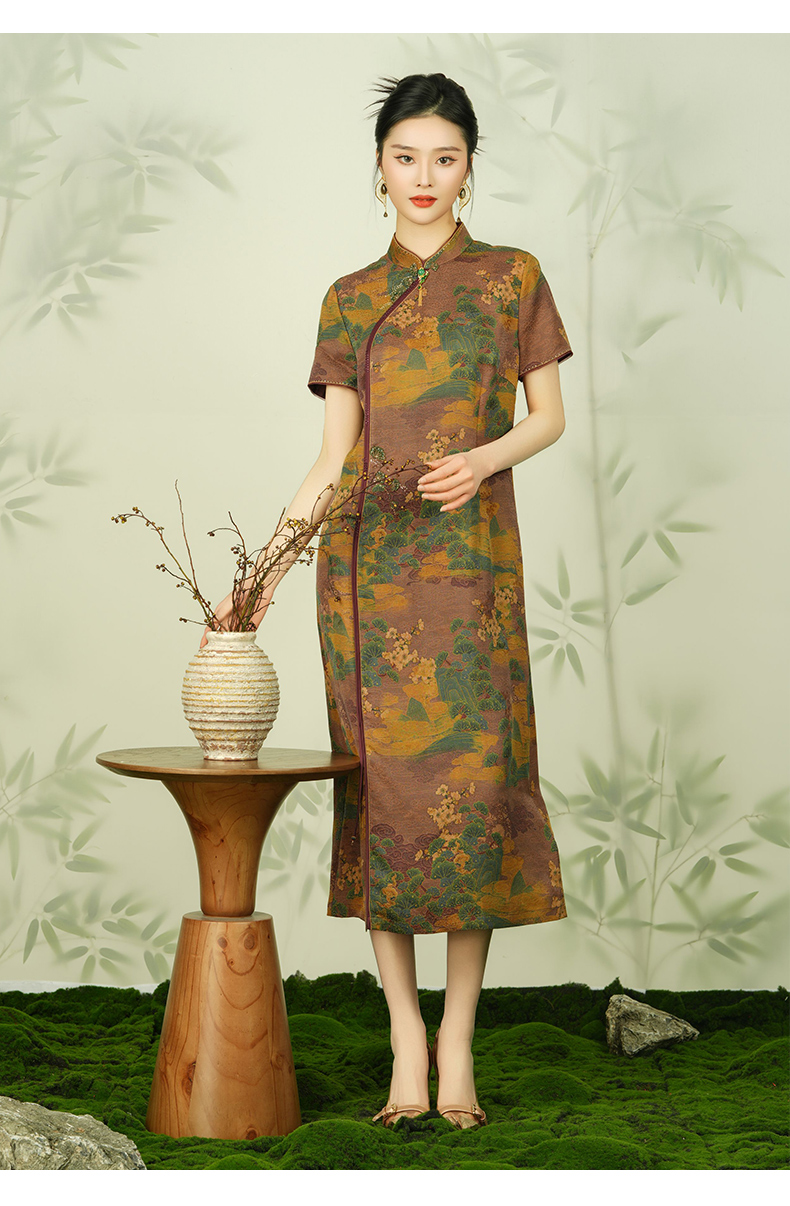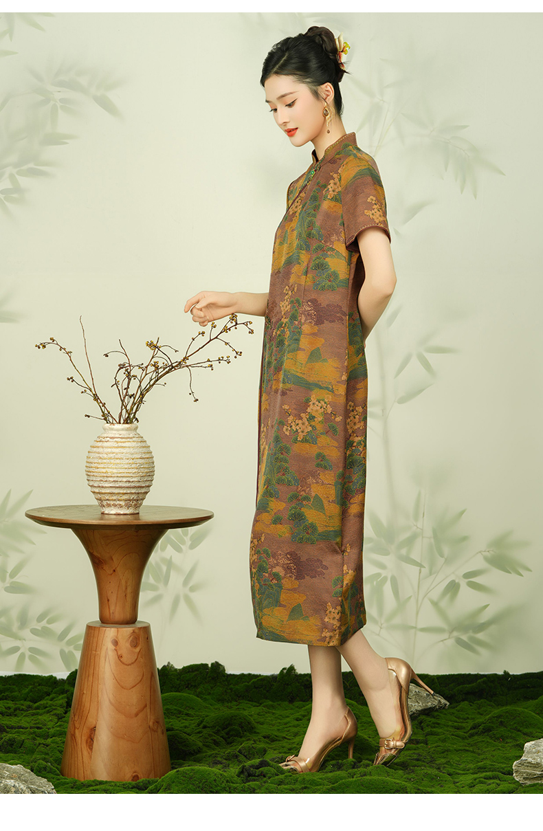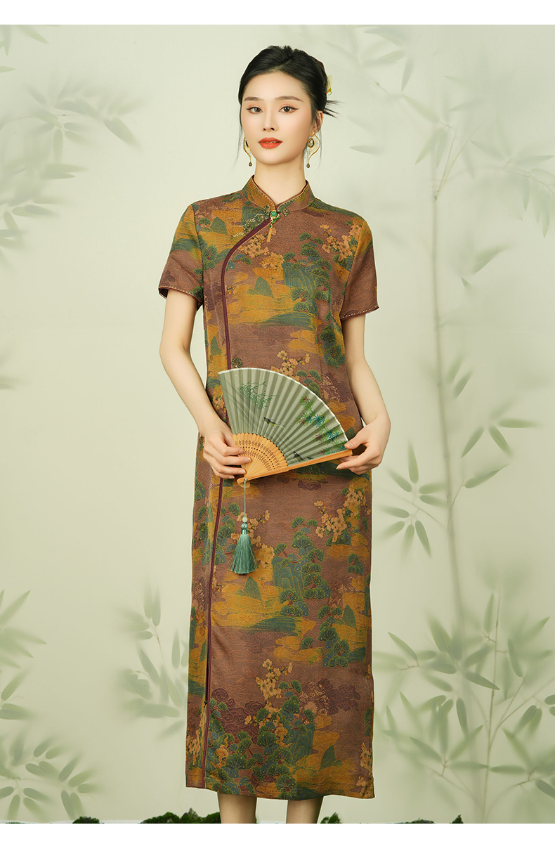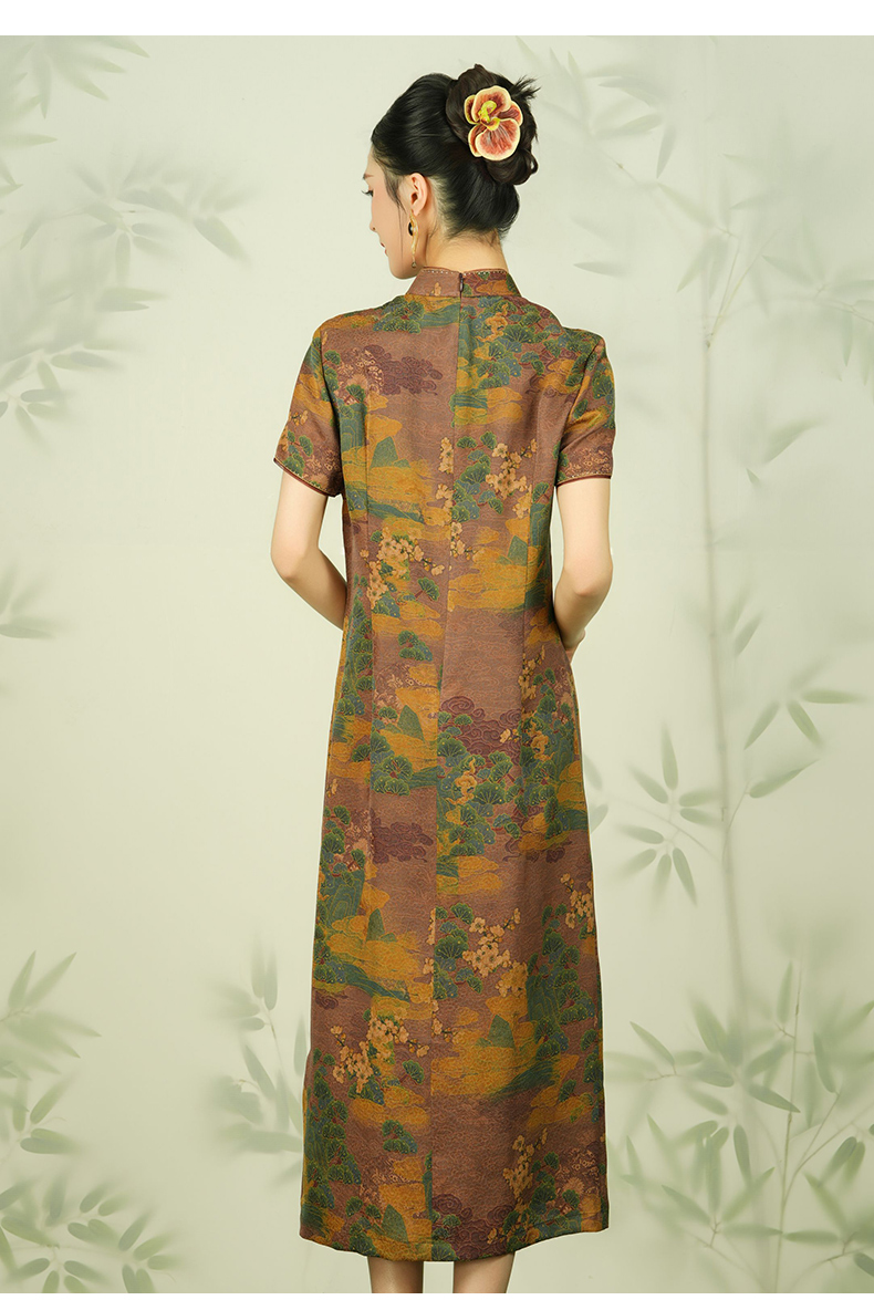 【浮世绘】【香云纱】乔万尼24mm重磅真丝连衣裙复古祥云设计EM2E796