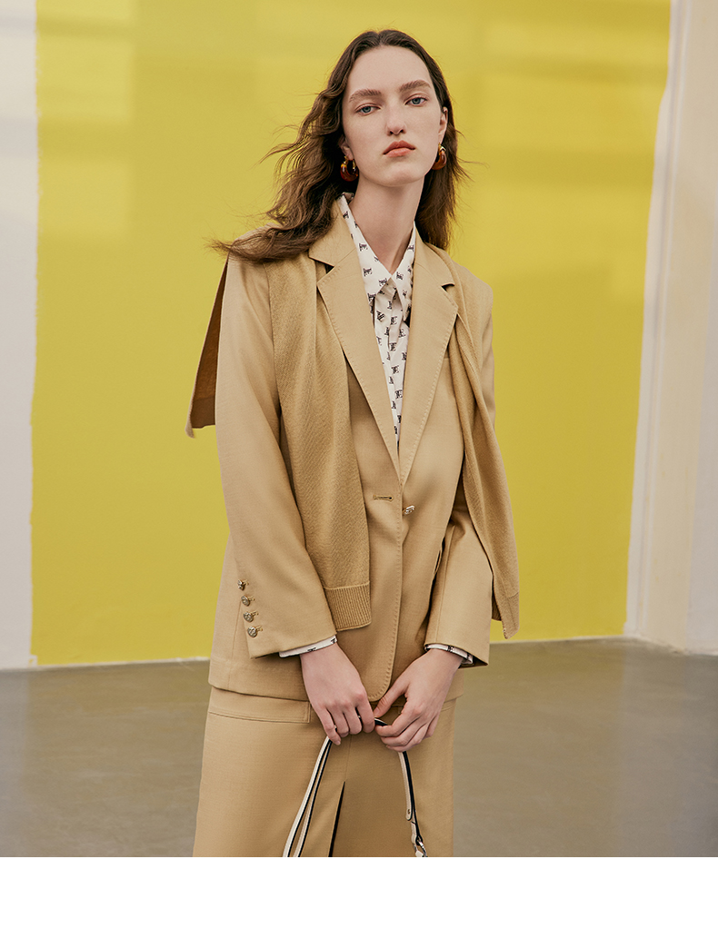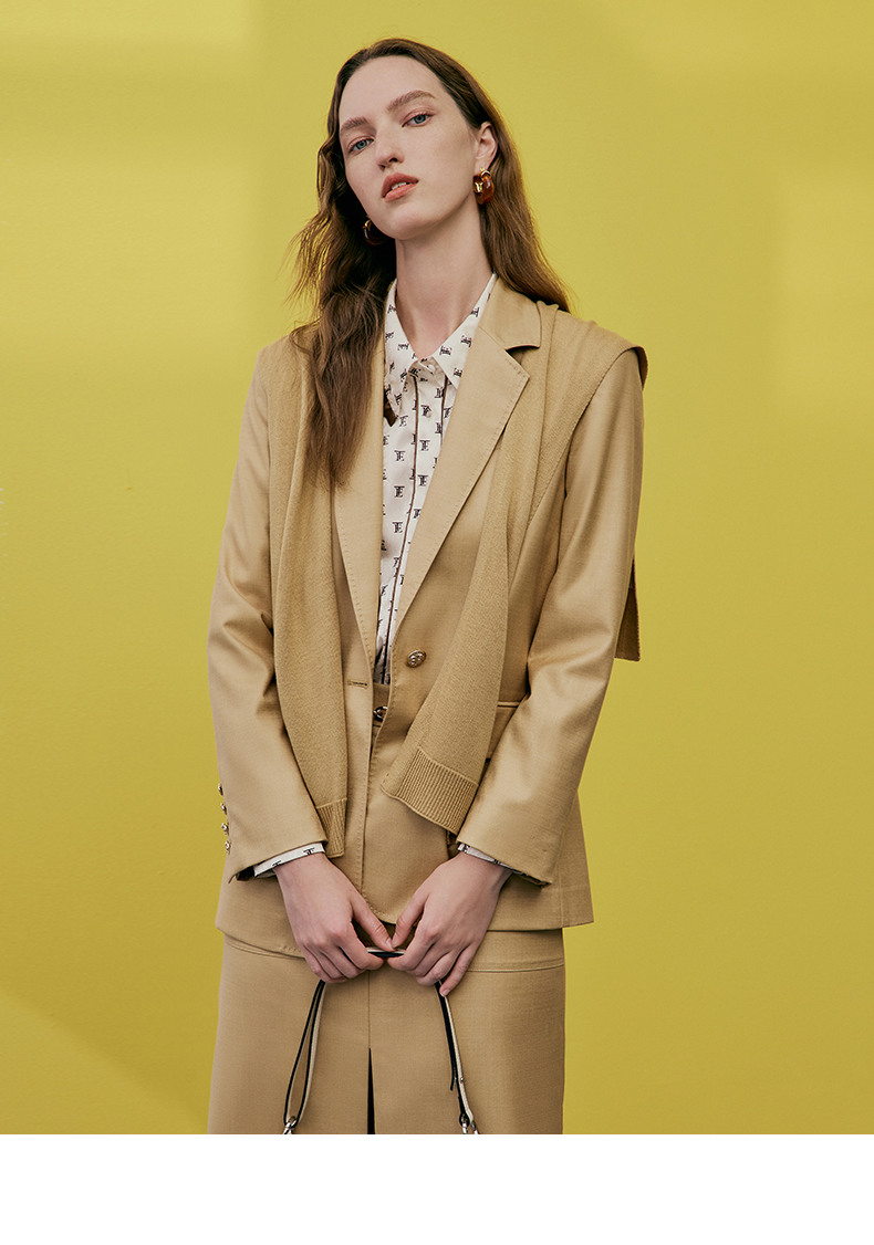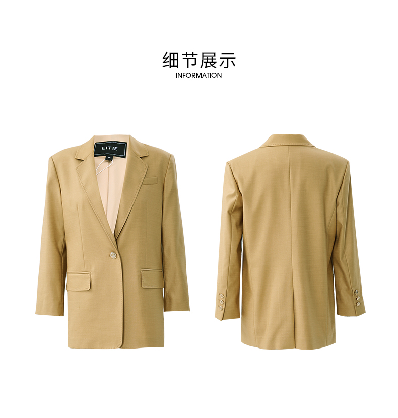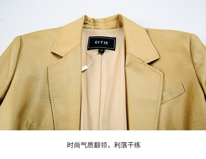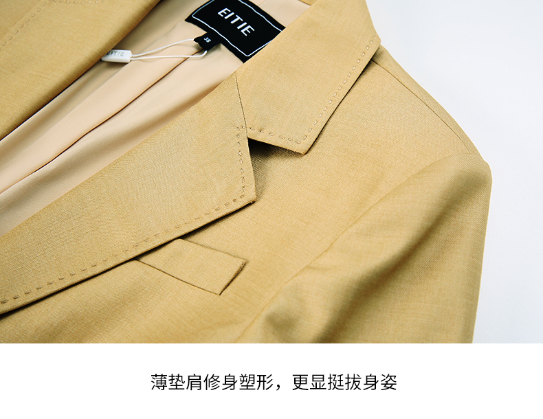 EITIE爱特爱夏季新款洋气西装领收腰显瘦灯笼袖连衣裙女B2107710