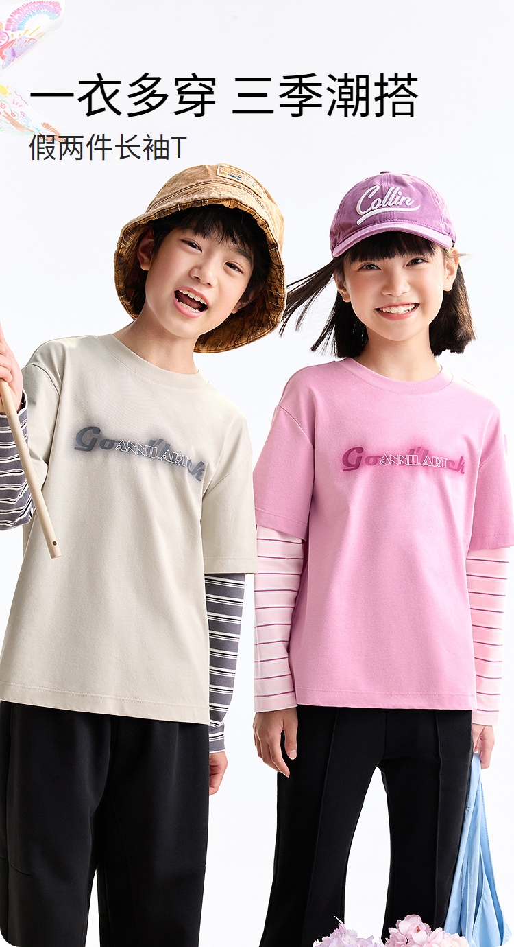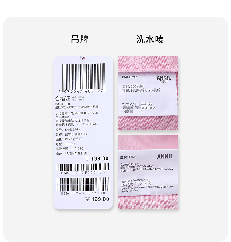 男女童圆领长袖针织衫春季新款安奈儿童装EM611743