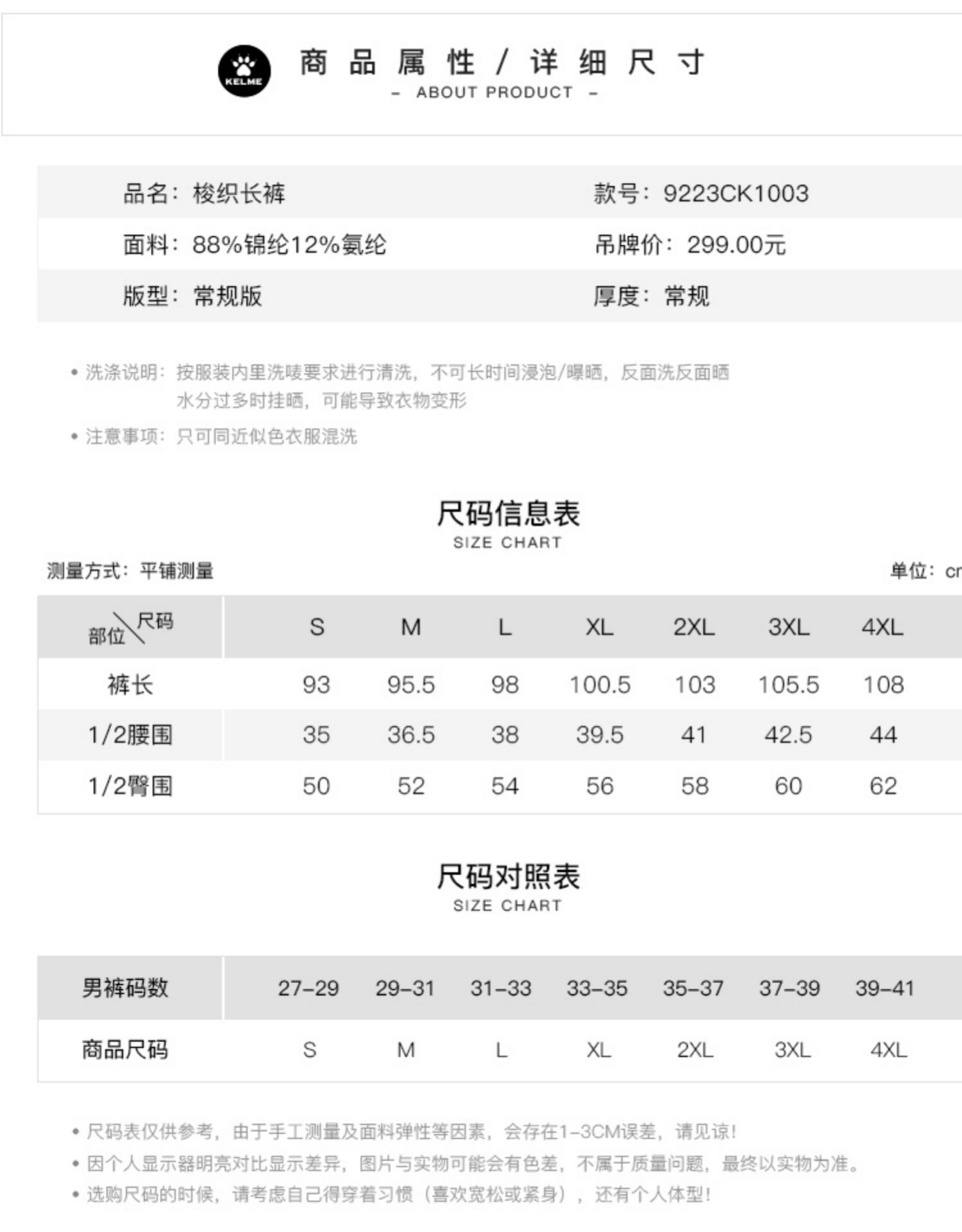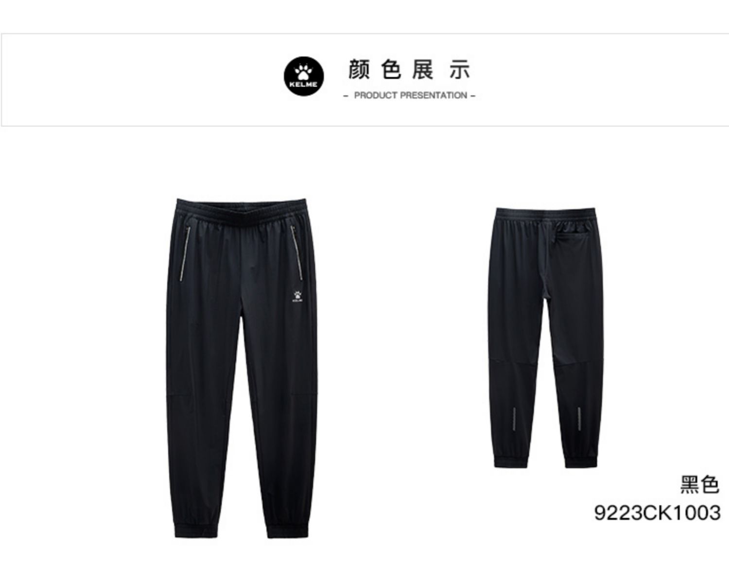 卡尔美运动裤男2022新款束脚梭织吸湿速干透气跑步长裤