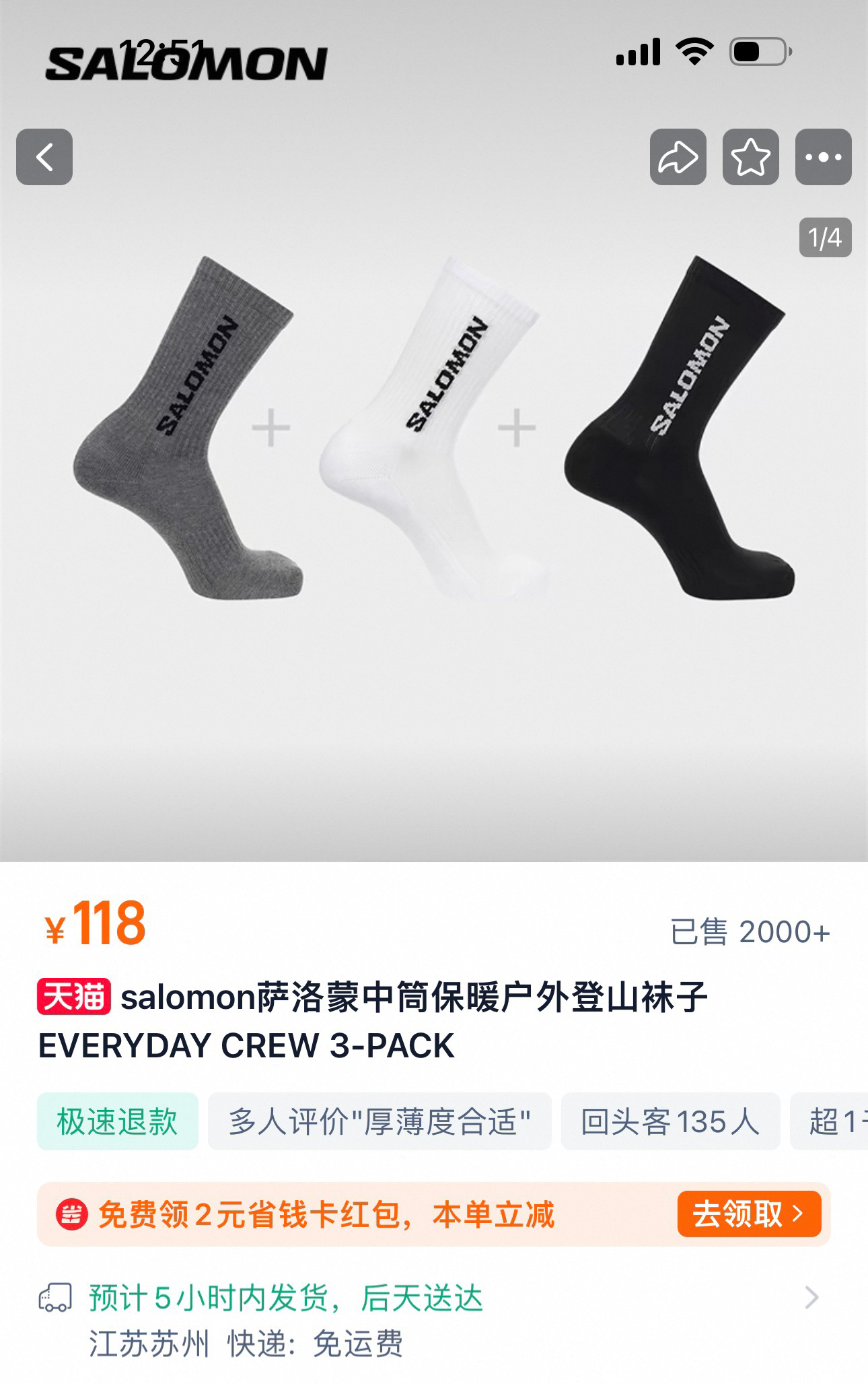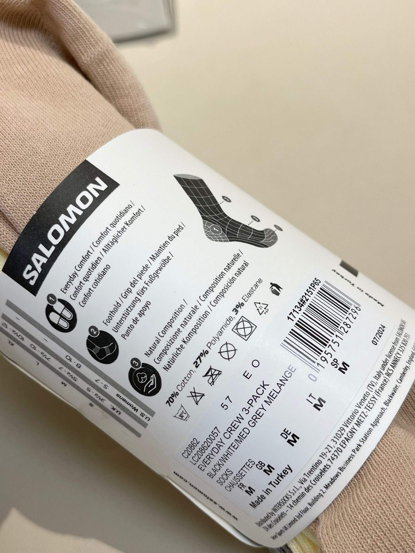 顺丰包邮 已入库,贸易公司订单剩余,独家发售,纯原 salomon萨洛蒙evergdag 袜子~ 一盒三双 分中筒,短筒,尺码 M (39-41脚)数量有限 拼手速,遇到正单闭眼囤就可以! 易耗品建议多备几双!