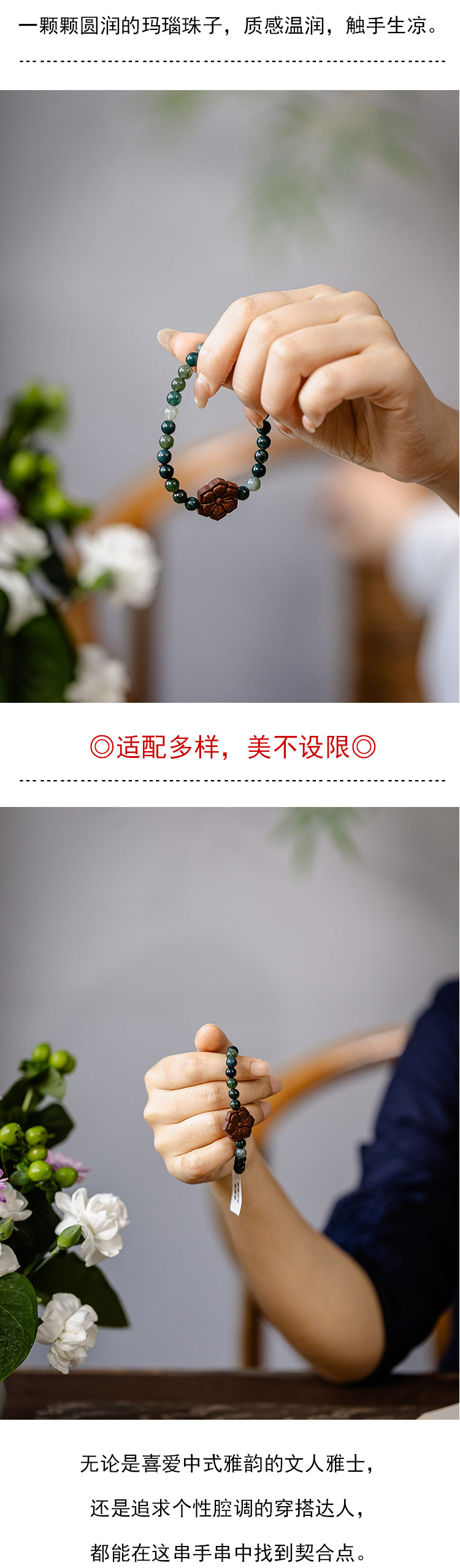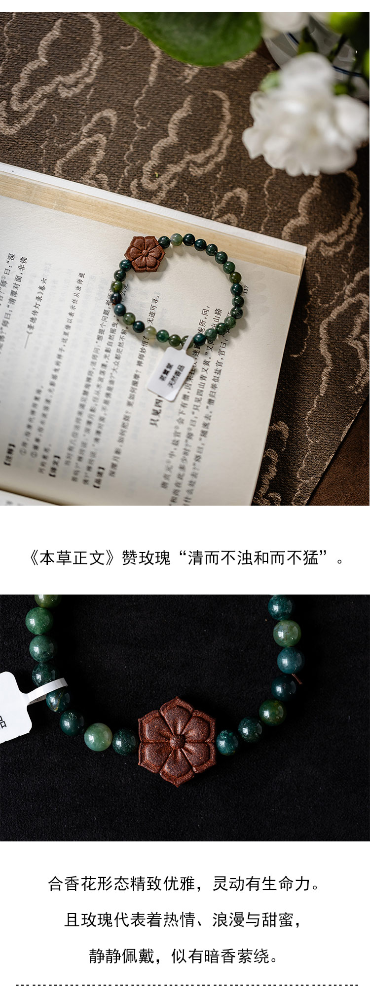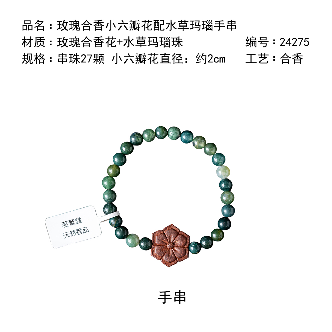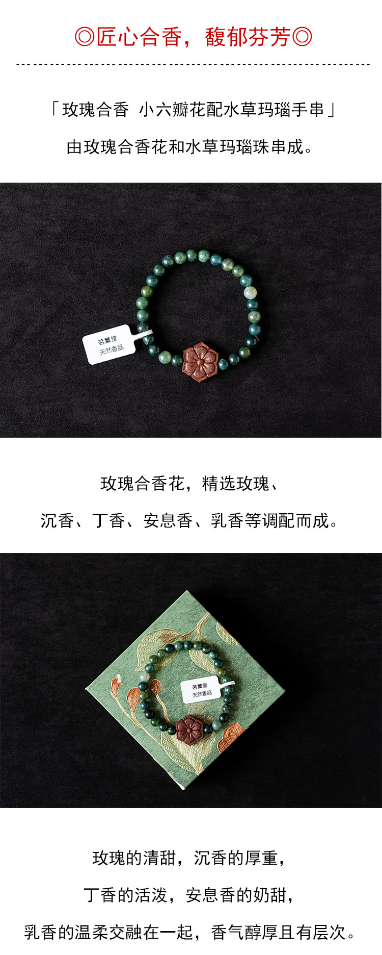 茶香记玫瑰合香小六瓣花配水草玛瑙手串木质文玩女士手链饰品