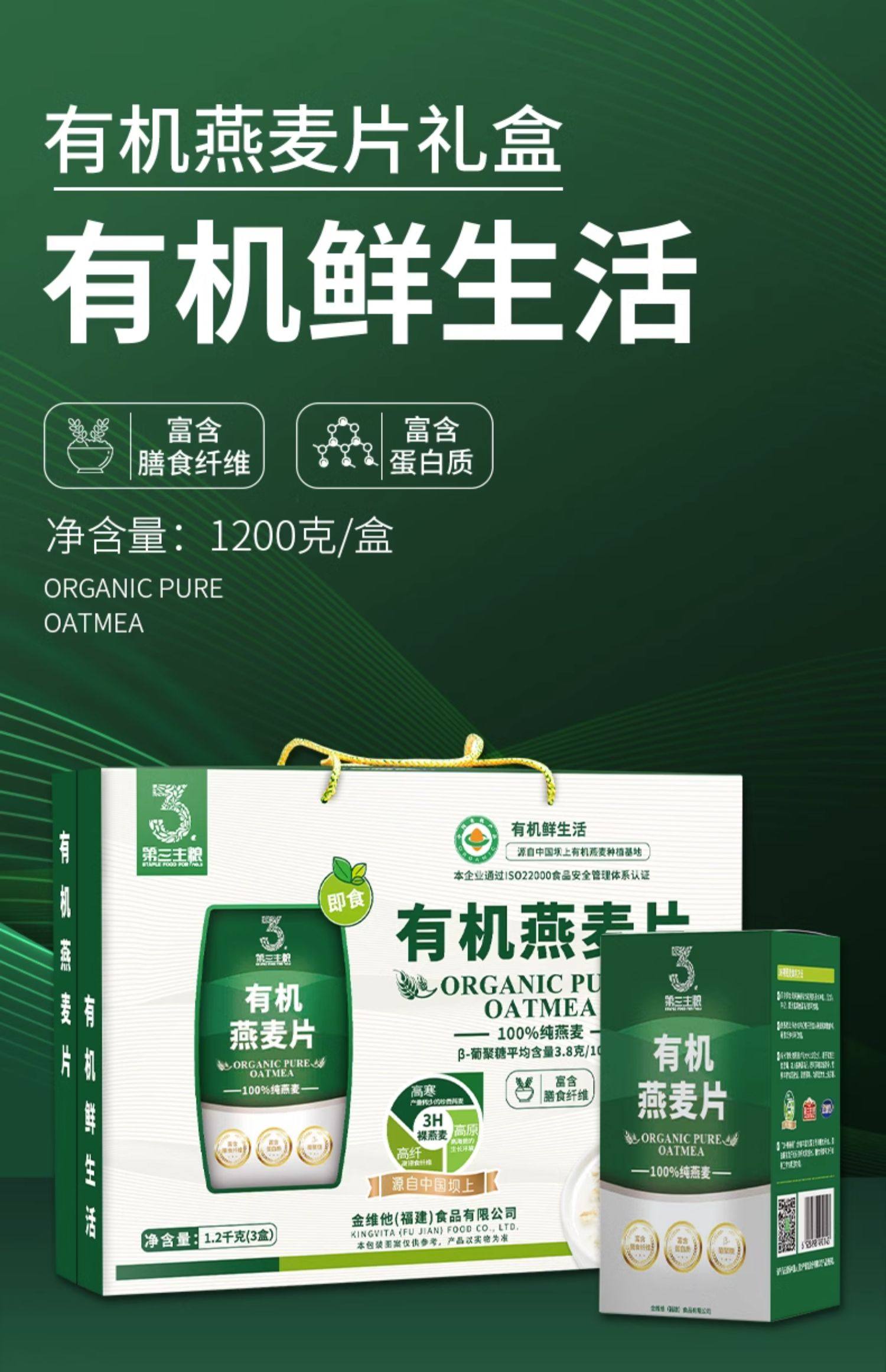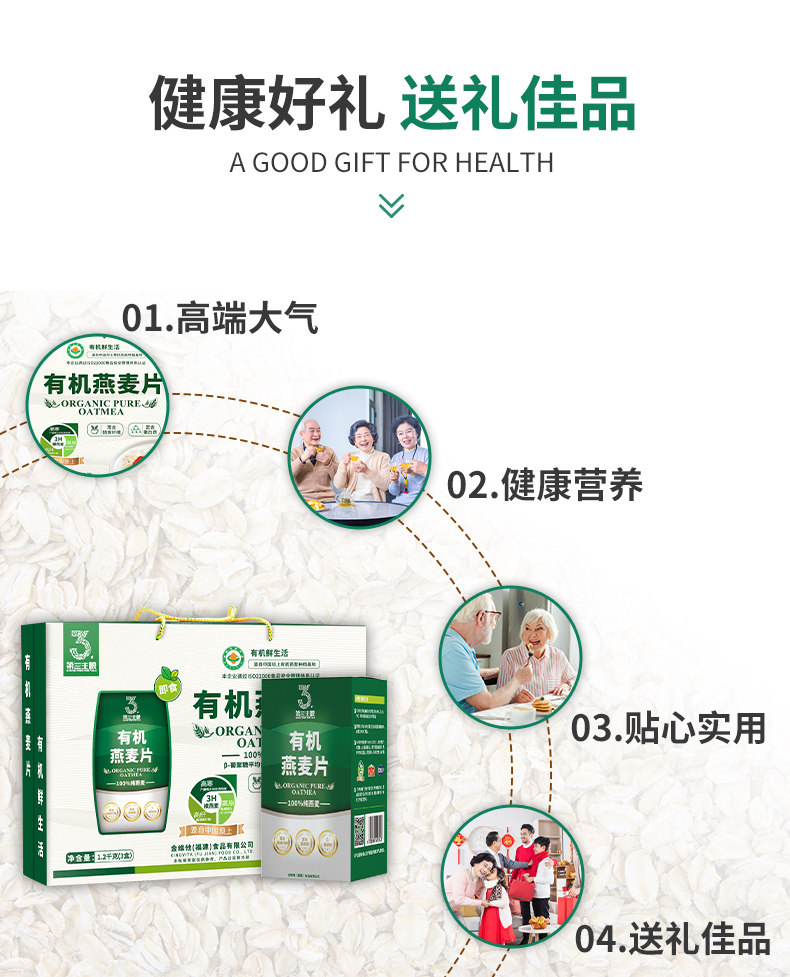 1.2kg第三主粮有机燕麦礼盒 年货礼盒 营养早餐 免煮冲饮健康礼品