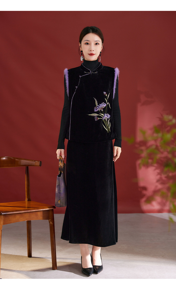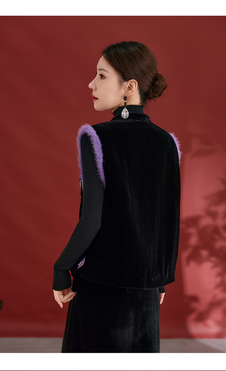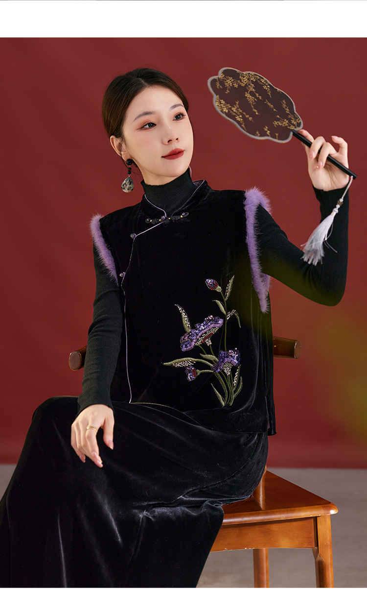 SM 1921真丝丝绒国风新中式贵气感刺绣新中式复古亮片马甲 商品图4