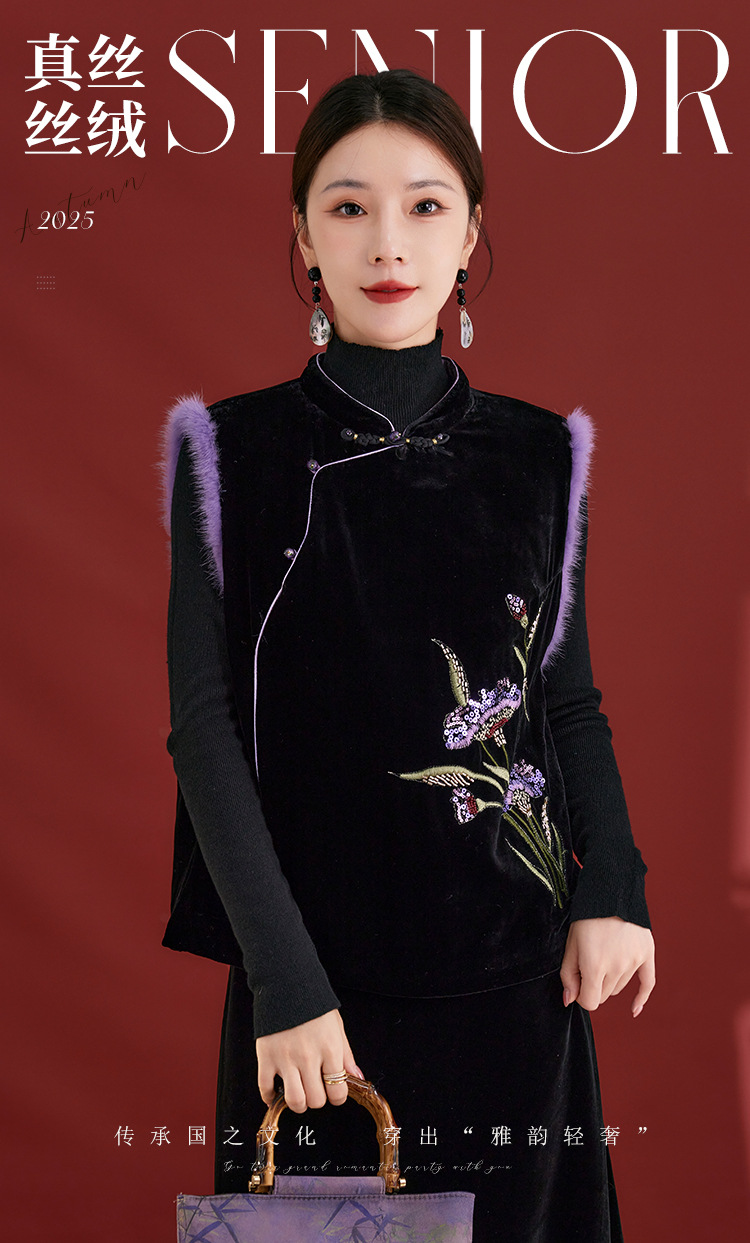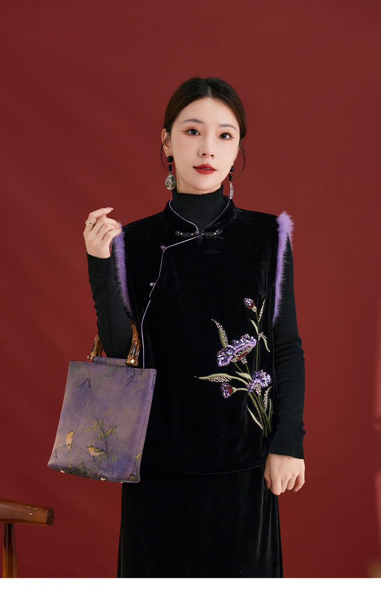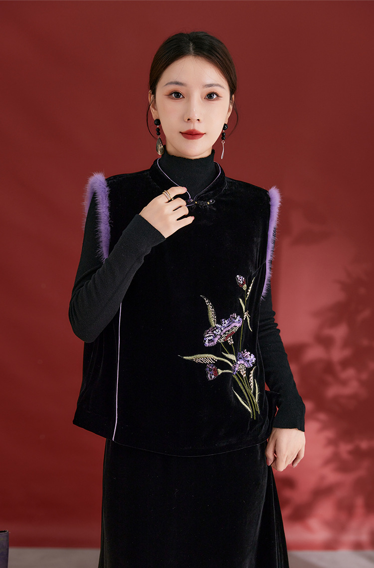 SM 1921真丝丝绒国风新中式贵气感刺绣新中式复古亮片马甲