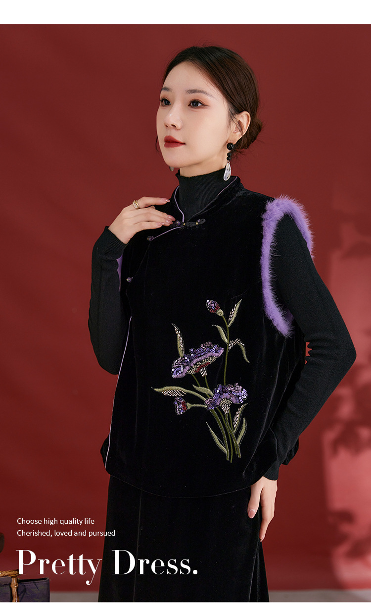 SM 1921真丝丝绒国风新中式贵气感刺绣新中式复古亮片马甲 商品图0