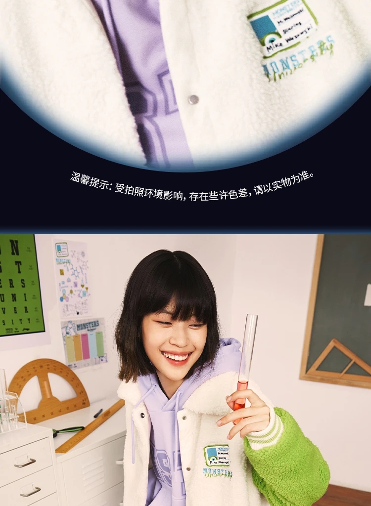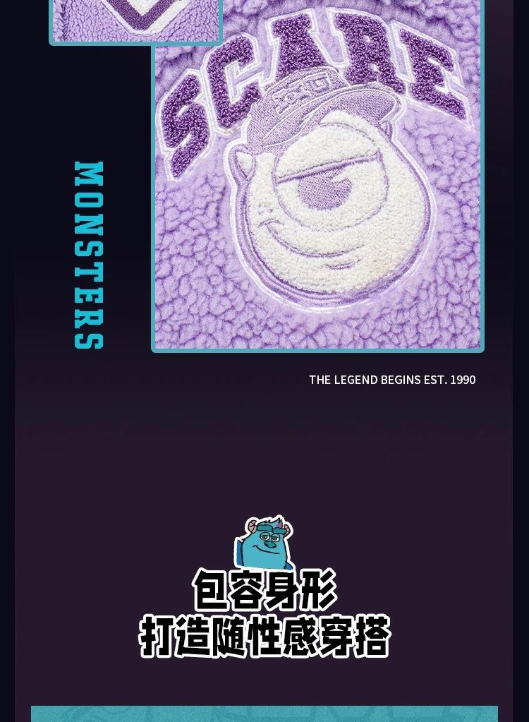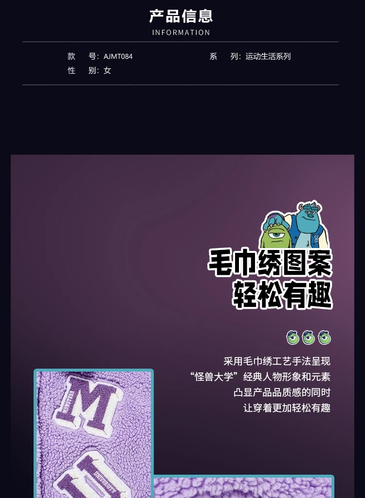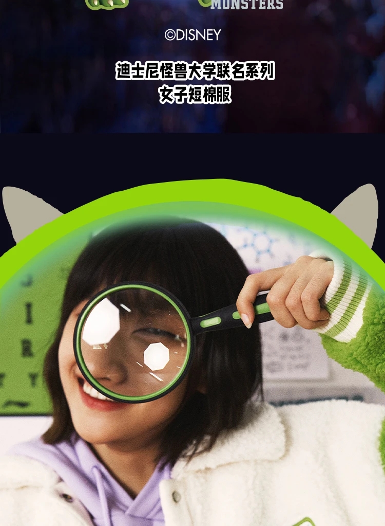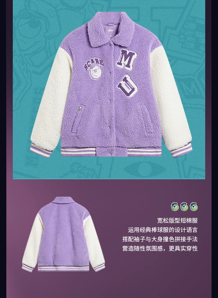 【S/M/L/XL断码】李宁女子短棉服2023冬款X迪士尼怪兽大学系列宽松外套AJMT084【库存有限,如无货将做退款,介意慎拍!】