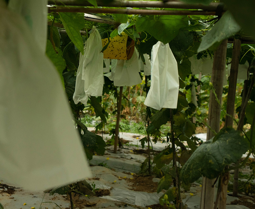 绿手指的蔬菜,除了顺应自然种植减少病虫害以外,还使用轮作、间作,防止病虫大规模爆发。使用物理防治方式,如覆盖防虫网、悬挂黄板、套袋等。配合使用生物、矿物中提取的天然制剂,去防治病虫。