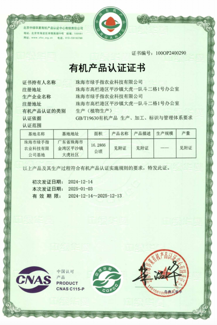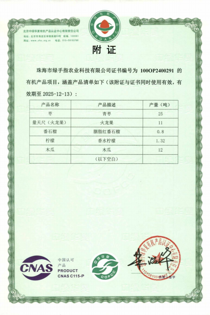 青枣2025年有机认证证书