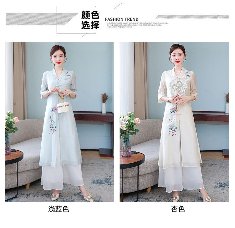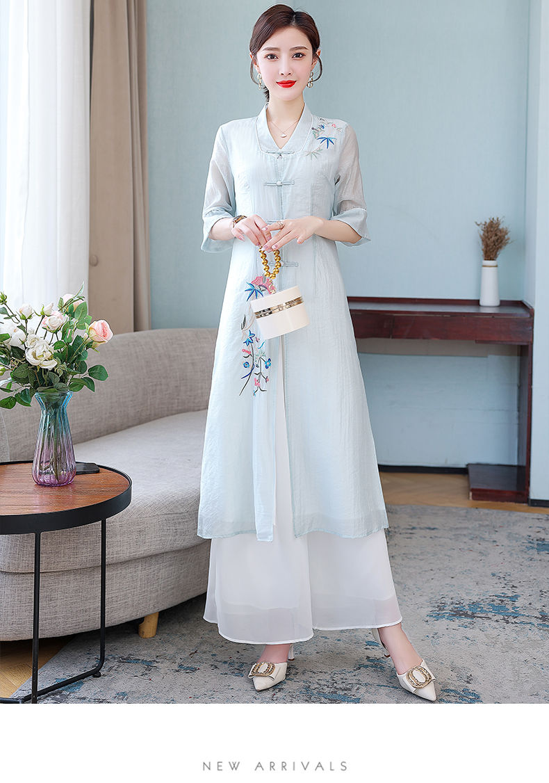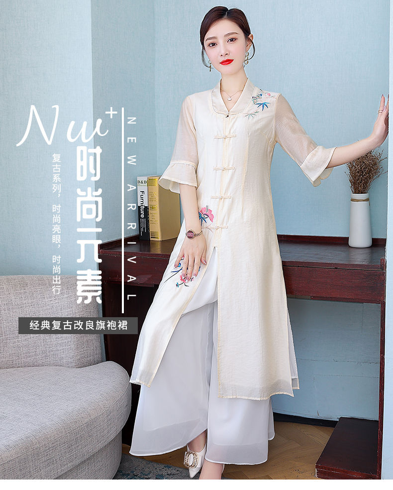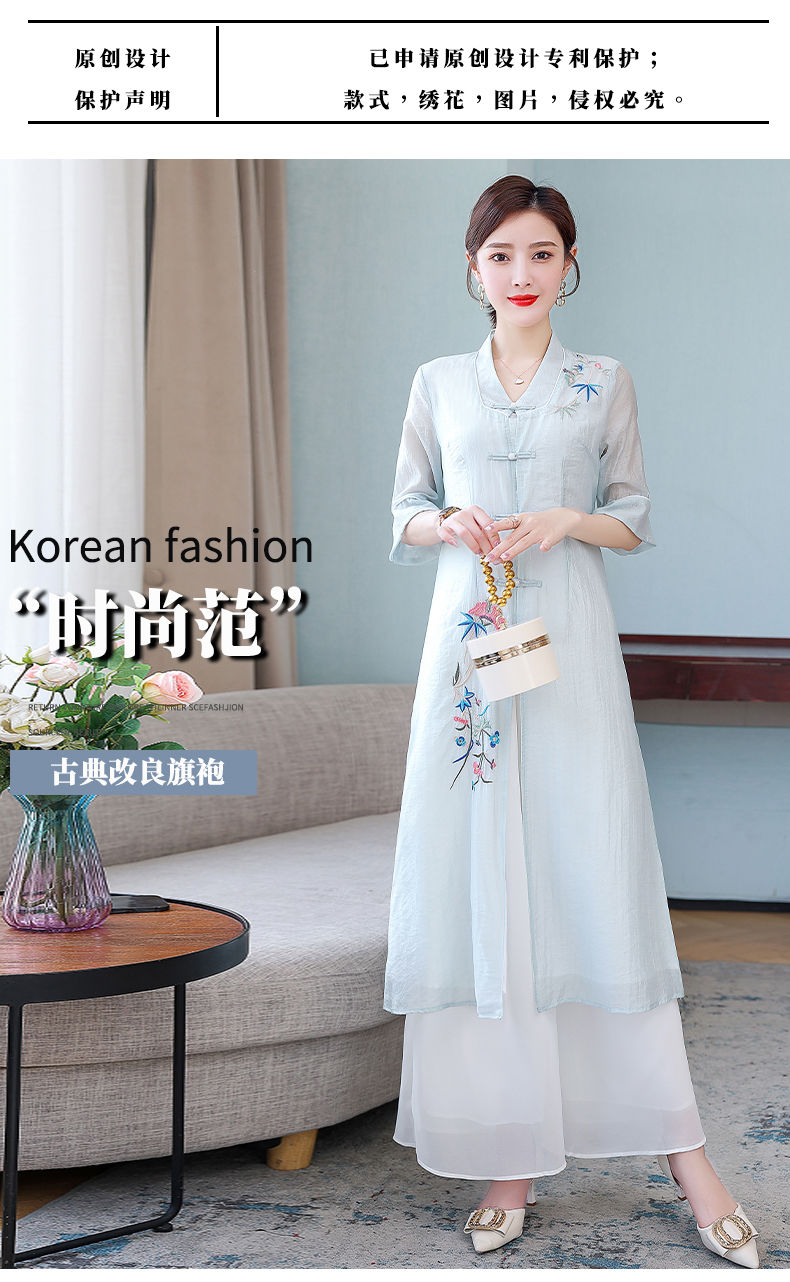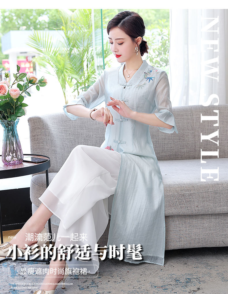 XH21C0828 2022夏季新品中国风复古文艺刺绣连衣裙复古盘扣气质连衣长裙薄款