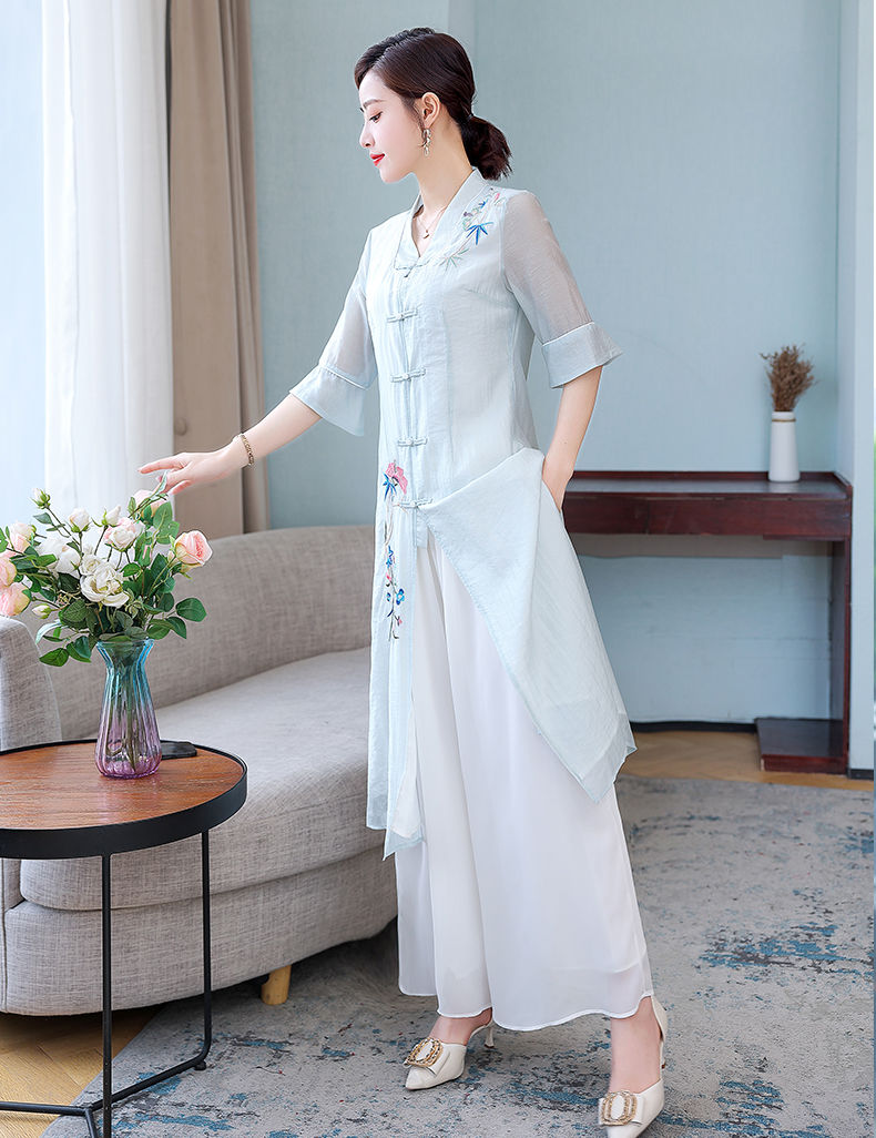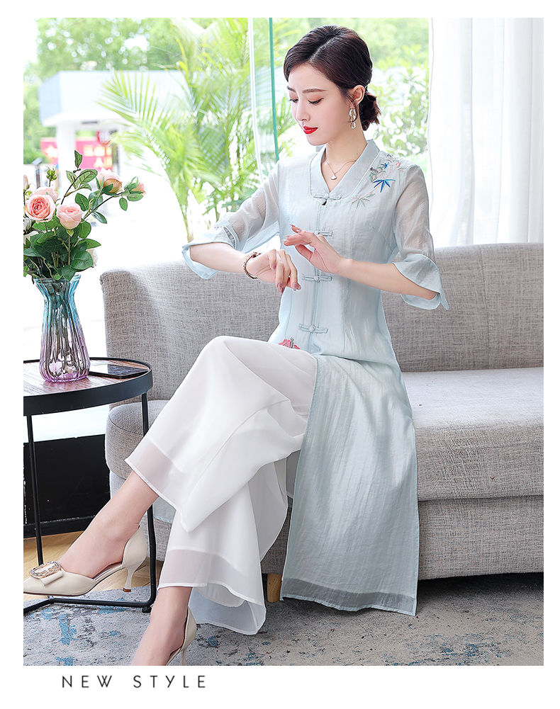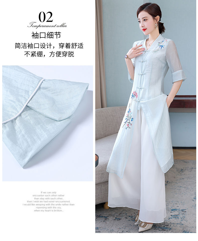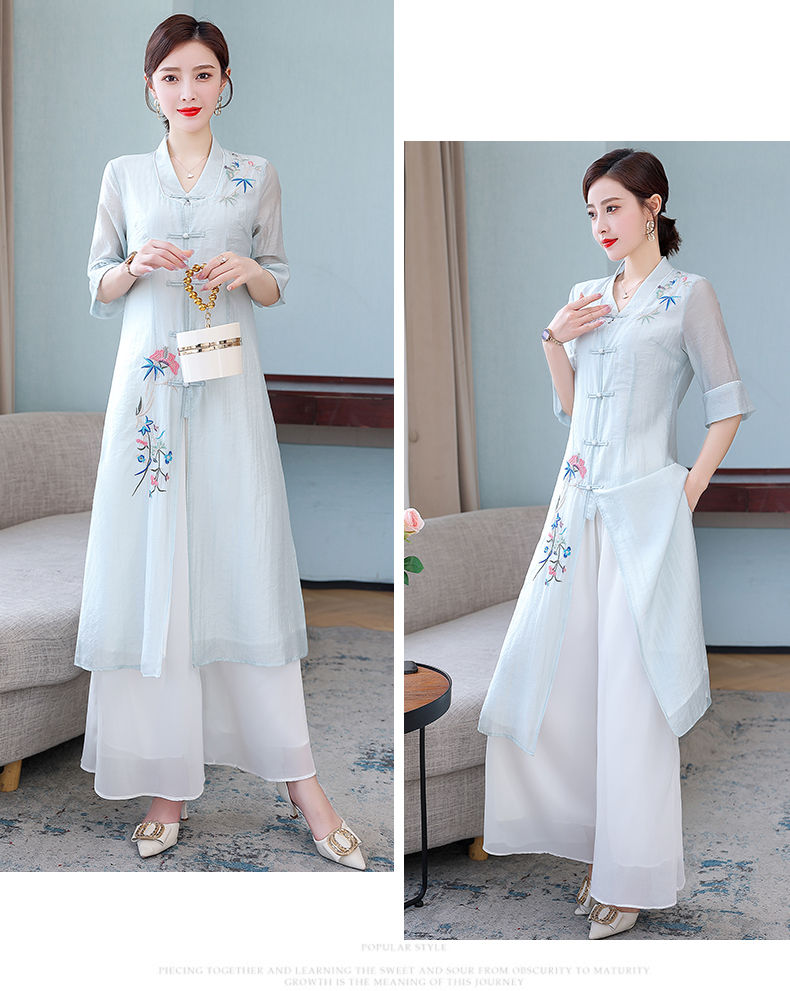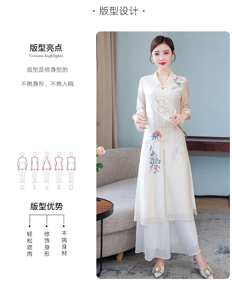 XH21C0828 2022夏季新品中国风复古文艺刺绣连衣裙复古盘扣气质连衣长裙薄款
