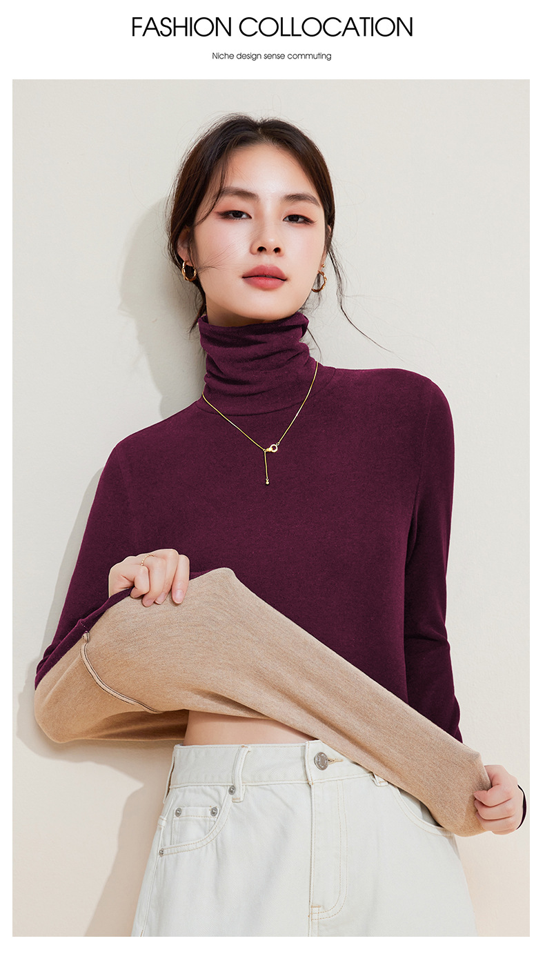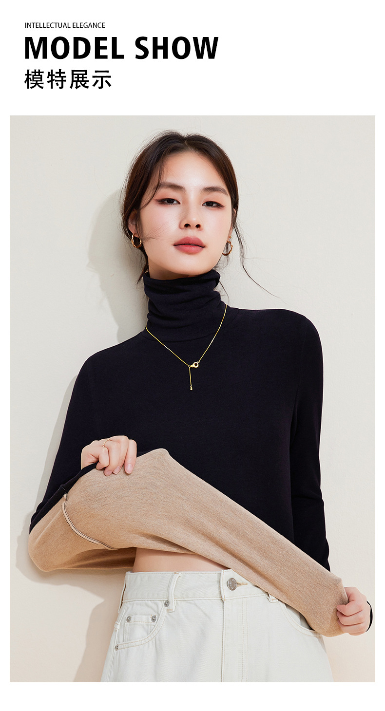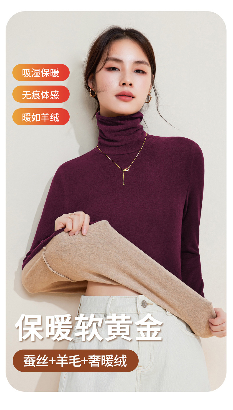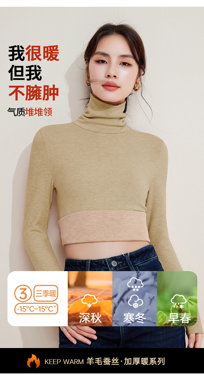 「自j」全新升级【铂金会员119/天猫159/差价40】(11334)洛诗琳蚕丝暖绒堆堆领打底衫2025秋冬加厚加绒发热保暖上衣
