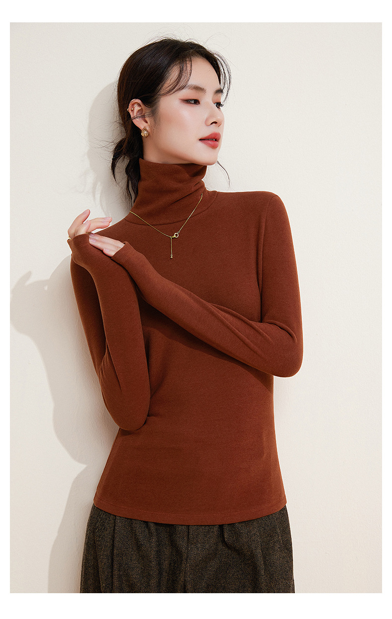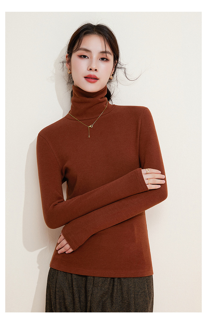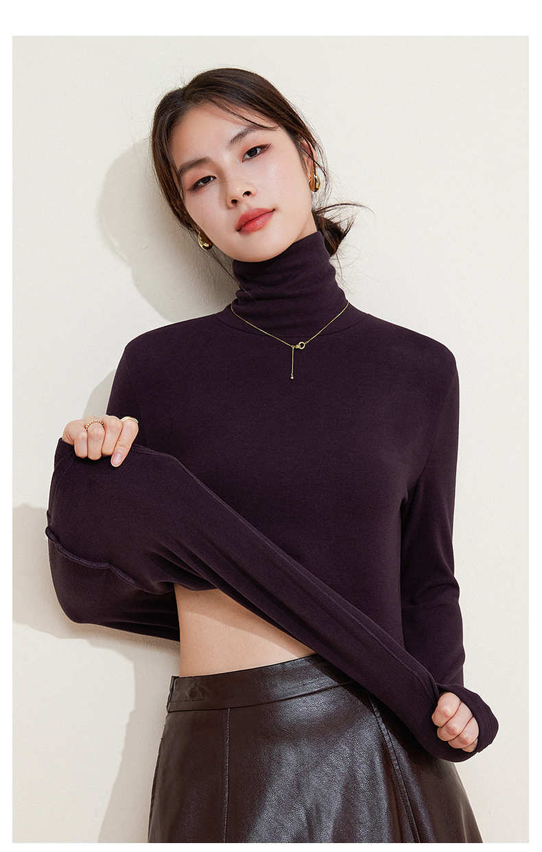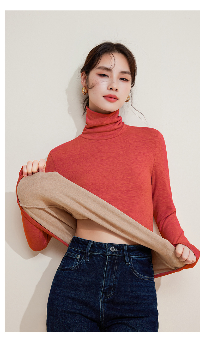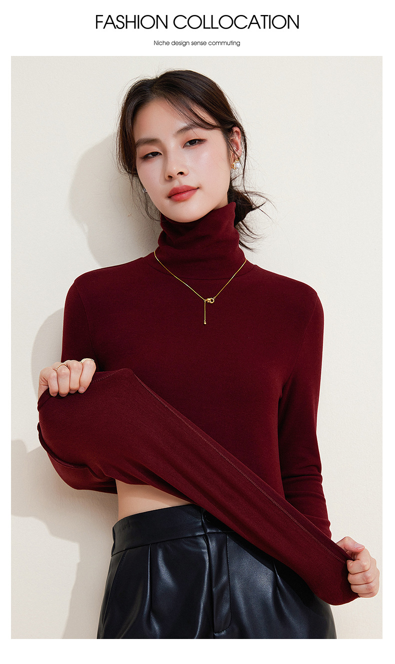「自j」全新升级【铂金会员119/天猫159/差价40】(11334)洛诗琳蚕丝暖绒堆堆领打底衫2025秋冬加厚加绒发热保暖上衣
