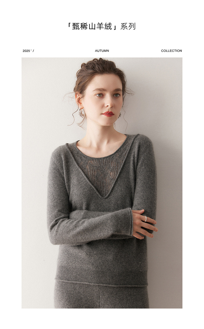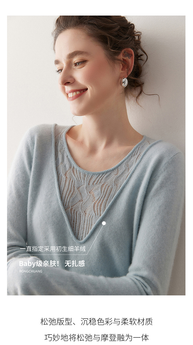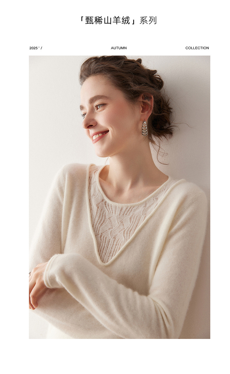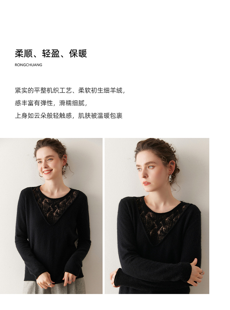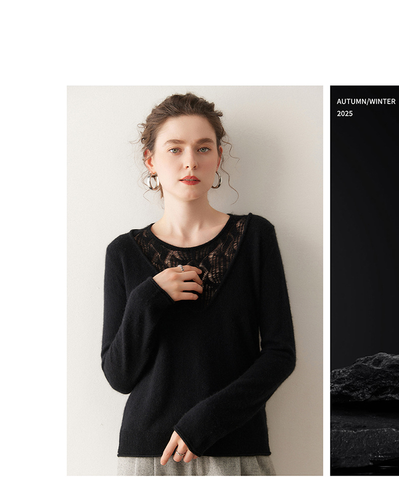 「高货rg」全新升级【铂金会员441/天猫589/差价148】(65201)洛诗琳新款镂空蕾丝拼接羊绒衫2025秋冬气质女人味针织衫