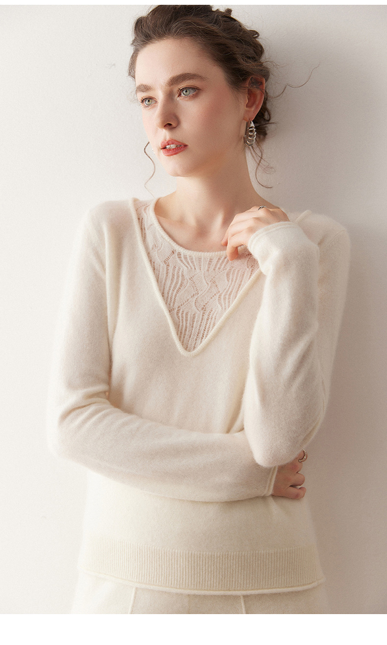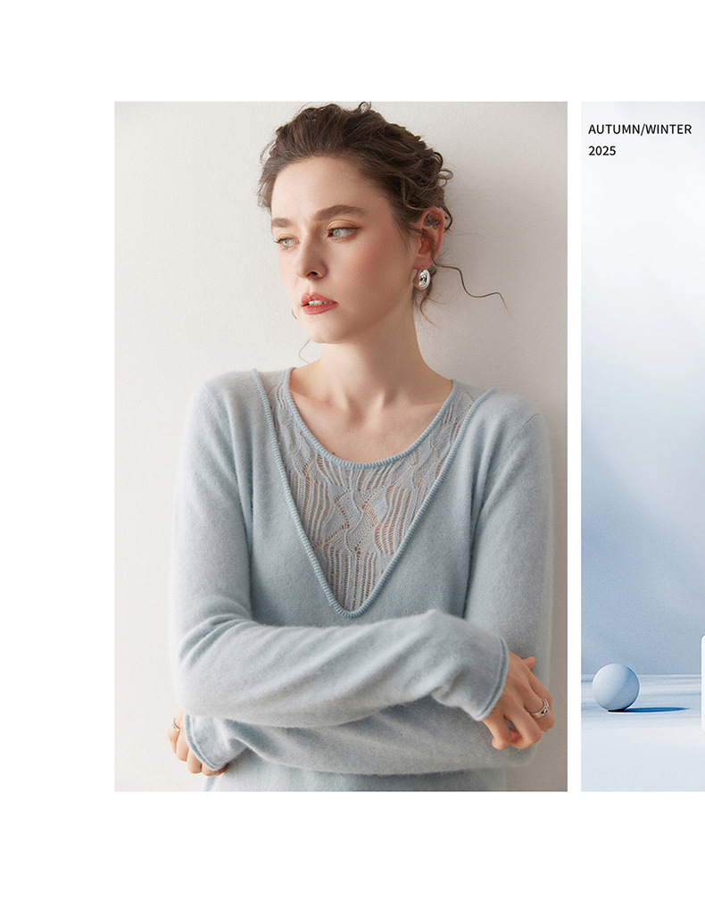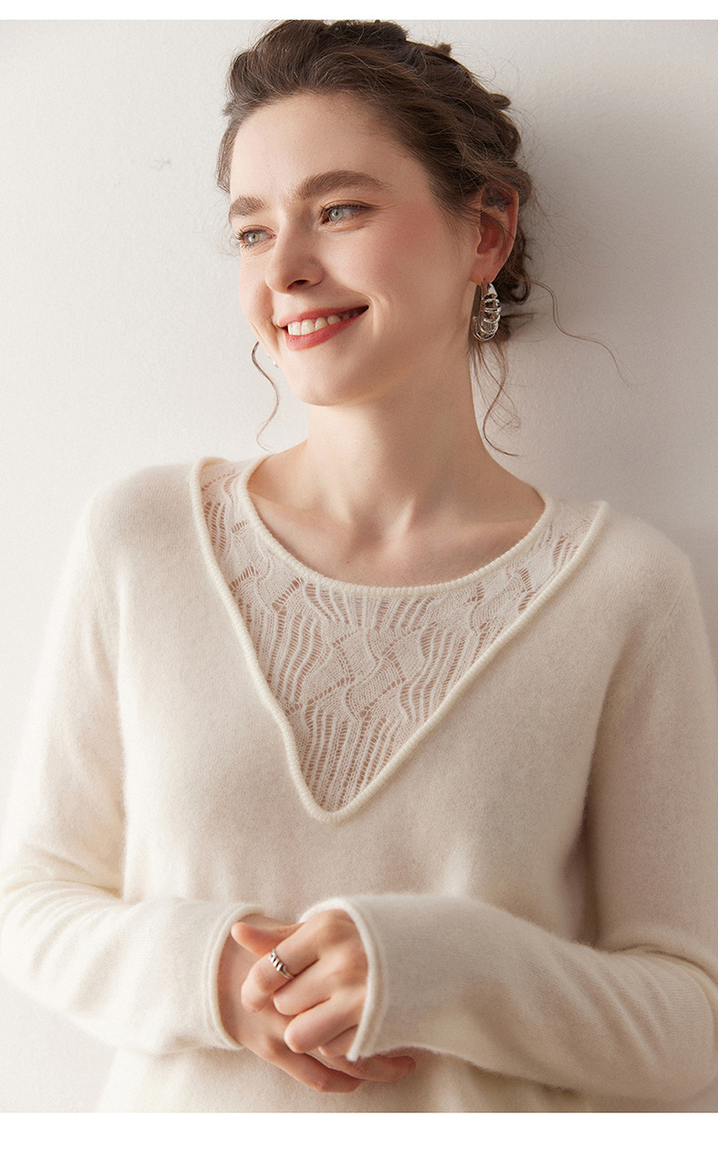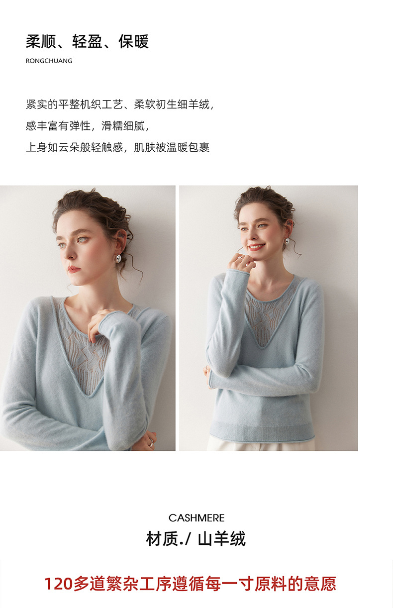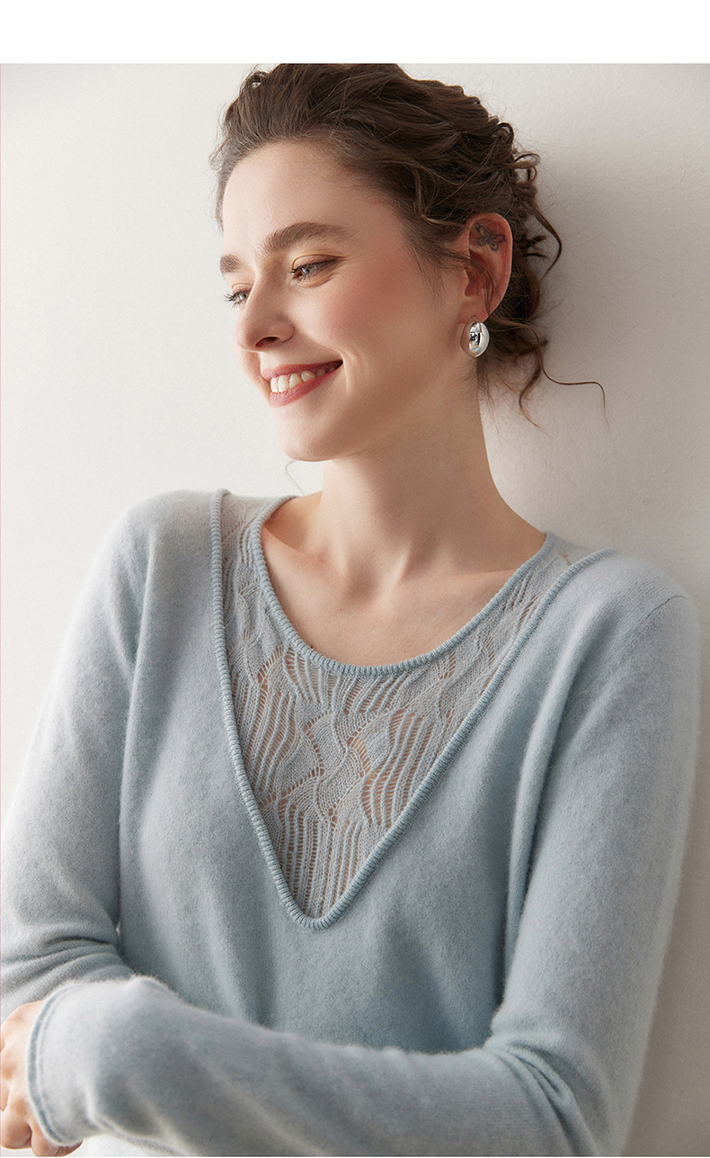「高货rg」全新升级【铂金会员441/天猫589/差价148】(65201)洛诗琳新款镂空蕾丝拼接羊绒衫2025秋冬气质女人味针织衫