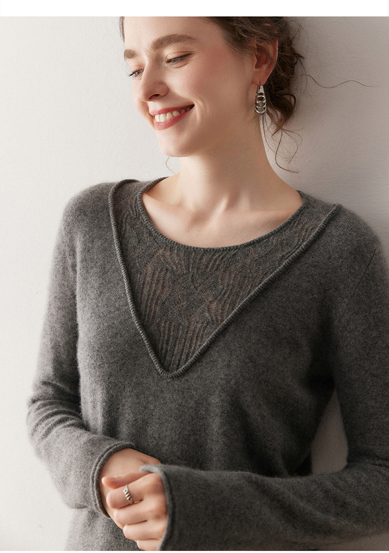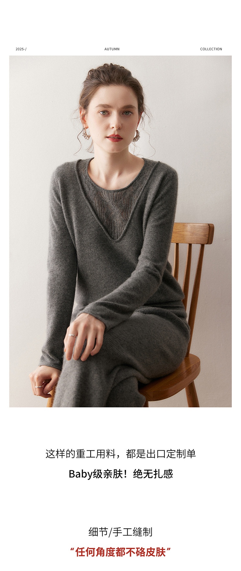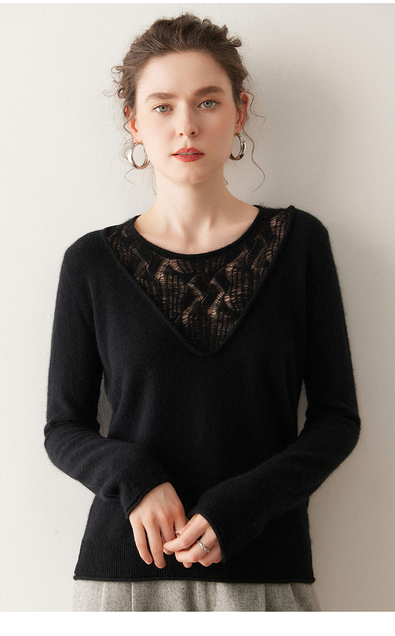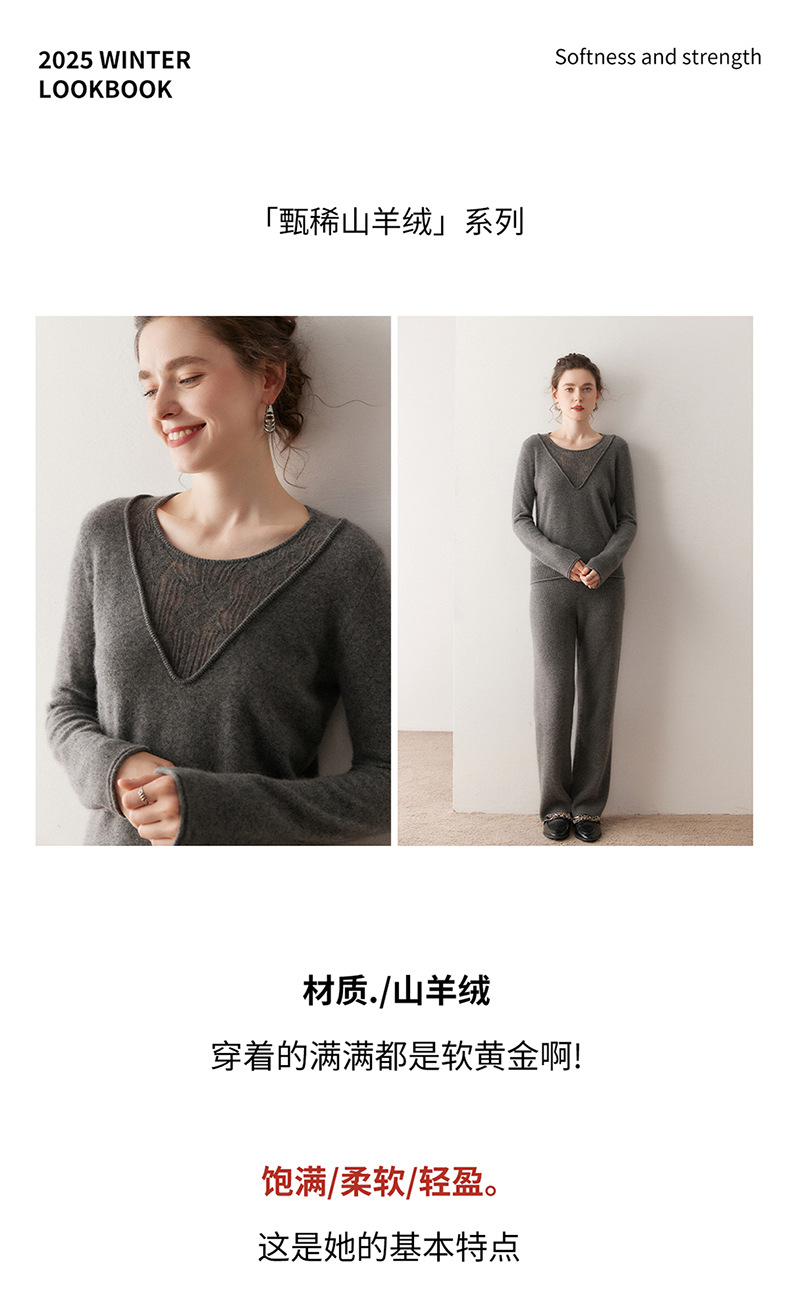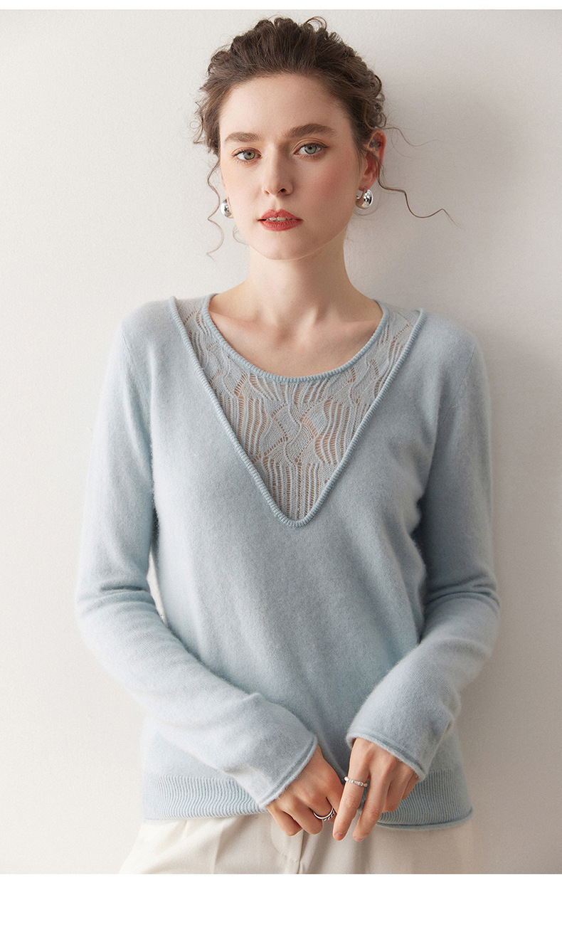 「高货rg」全新升级【铂金会员441/天猫589/差价148】(65201)洛诗琳新款镂空蕾丝拼接羊绒衫2025秋冬气质女人味针织衫