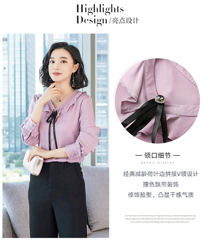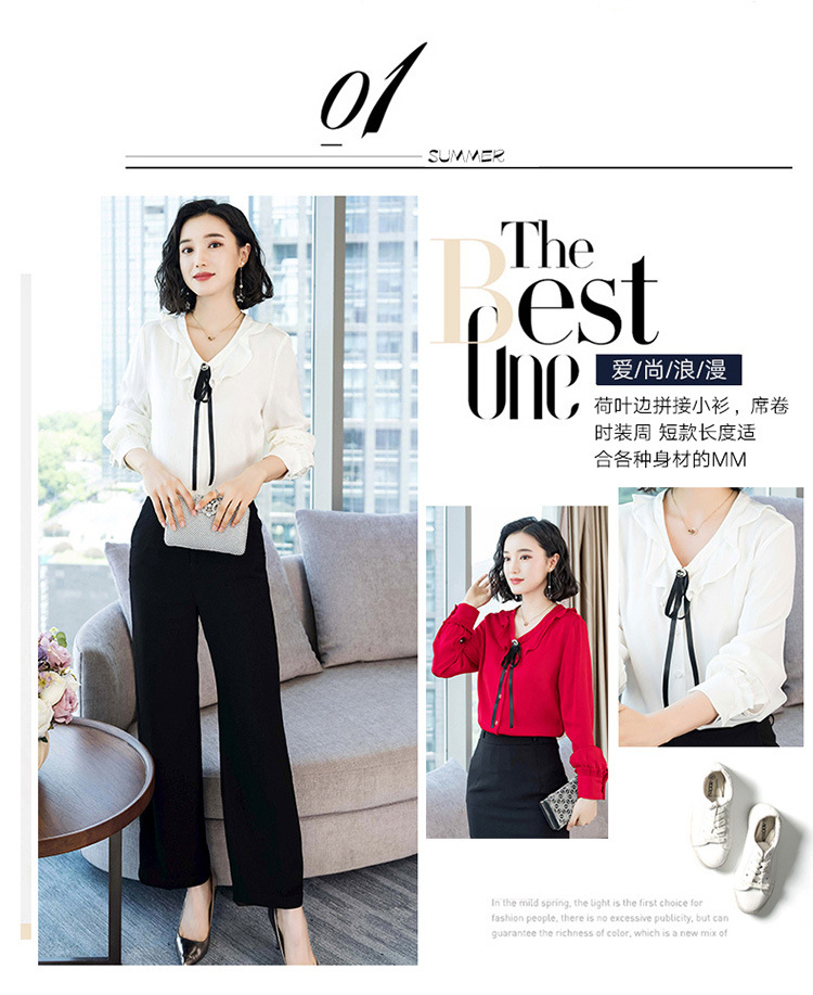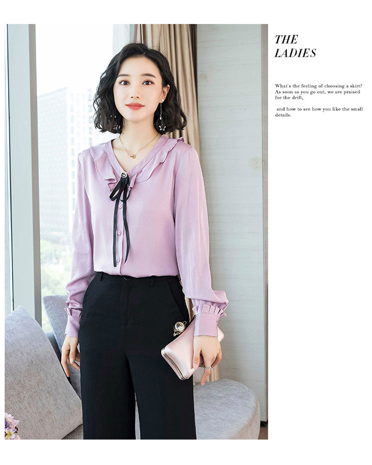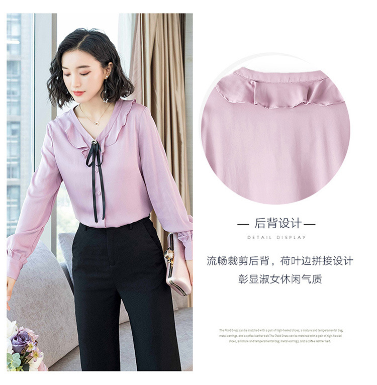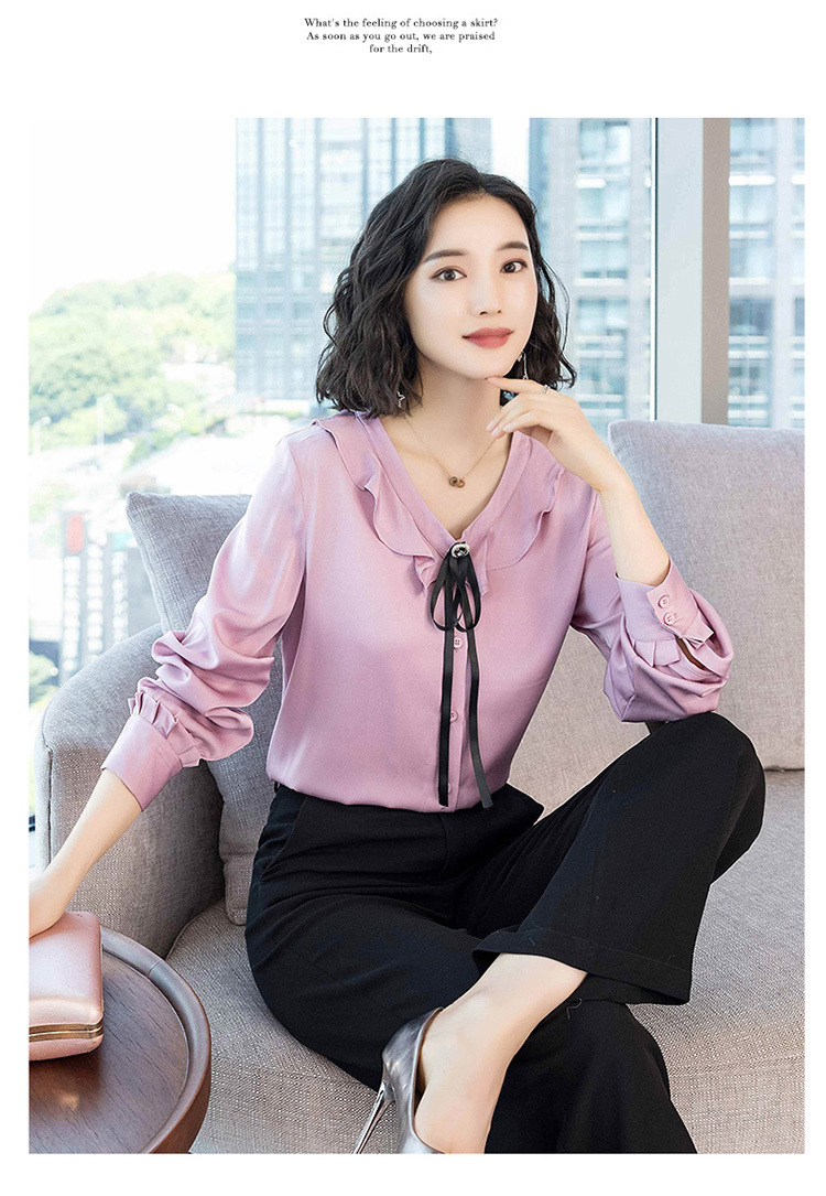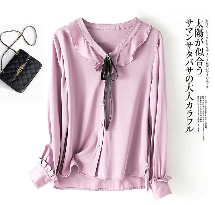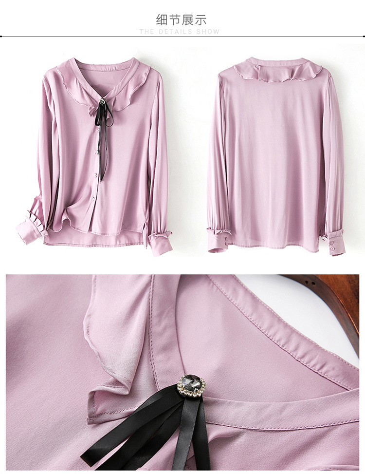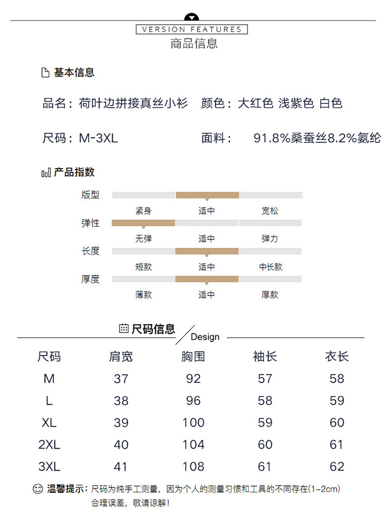 上海旗袍厂ASE-3301气质优雅荷叶边拼接真丝小衫
