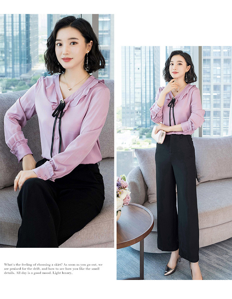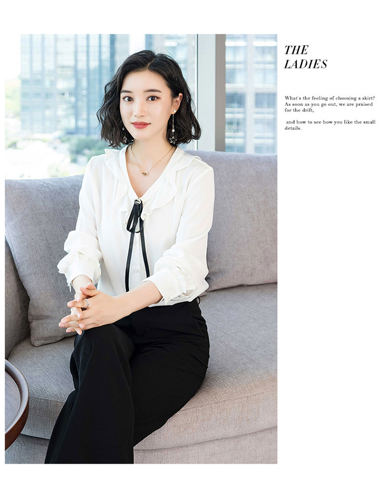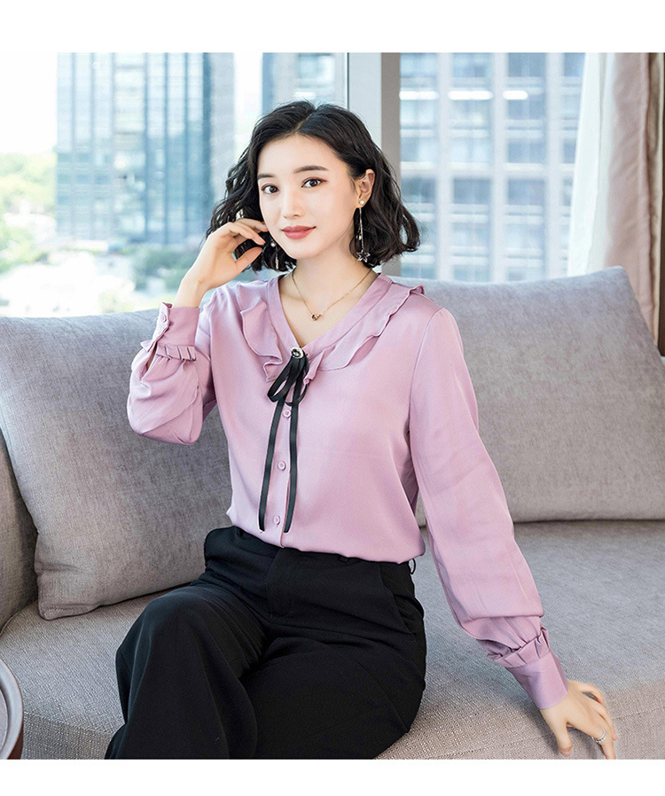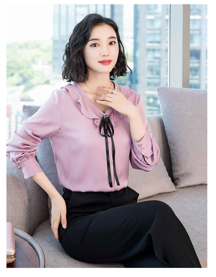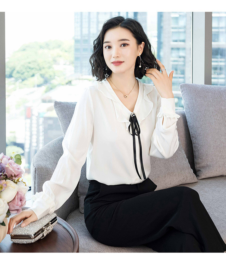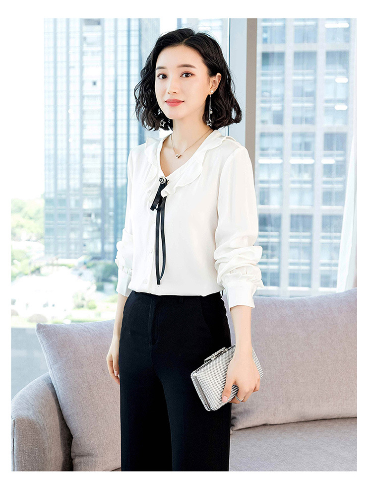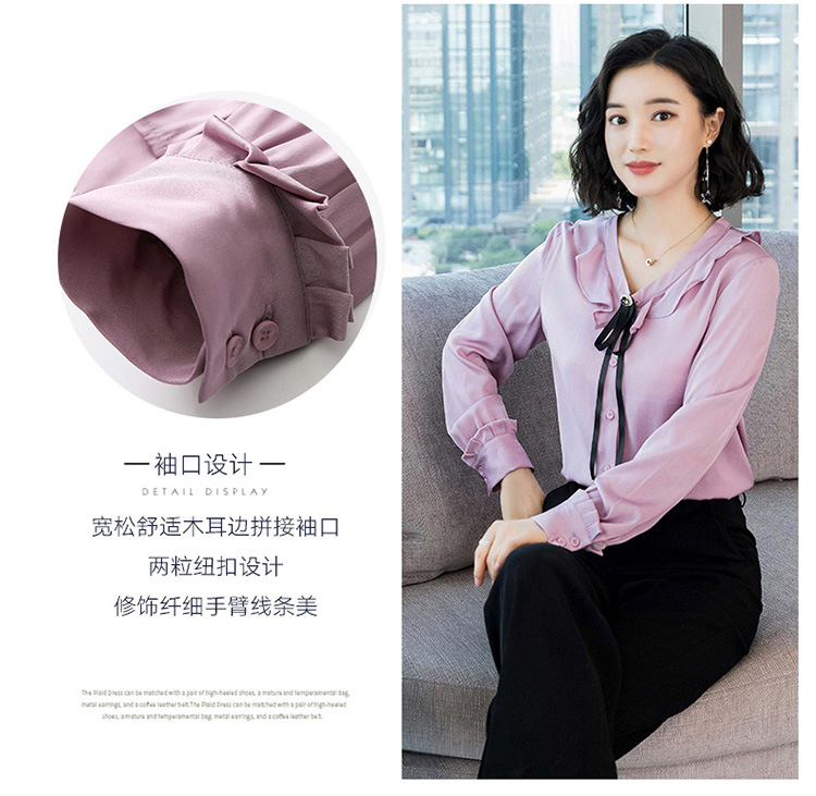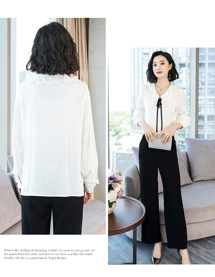 上海旗袍厂ASE-3301气质优雅荷叶边拼接真丝小衫