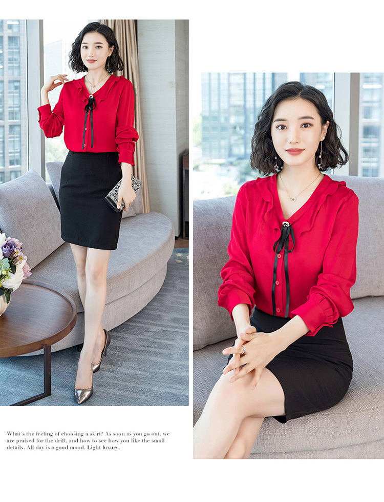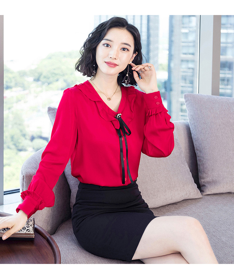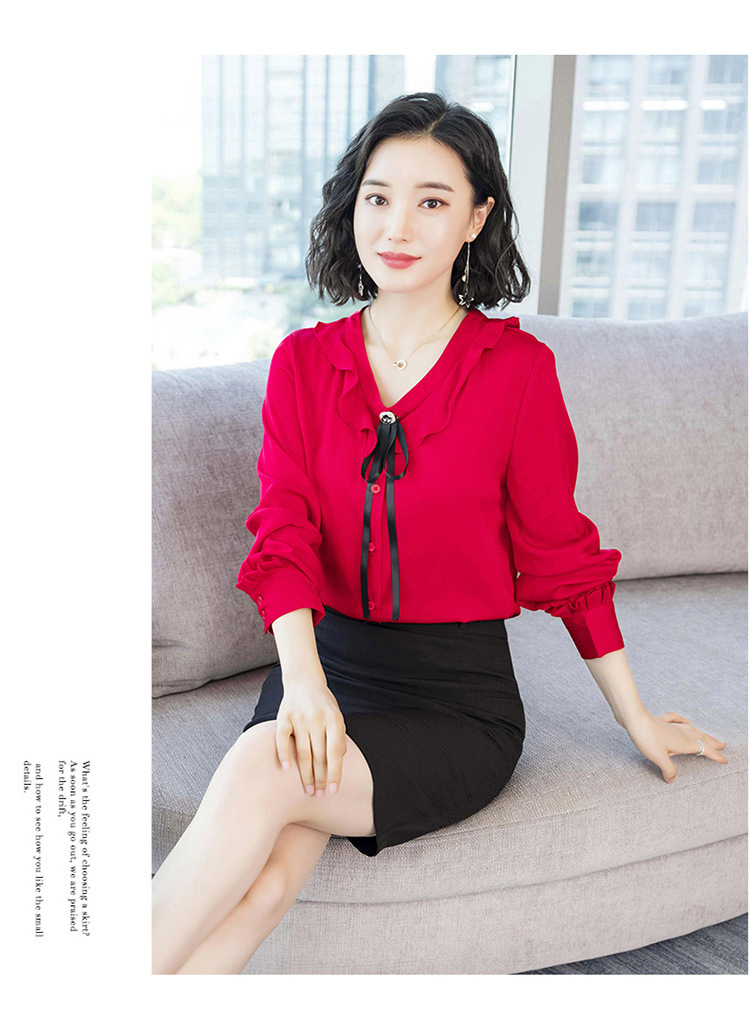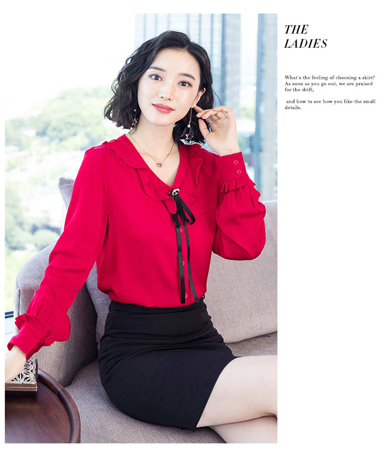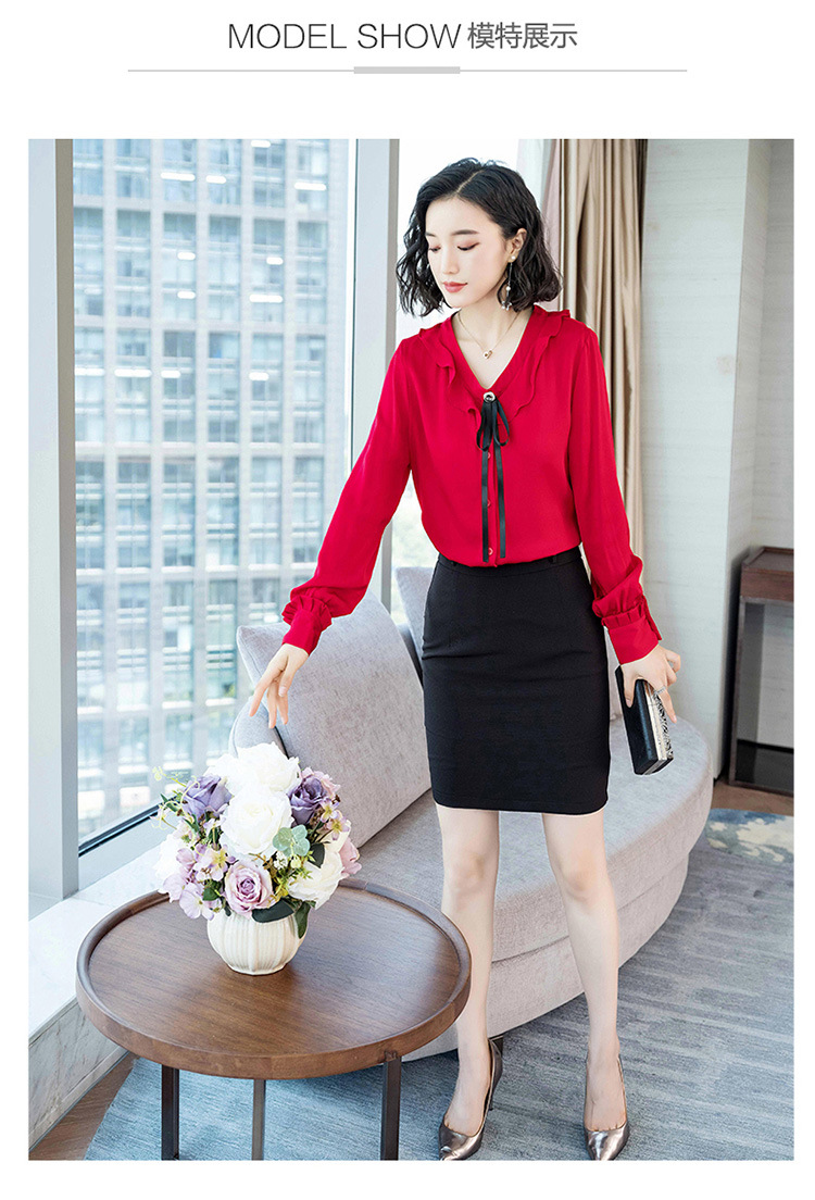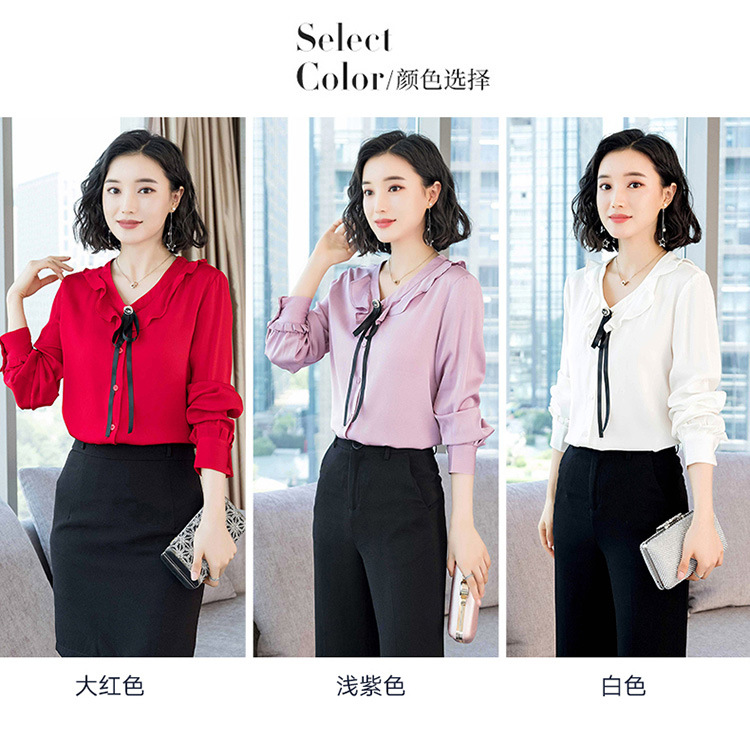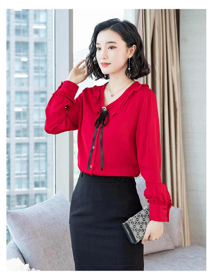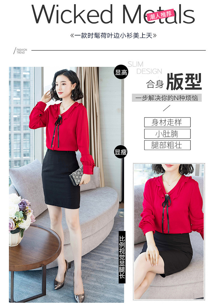 上海旗袍厂ASE-3301气质优雅荷叶边拼接真丝小衫