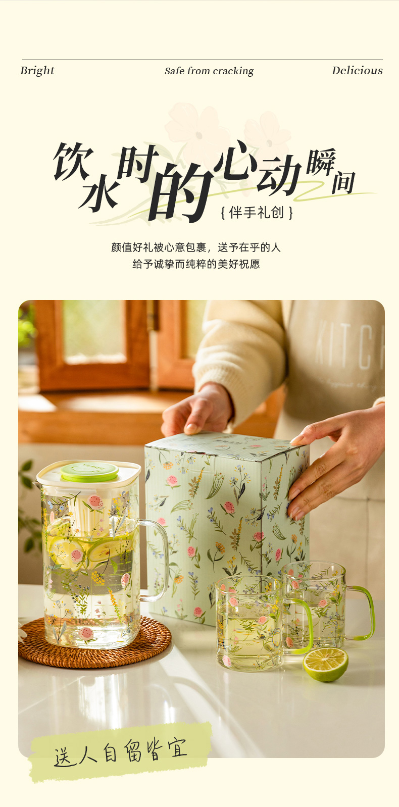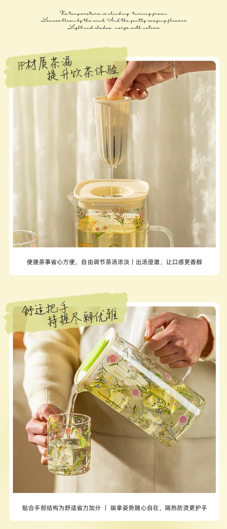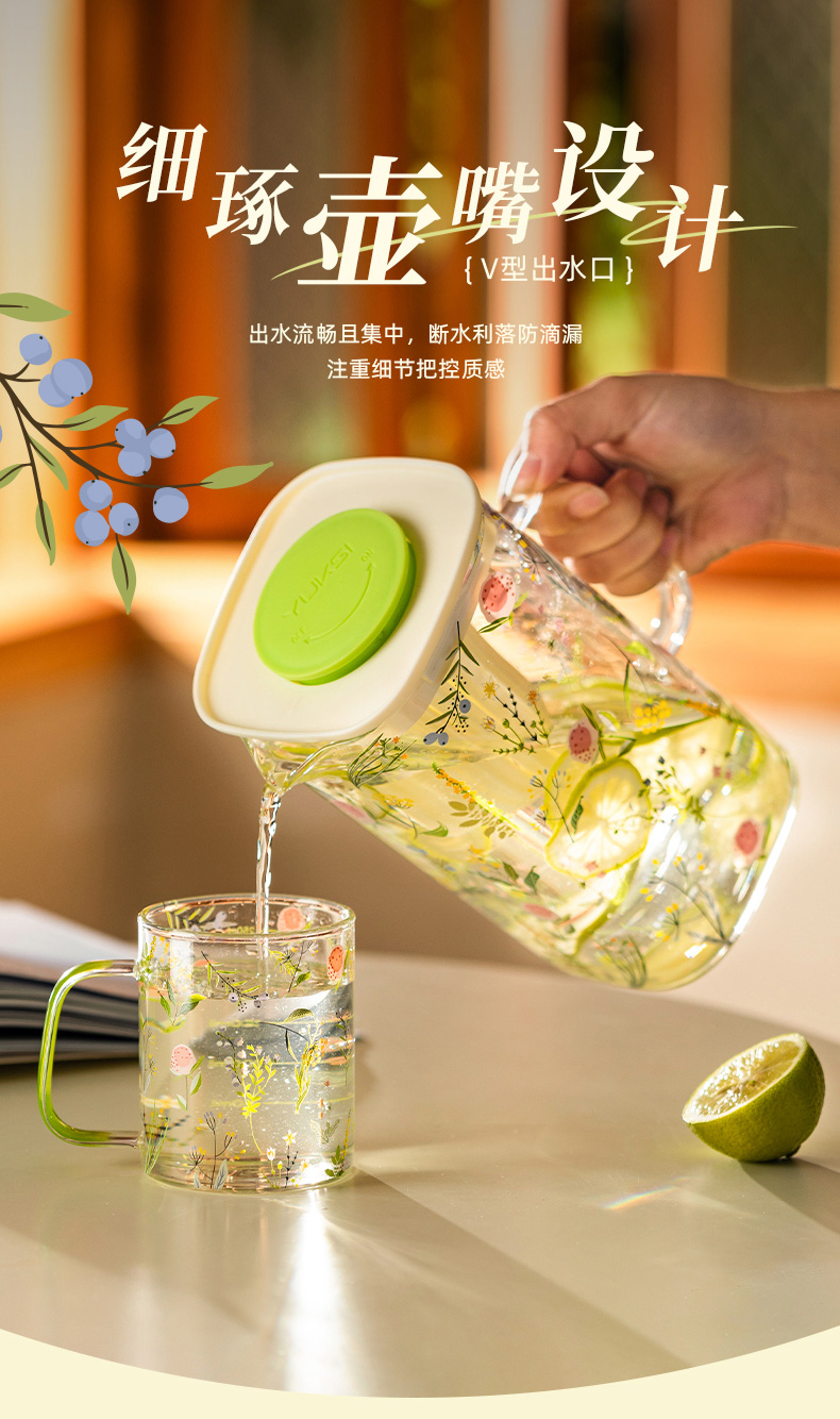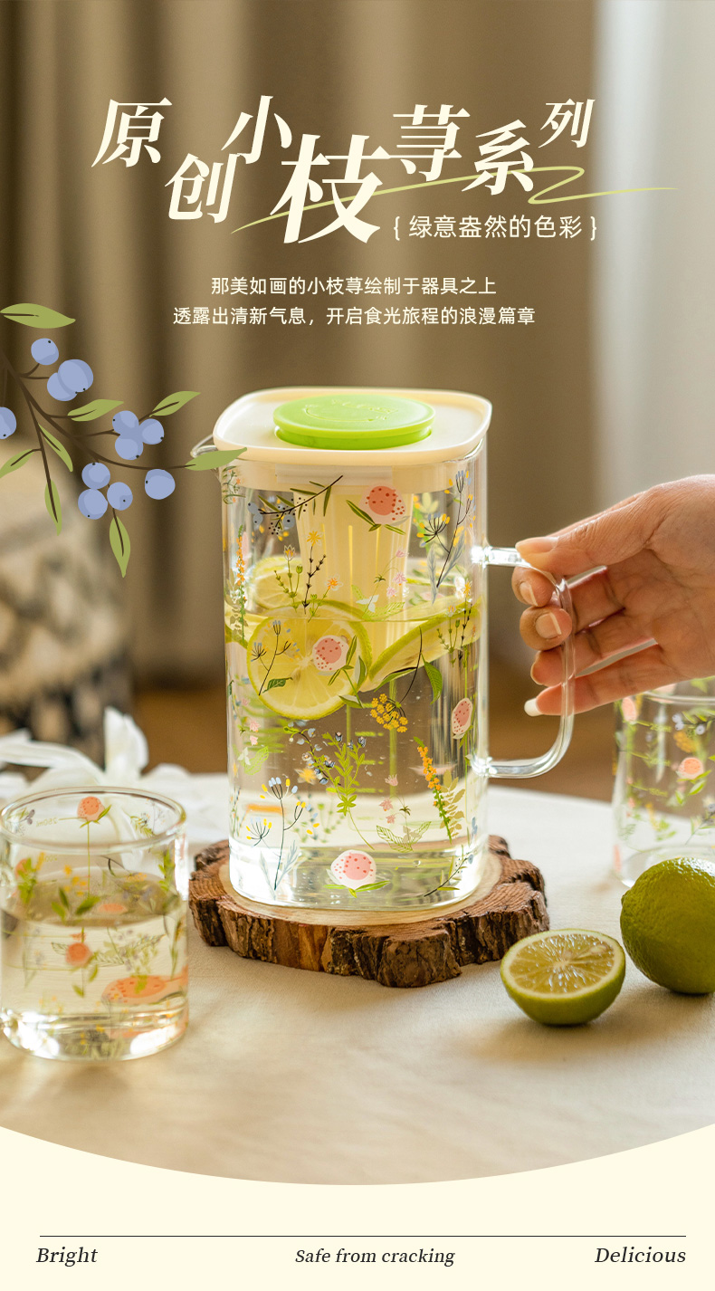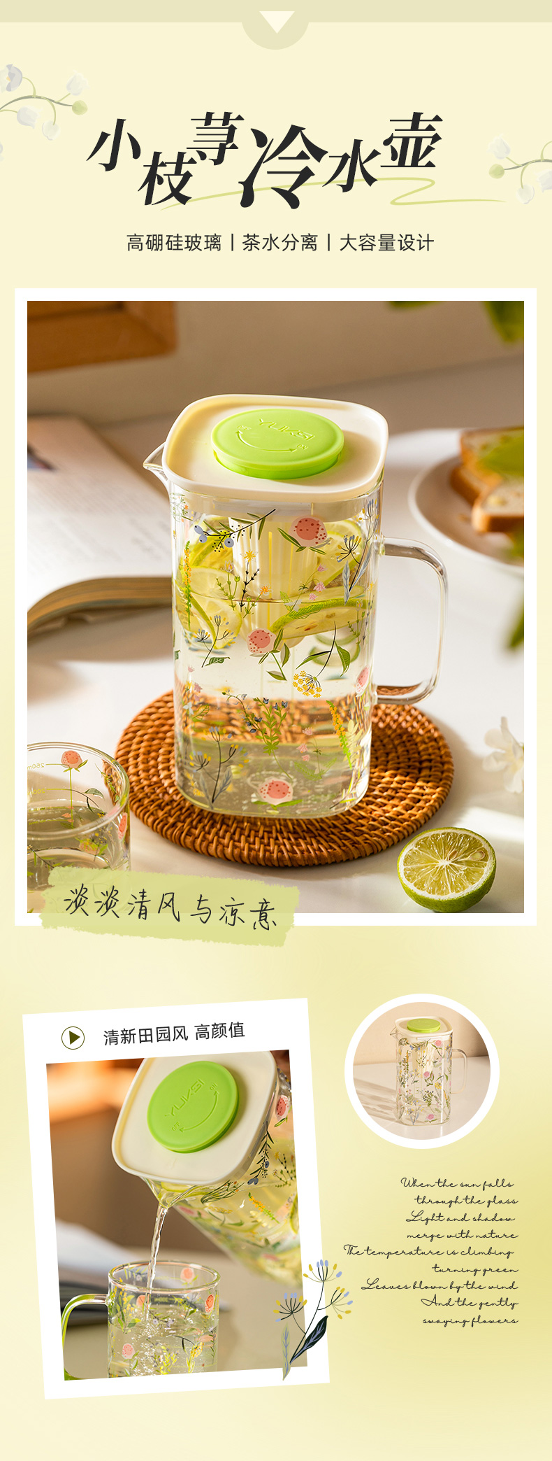 摩登主妇小枝荨玻璃冷水壶耐高温凉水壶水杯大容量茶水分离冷泡壶