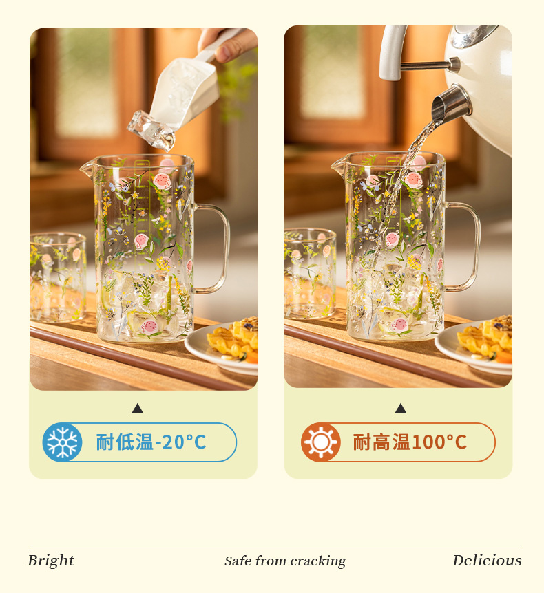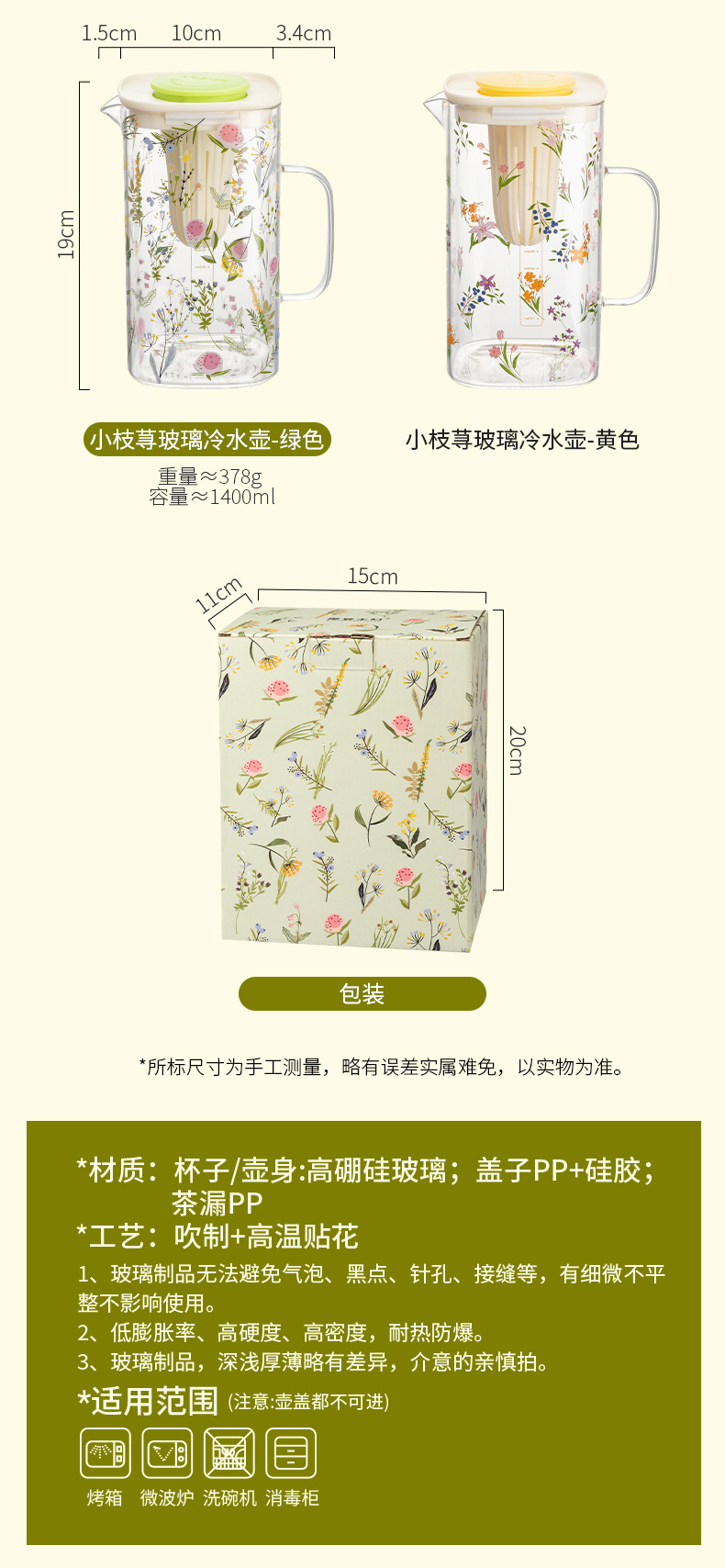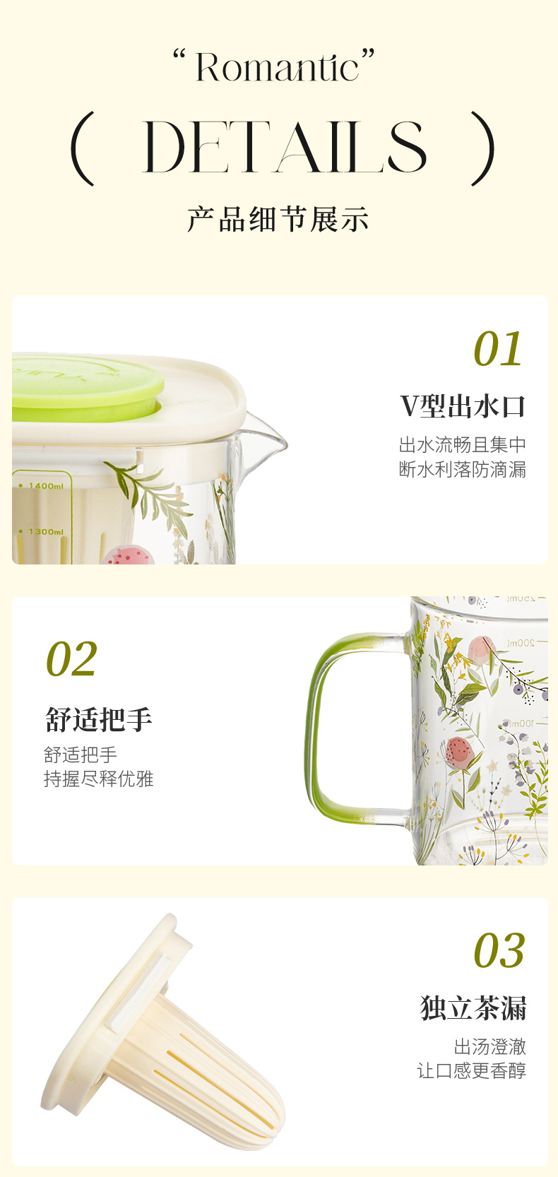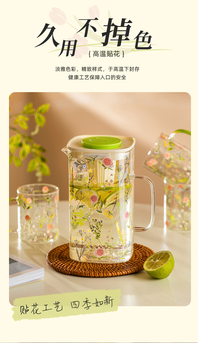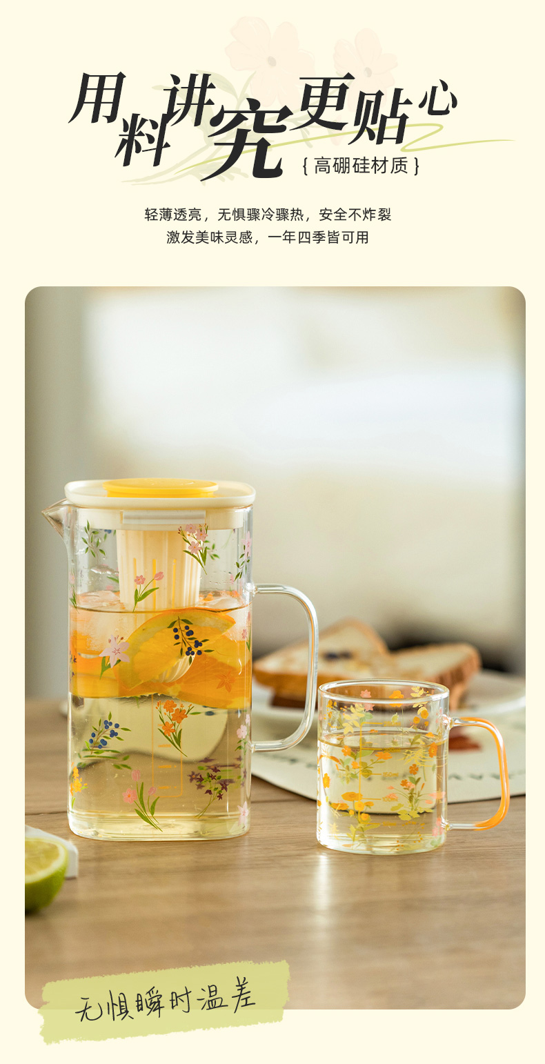 摩登主妇小枝荨玻璃冷水壶耐高温凉水壶水杯大容量茶水分离冷泡壶