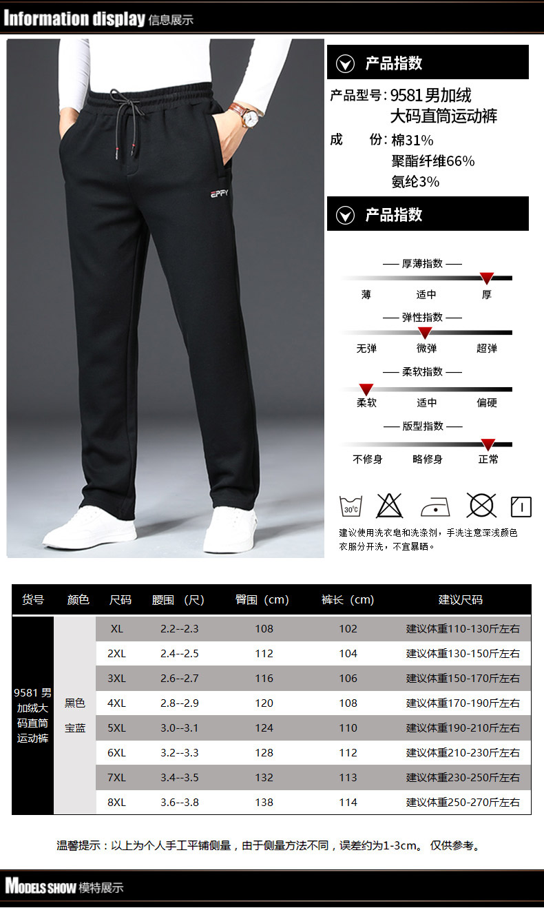 【加绒】【新款DZP】大依优型大码男装加绒直脚直口运动裤运动休闲长裤加肥加大弹力舒适