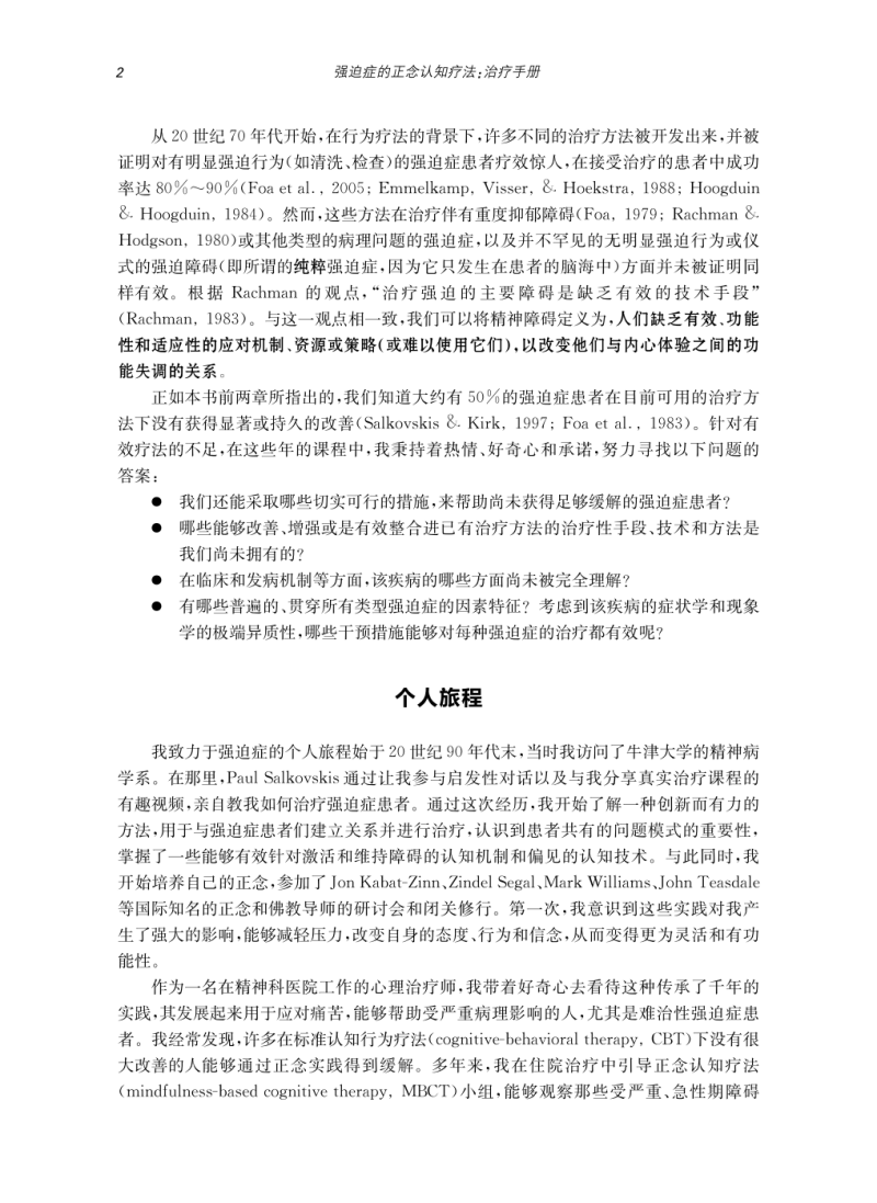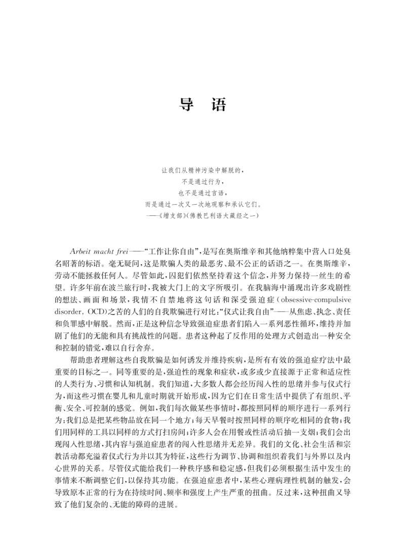 本书博古通今、旁征博引,名言警句发人深省,课程中案例丰富并配有音频,启迪人心。本书主译为上海市精神卫生中心康复科主任——范青博士,译者团队均为强迫症治疗领域的资深从业人士。本书可供心理健康领域从业人员学习及应用,同时也是饱受强迫症困扰的患者和其亲友的自助手册。