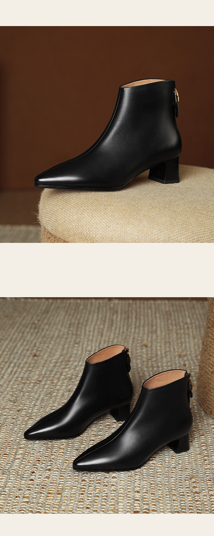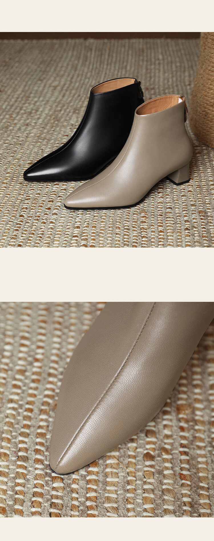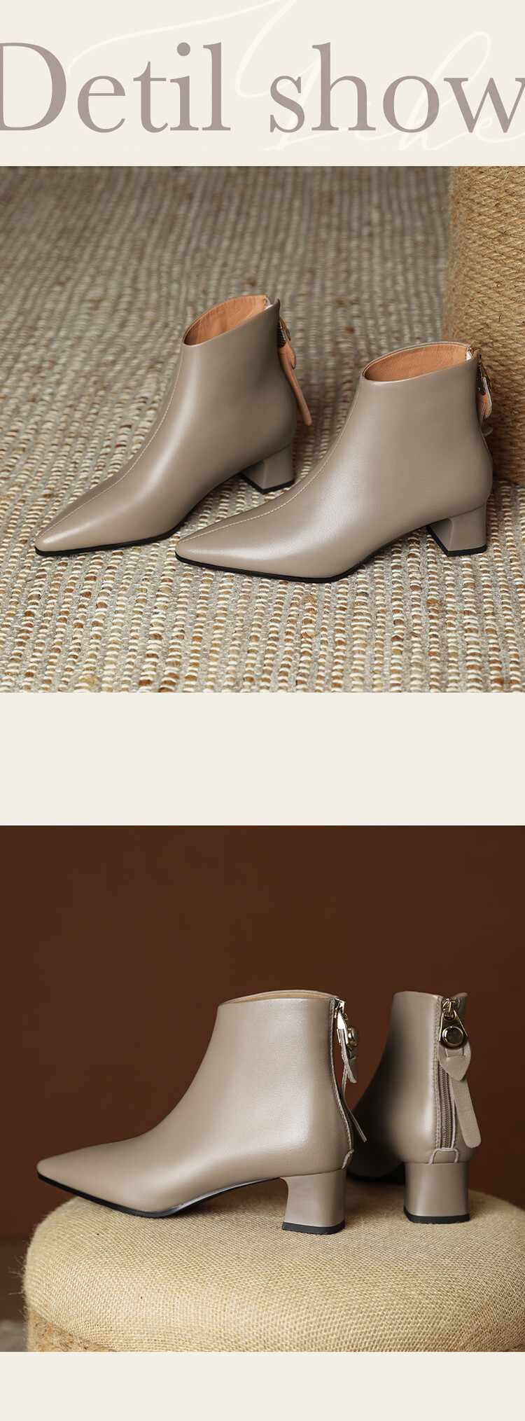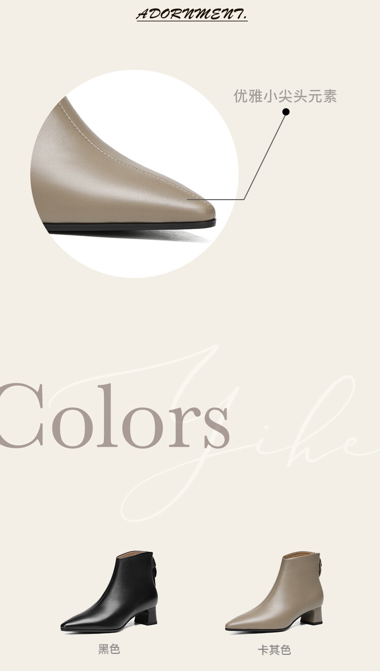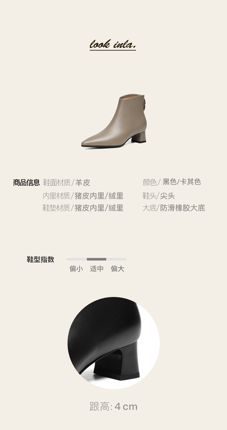 【预售5天】巨舒适~软羊皮粗跟法式及裸靴短靴女秋冬新款尖头切尔西单靴LG&2363-35