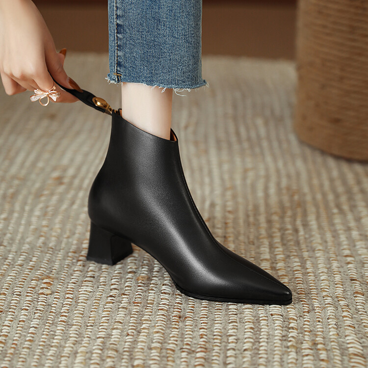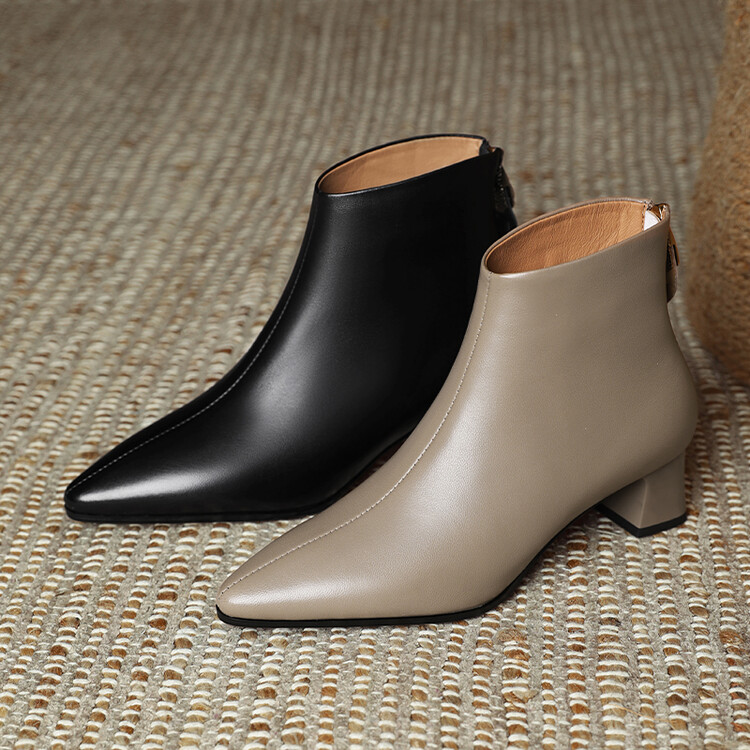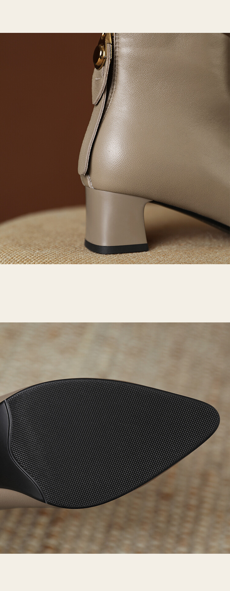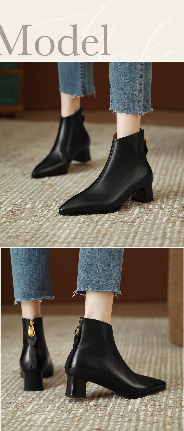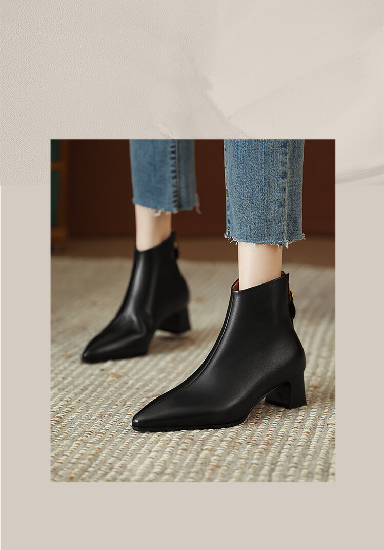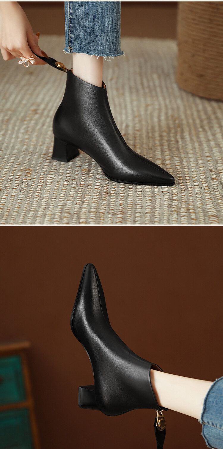 【预售5天】巨舒适~软羊皮粗跟法式及裸靴短靴女秋冬新款尖头切尔西单靴LG&2363-35