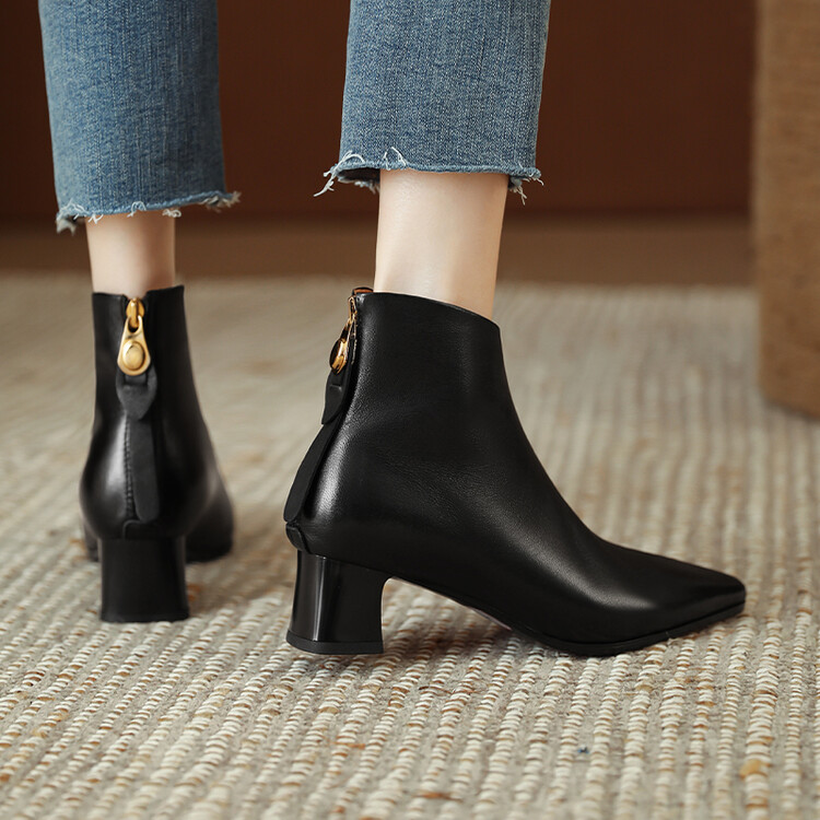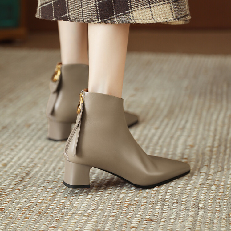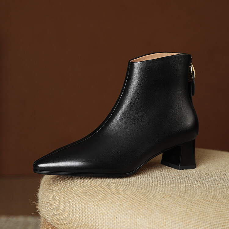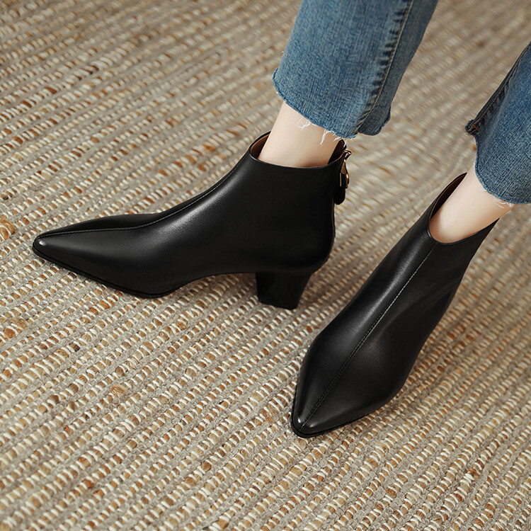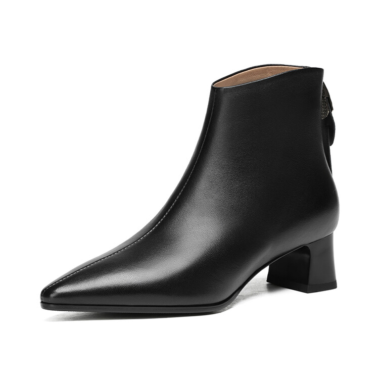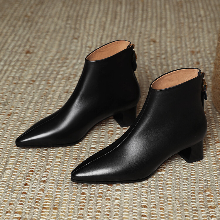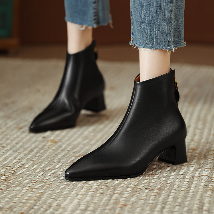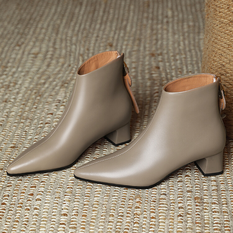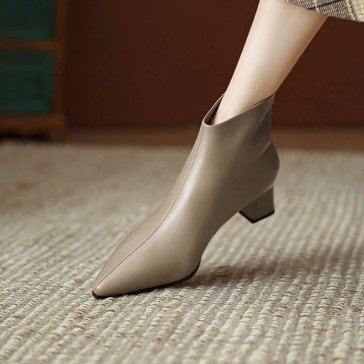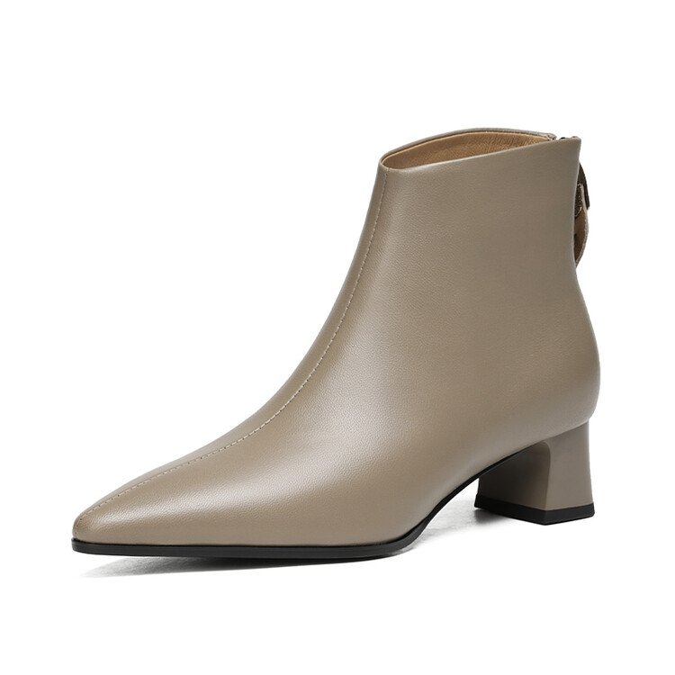 【预售5天】巨舒适~软羊皮粗跟法式及裸靴短靴女秋冬新款尖头切尔西单靴LG&2363-35