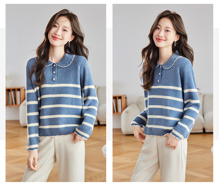 娃娃领毛衣洋气减龄小个子针织上衣,漂亮时髦条纹打底衫内搭CC-16-9610
