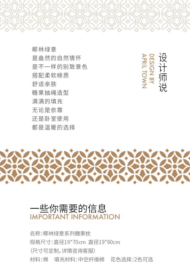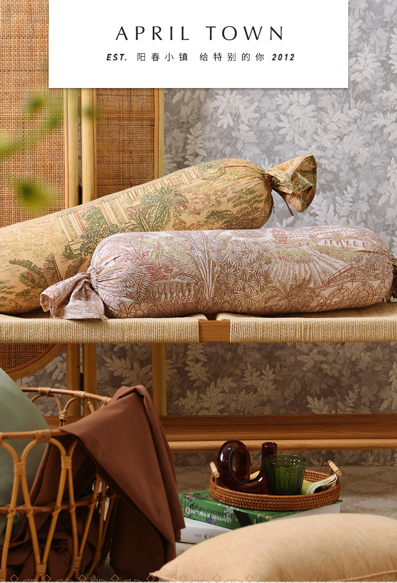椰林绿意糖果枕卧室圆柱形侧睡枕