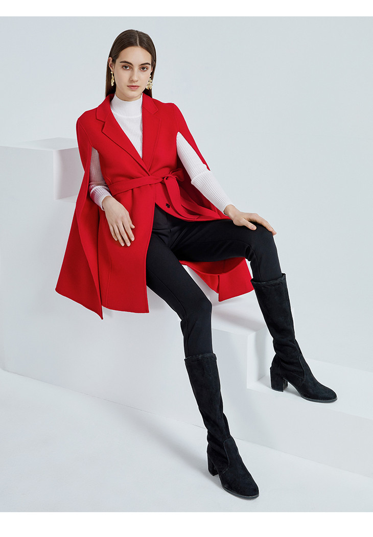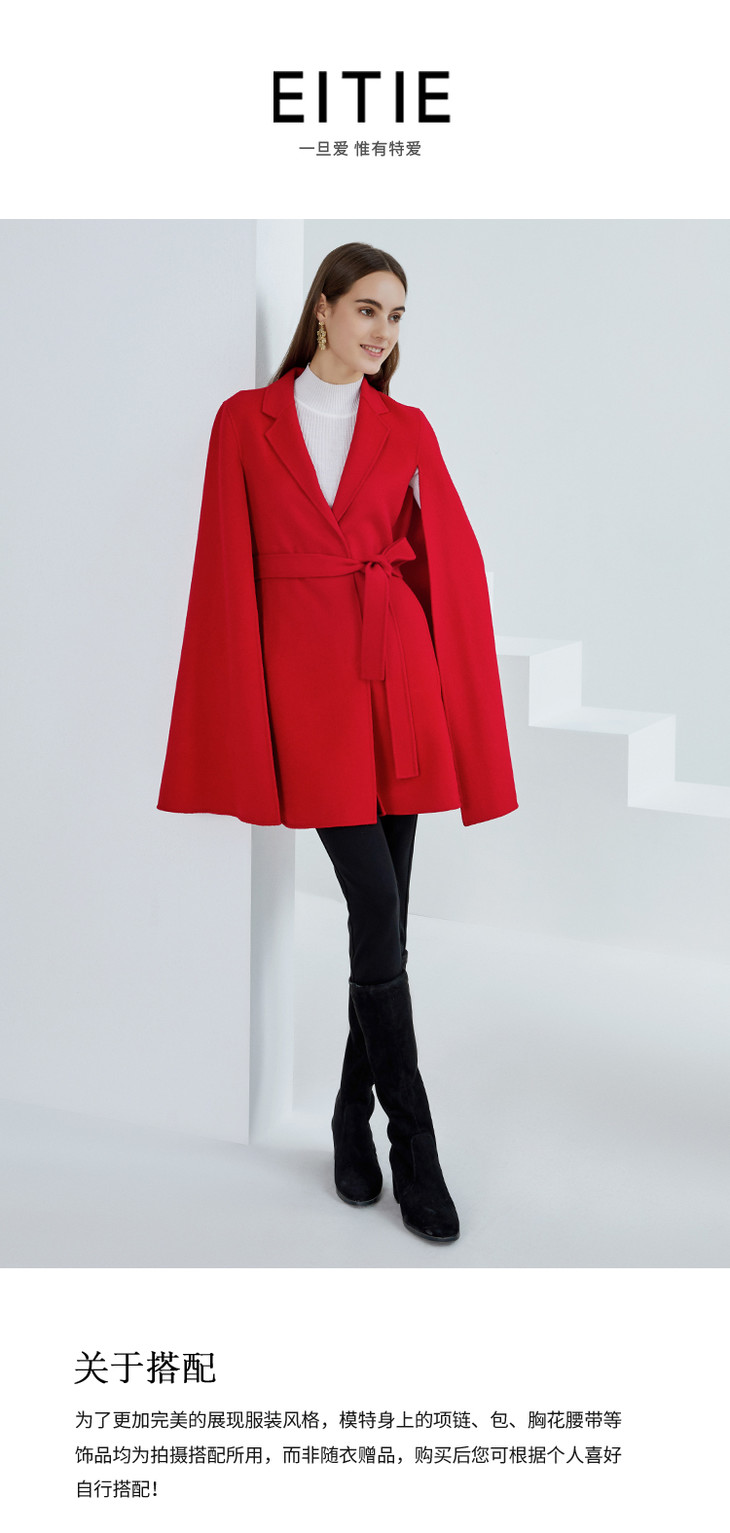 EITIE爱特爱春季新款时尚洋气优雅复古收腰收腰斗篷外套女6414106