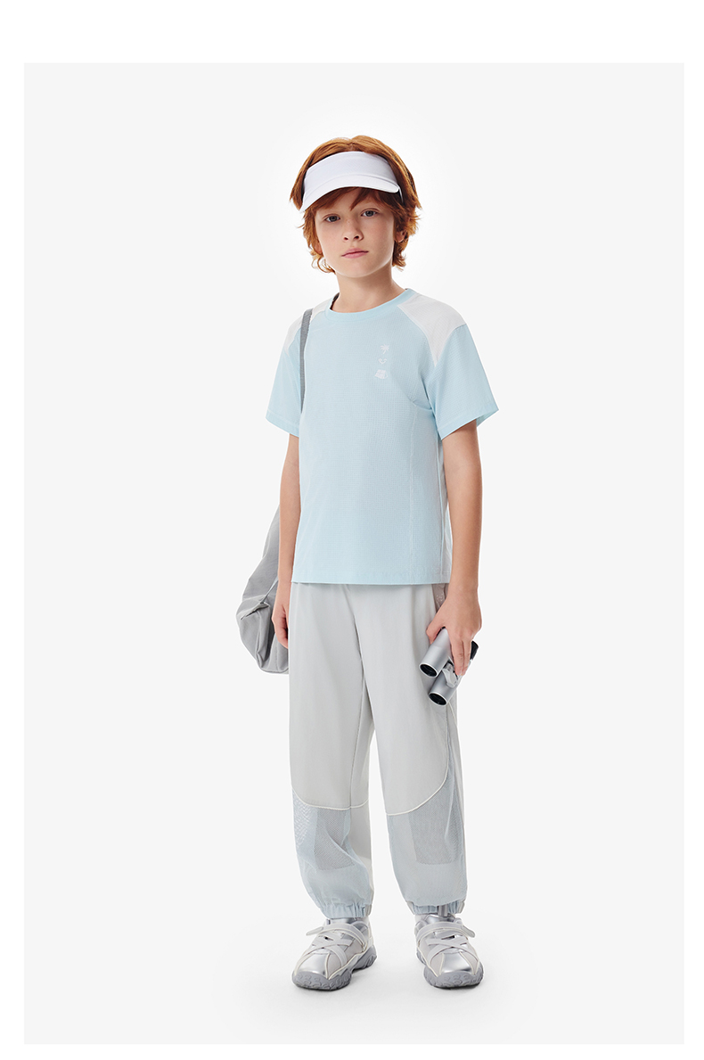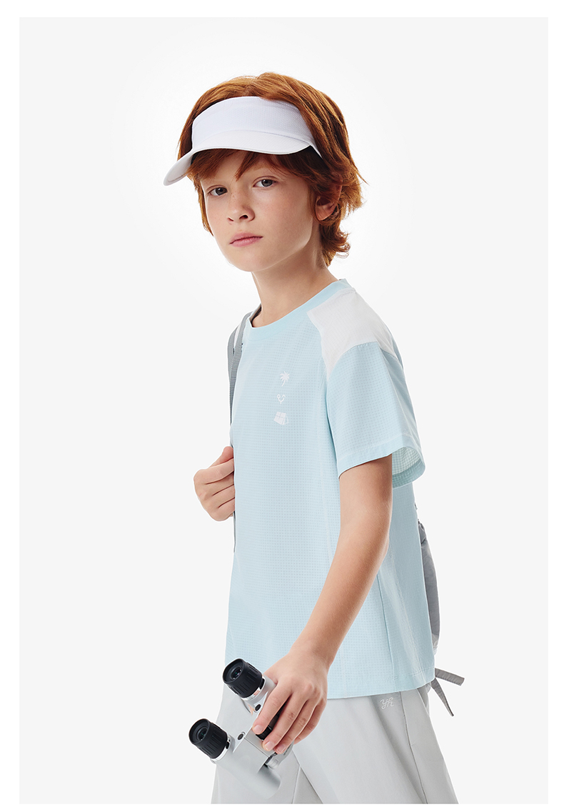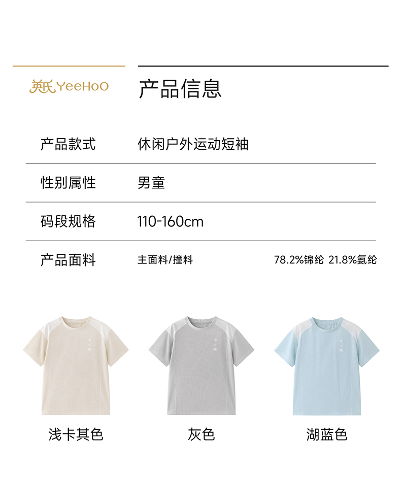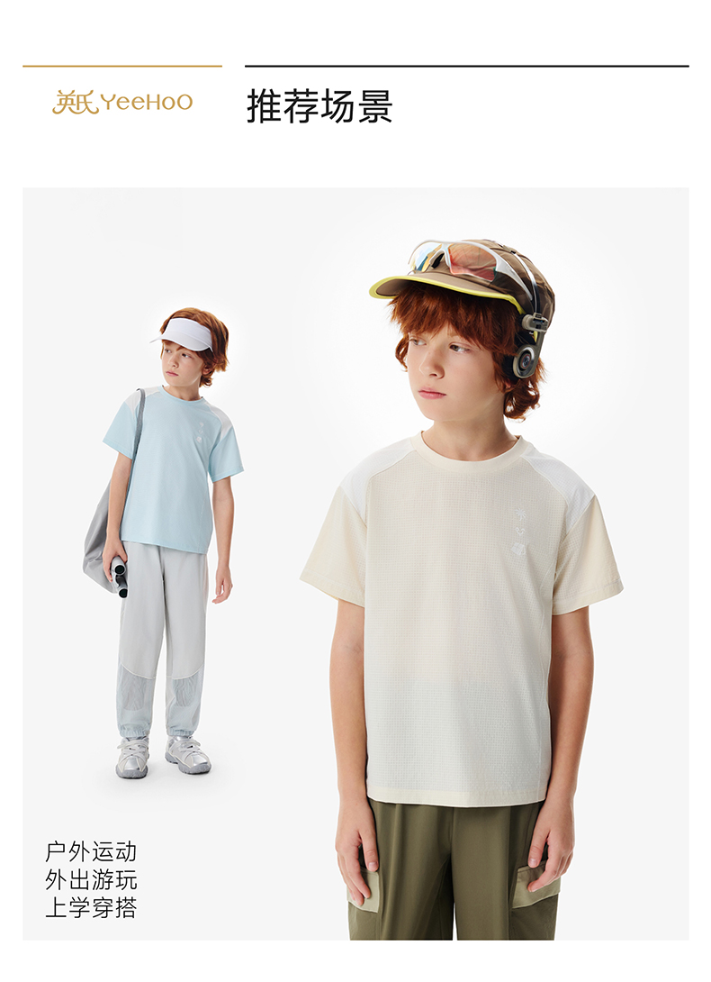 英氏儿童衣服男童短袖圆领T恤夏季运动短袖凉感防晒百搭上衣