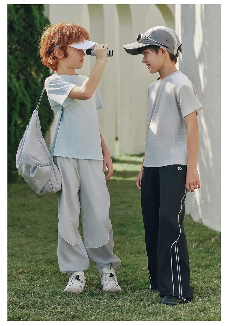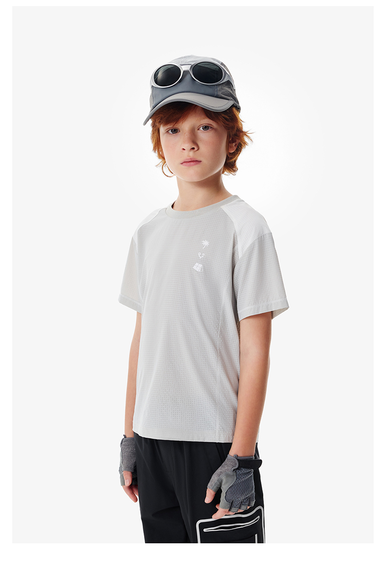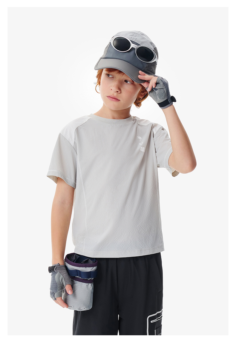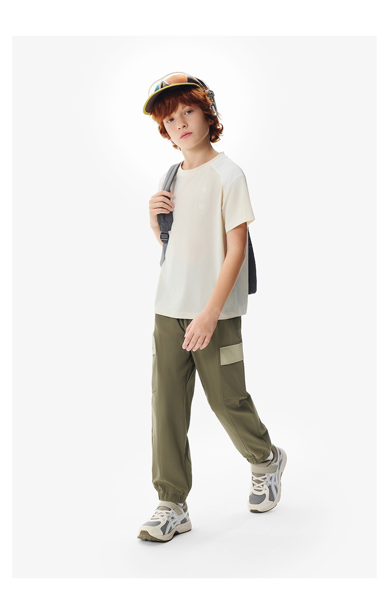 英氏儿童衣服男童短袖圆领T恤夏季运动短袖凉感防晒百搭上衣
