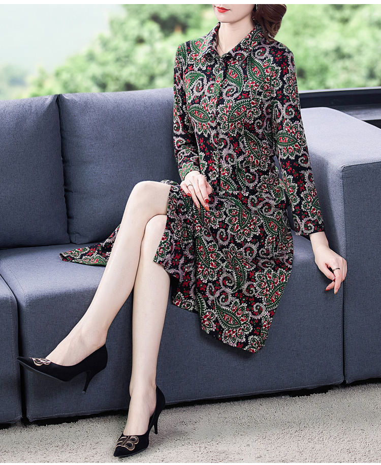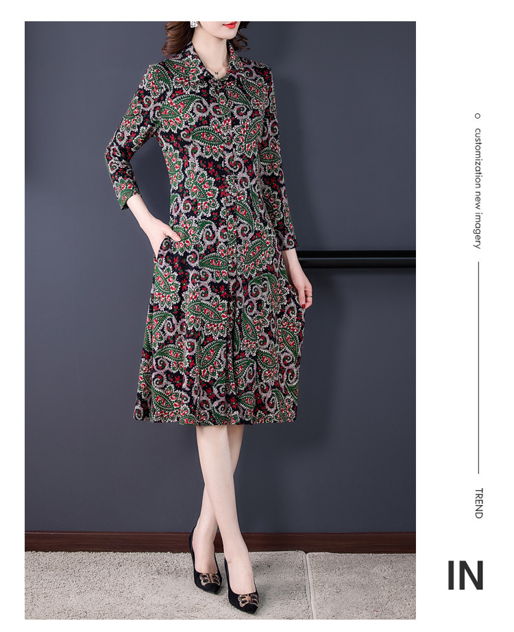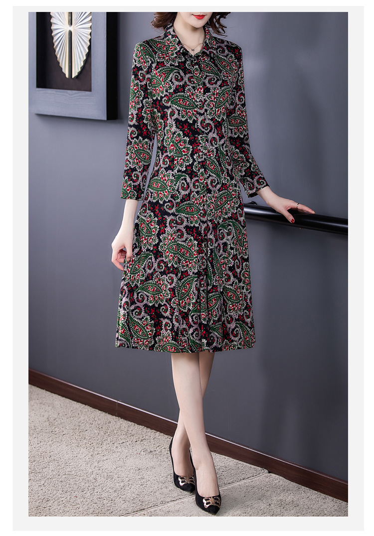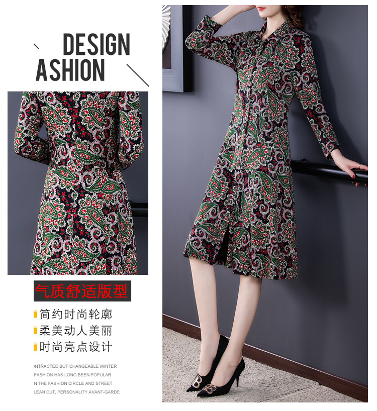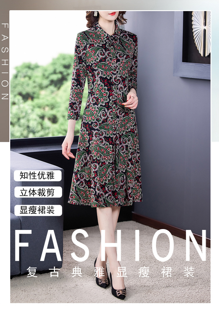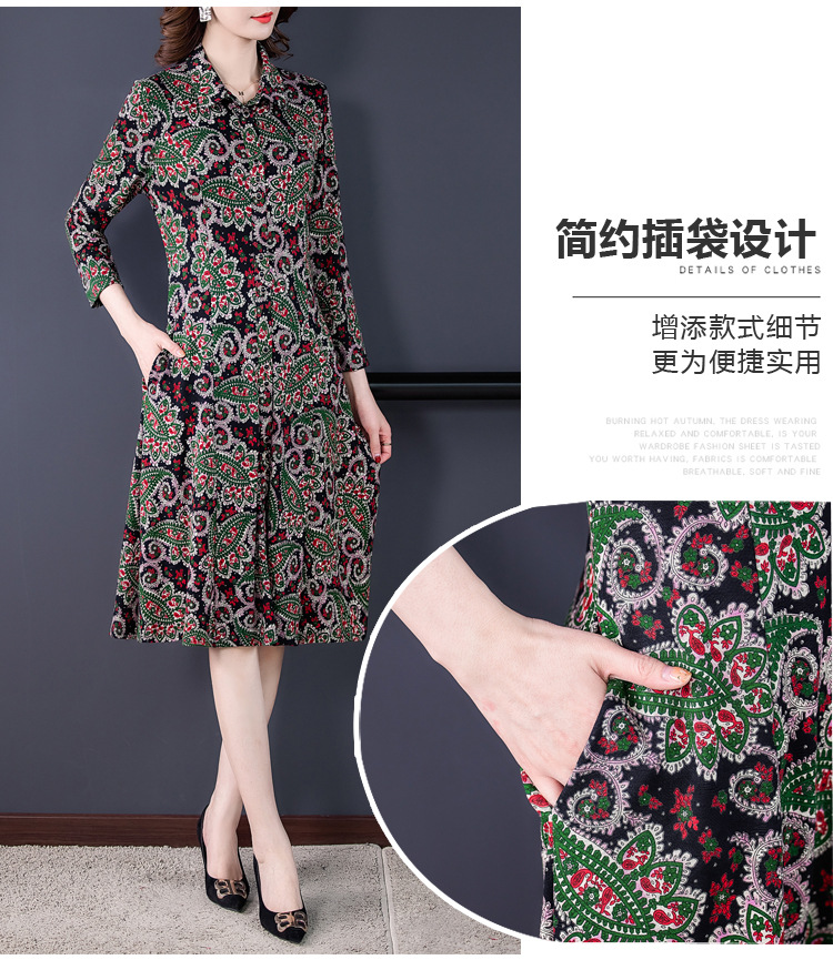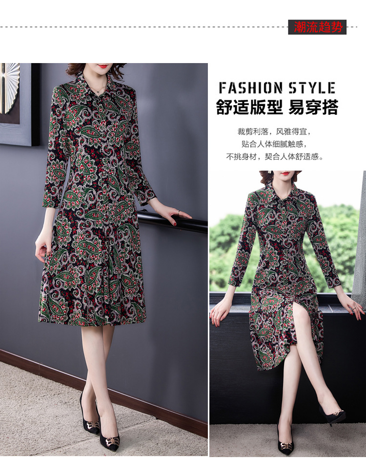 AHM-krwl7665大码七分袖中长款时尚气质优雅连衣裙