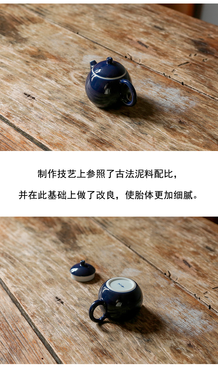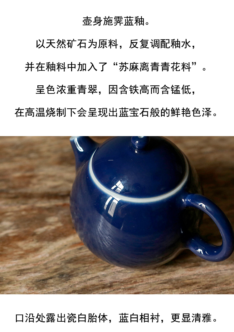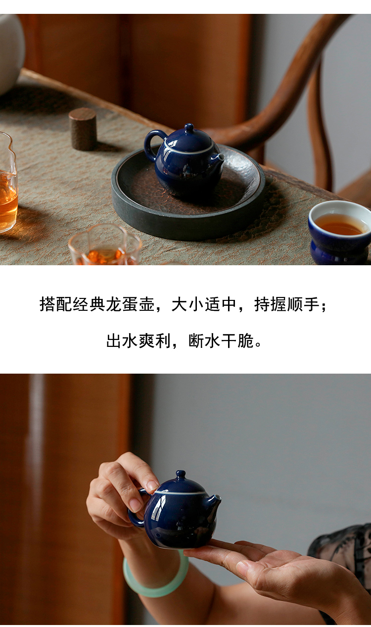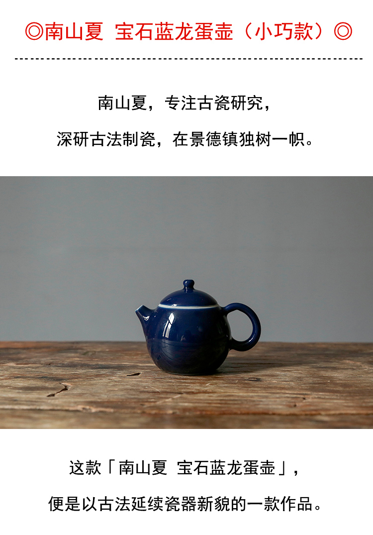 茶香记 南山夏宝石蓝龙蛋壶(小巧款)100ml古法制瓷霁蓝釉泡茶壶