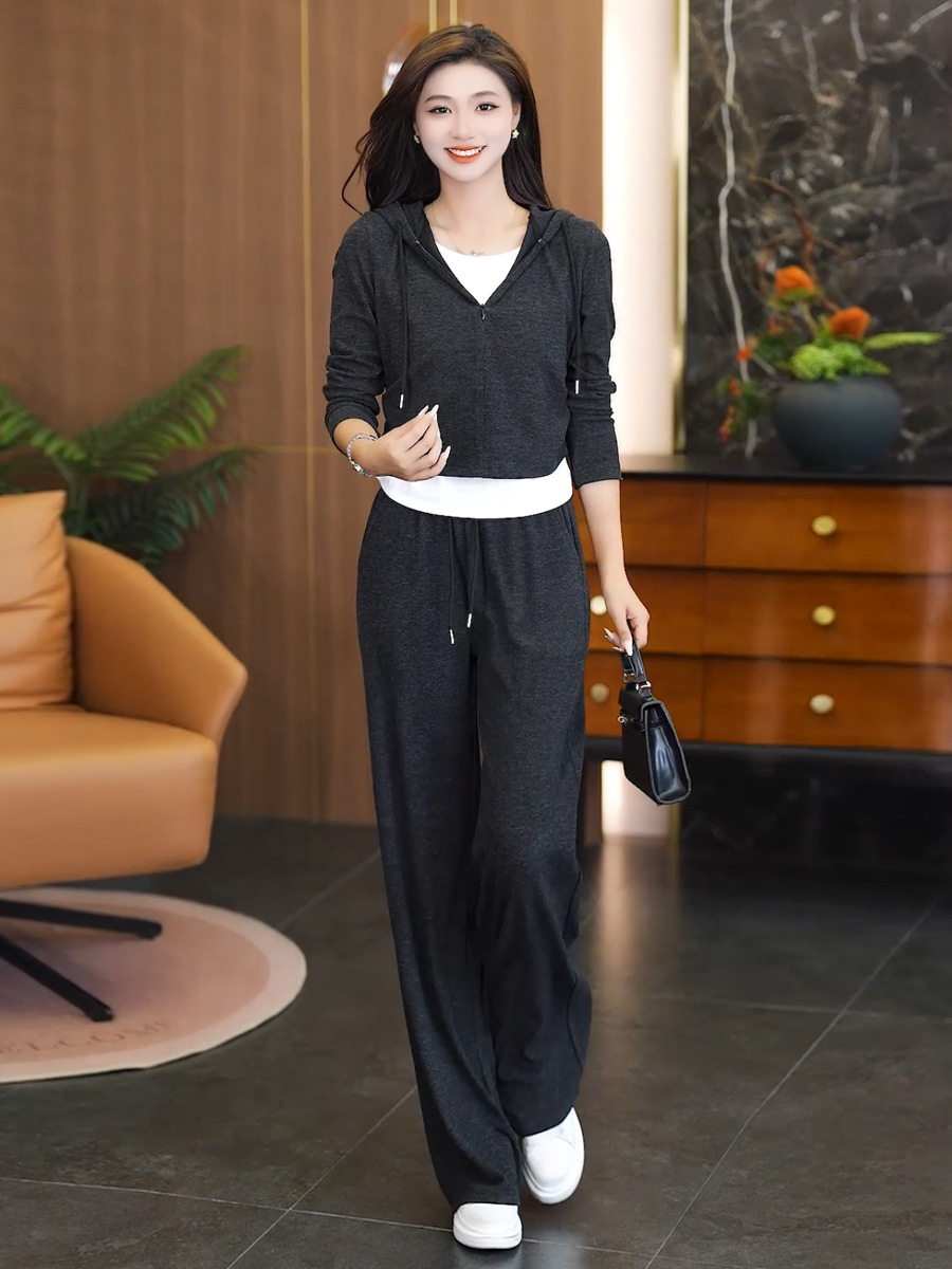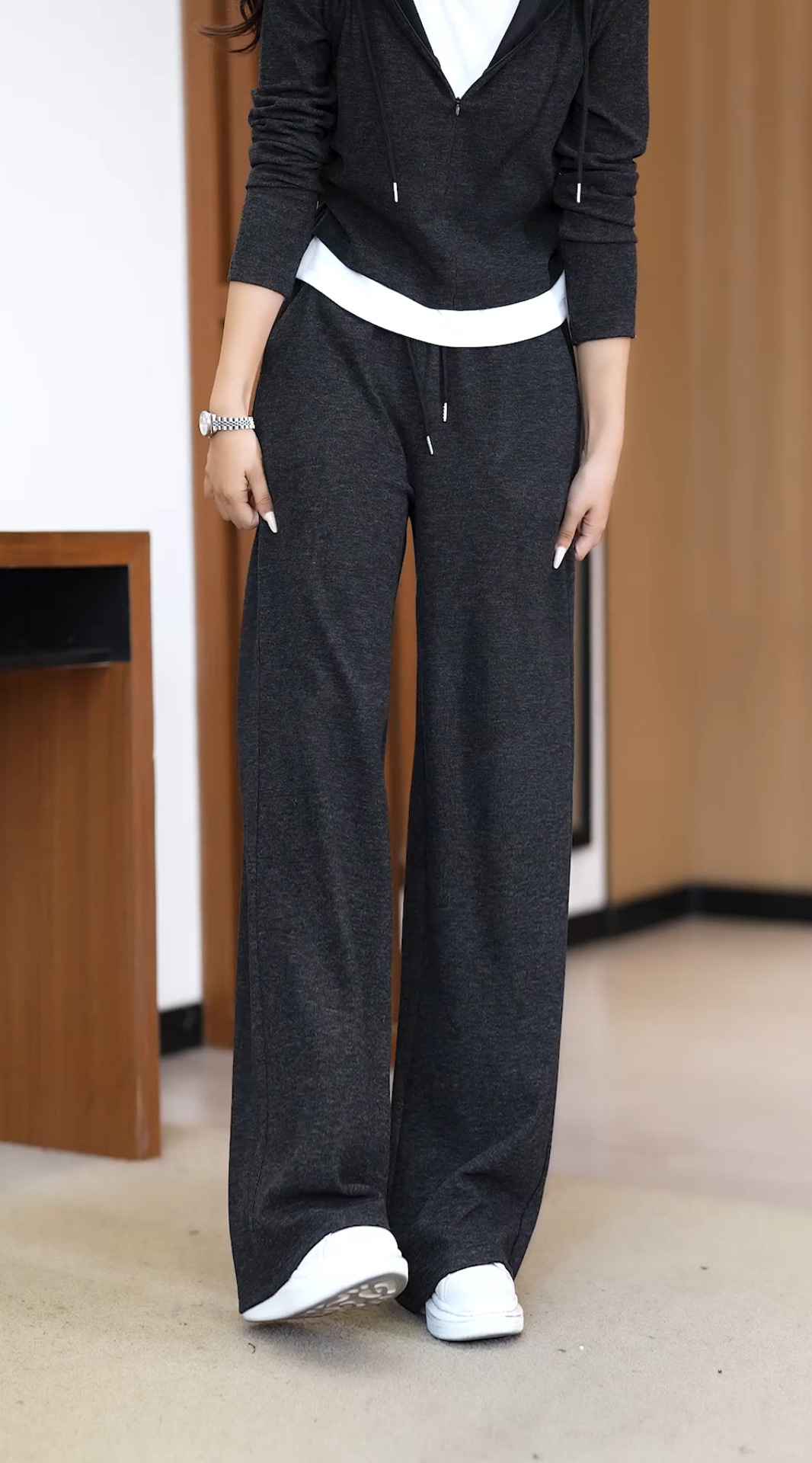 YM 8128休闲运动套装撞色假两件上衣时尚阔腿裤两件套 商品图1