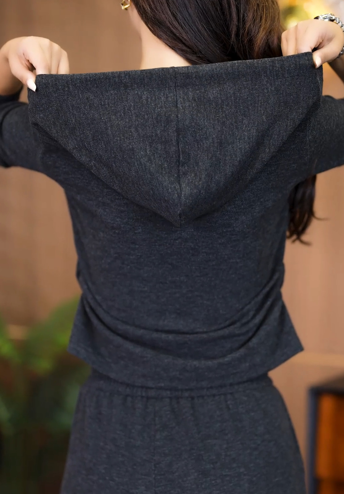 YM 8128休闲运动套装撞色假两件上衣时尚阔腿裤两件套 商品图4