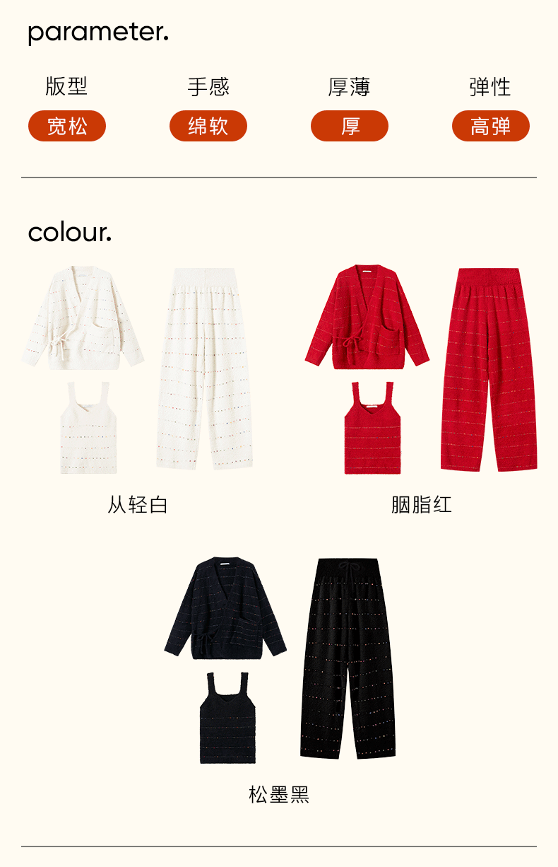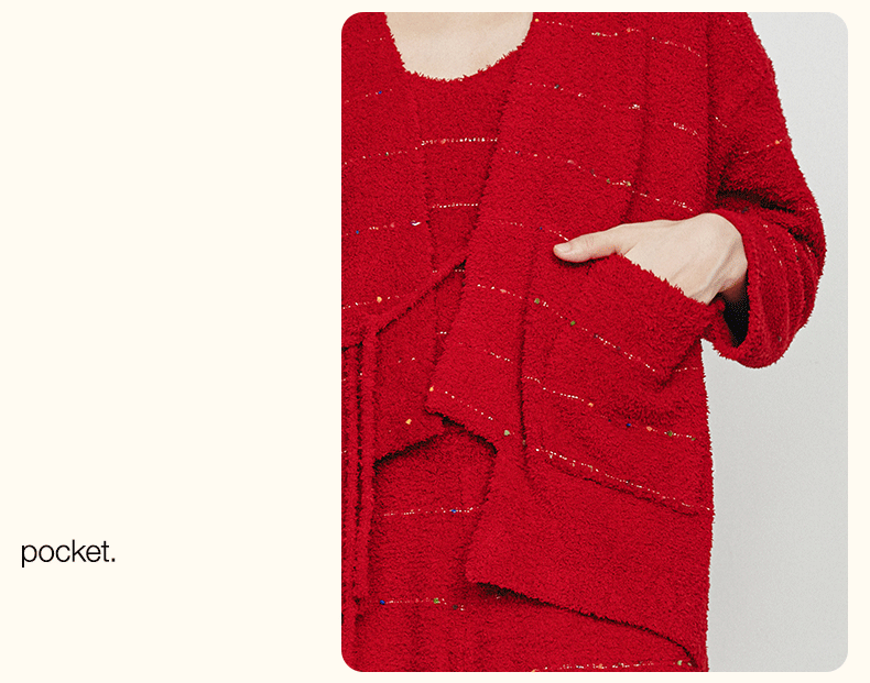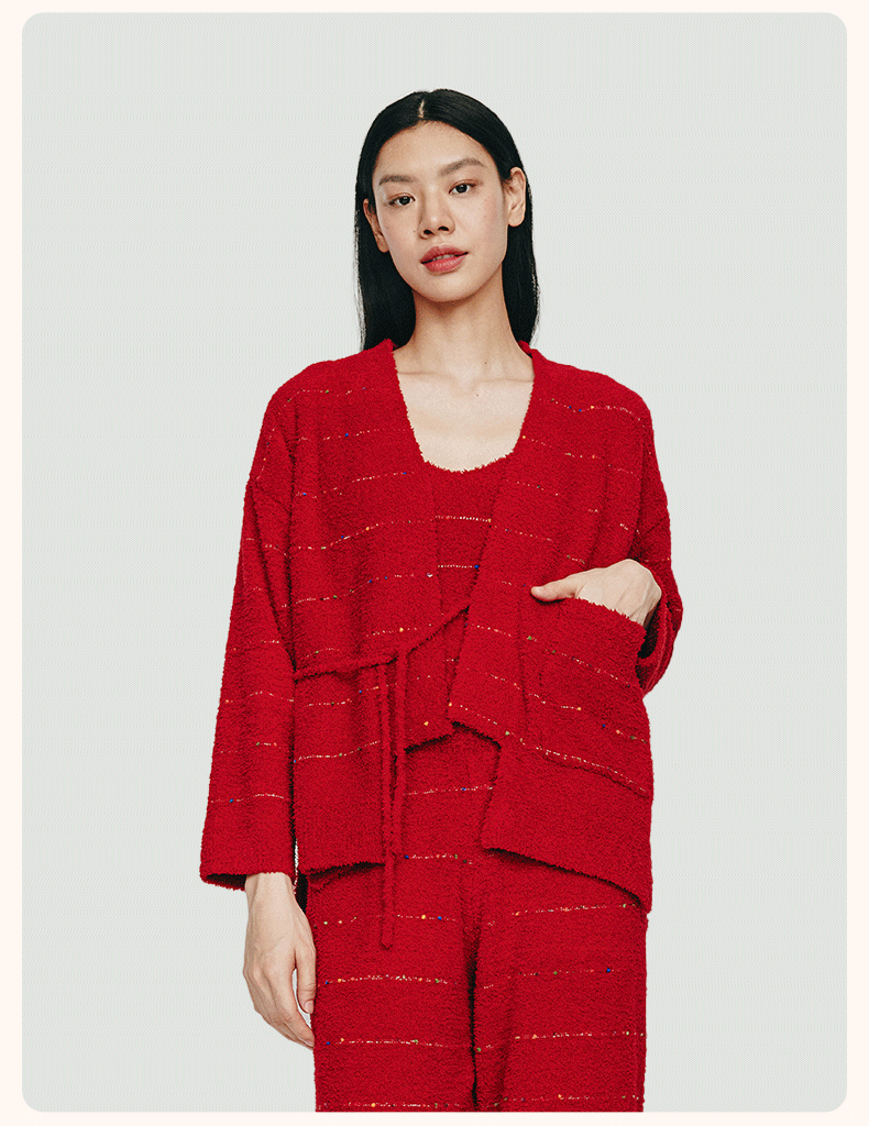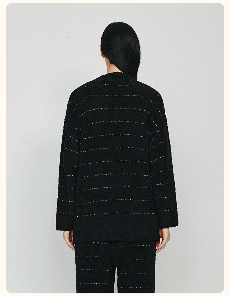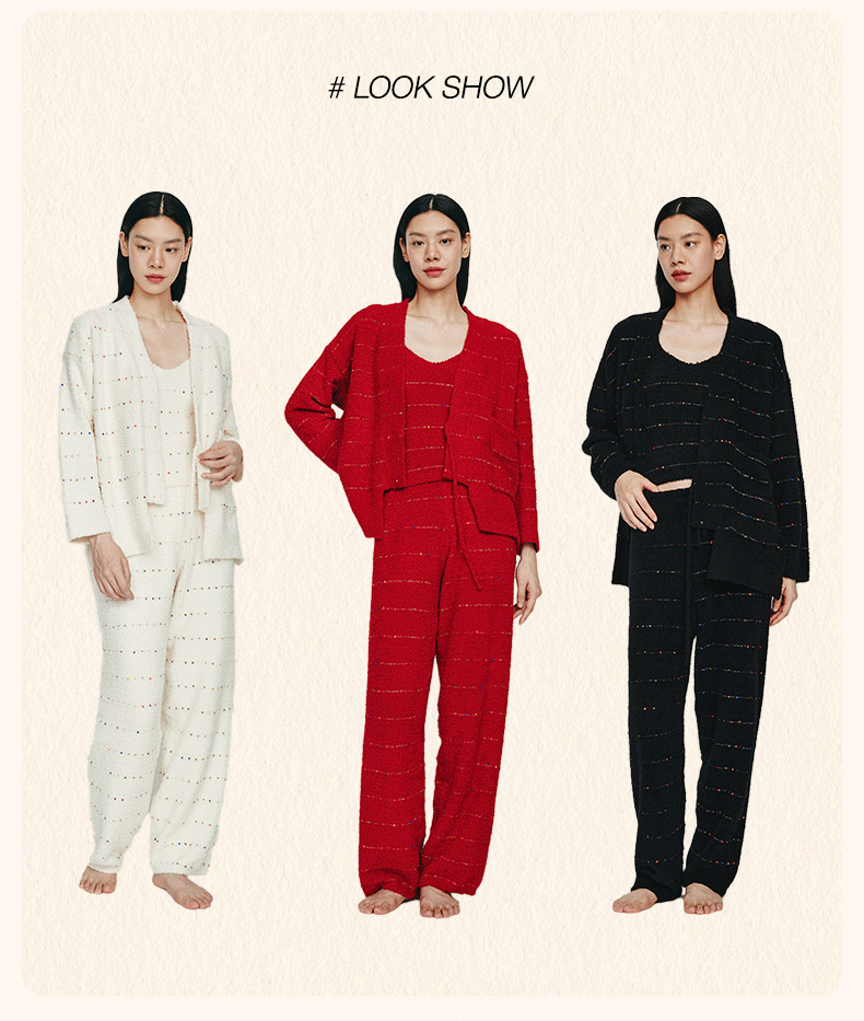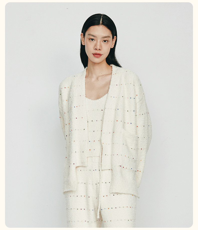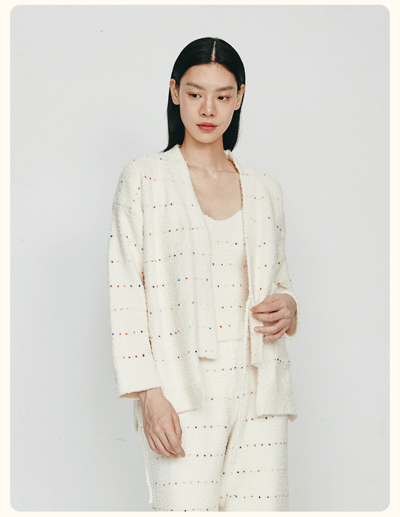 从轻秋冬家居服女豆豆绒系列七彩纱混纺抗静电恒温蓄暖开衫三件套