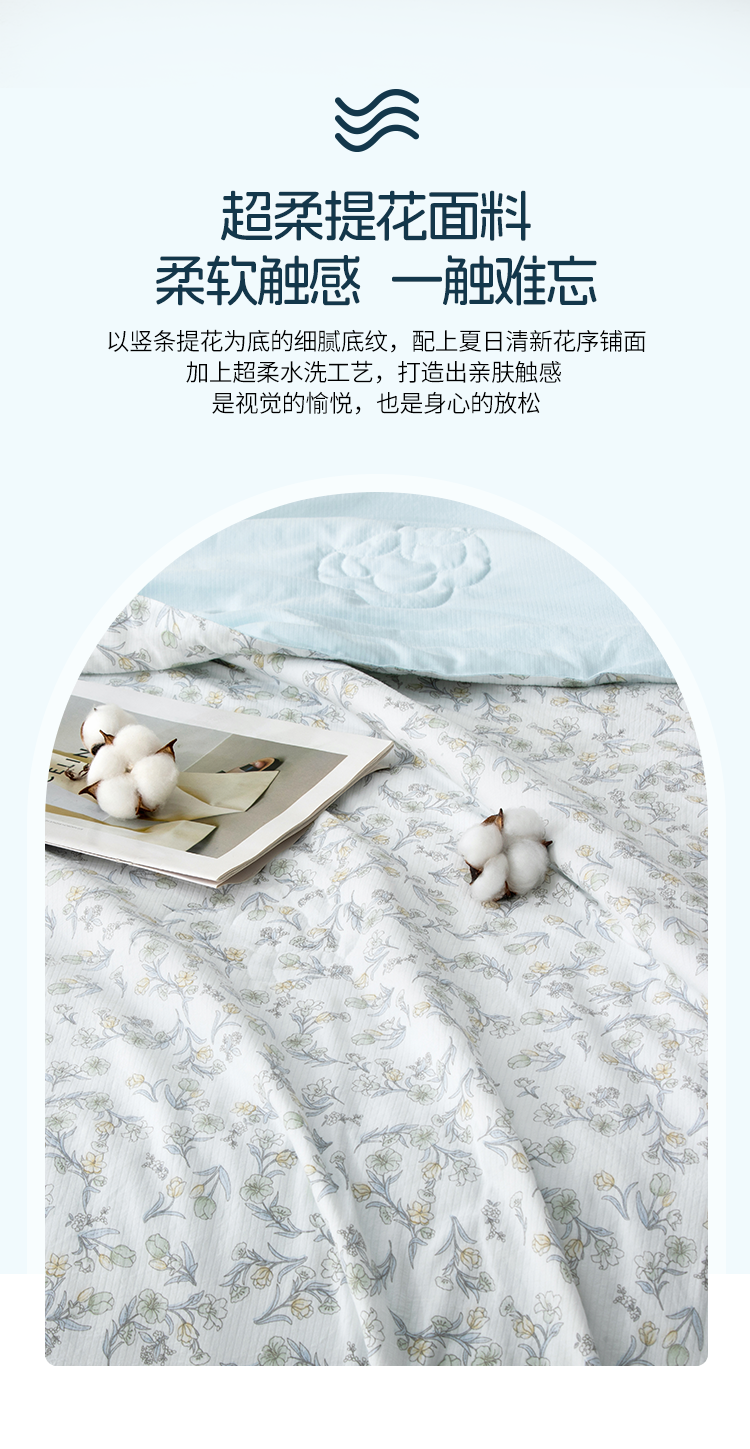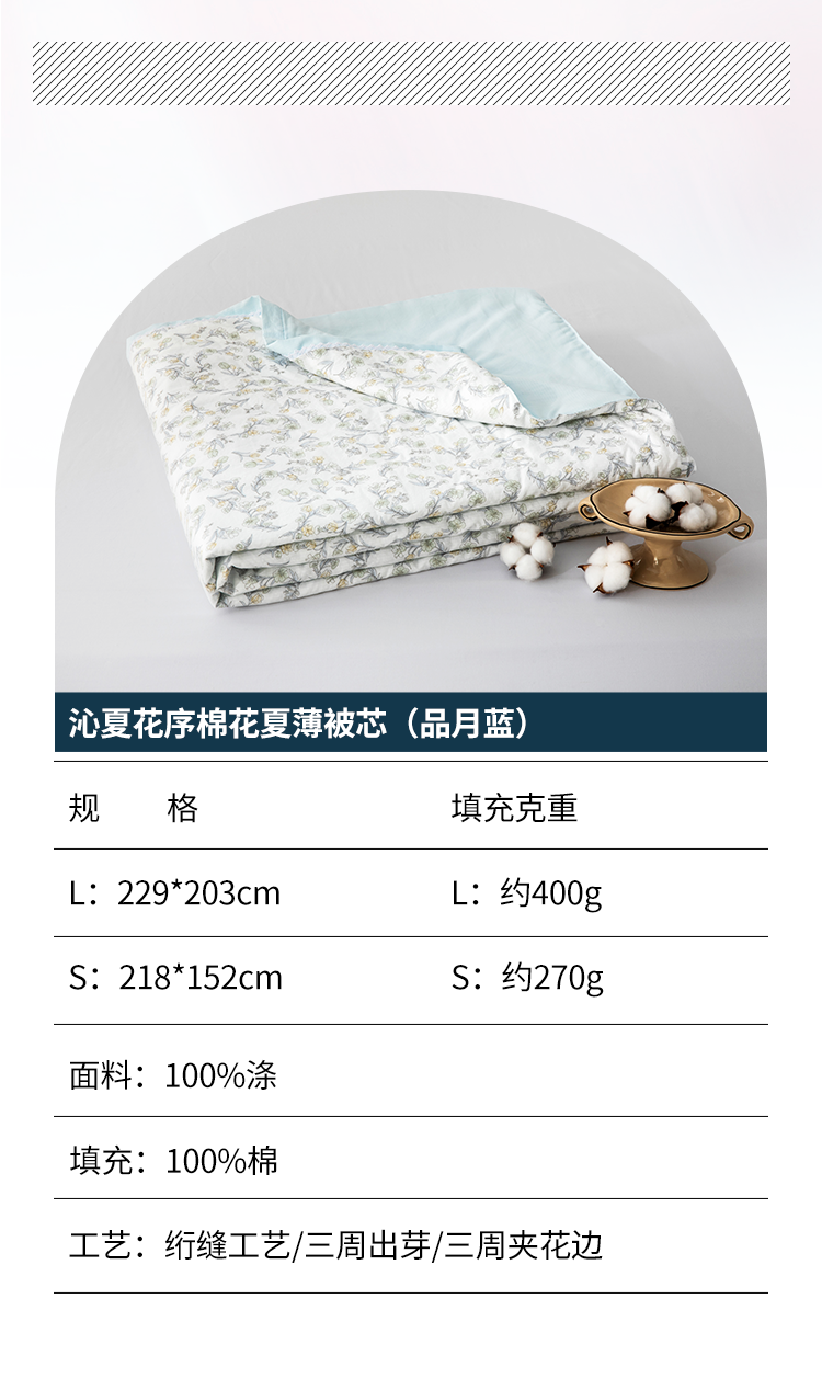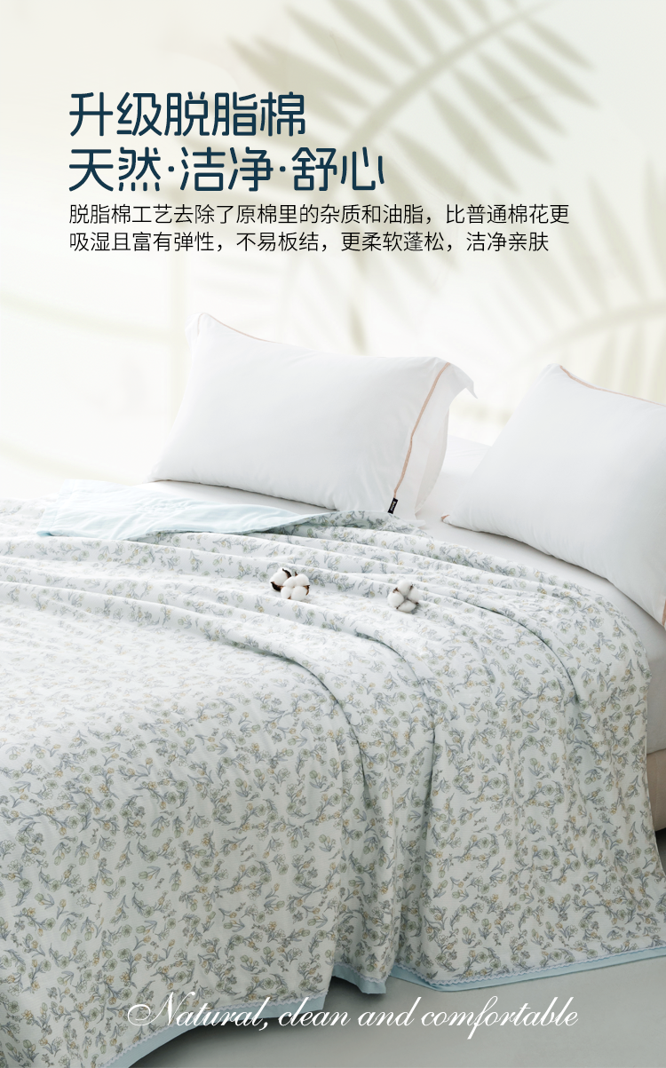 【脱脂棉花夏薄被】/空调被 【会员专享】多喜爱 沁夏花序棉花夏薄被芯/空调被(慕斯粉/品月蓝)【花边&出芽】【100%新疆棉】【升级脱脂棉】【提花面料】【A类抑菌】多层铺垫超柔水洗