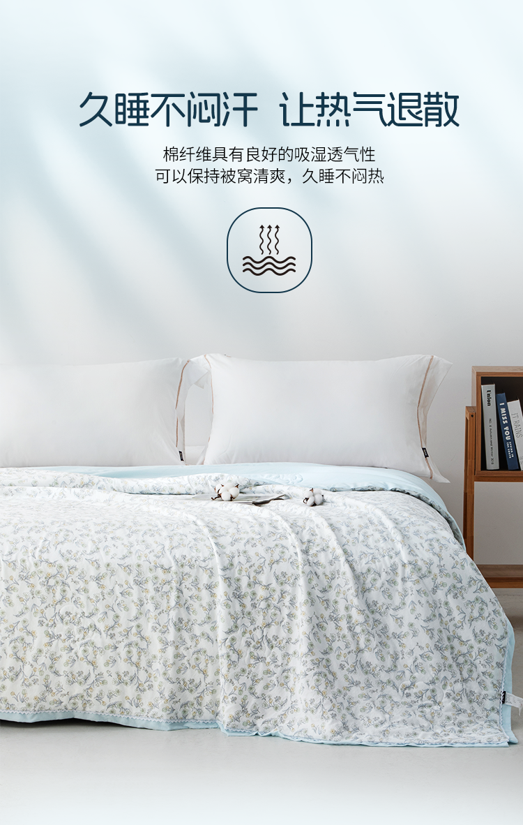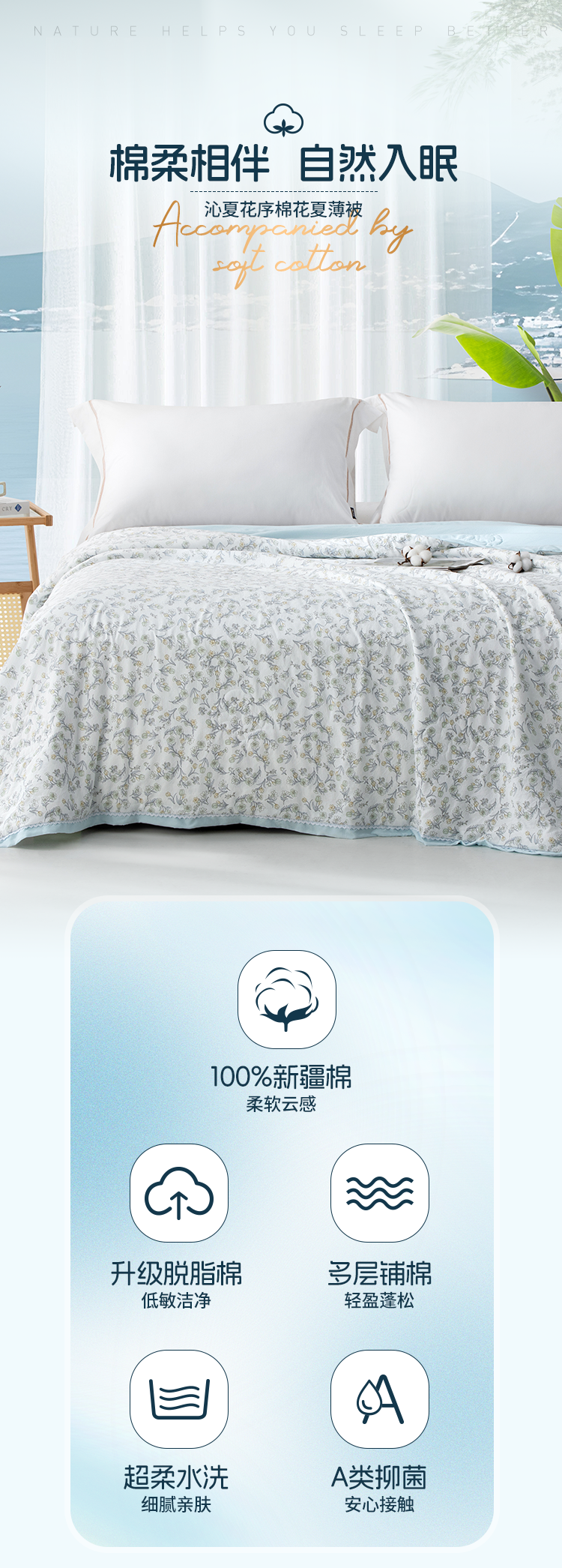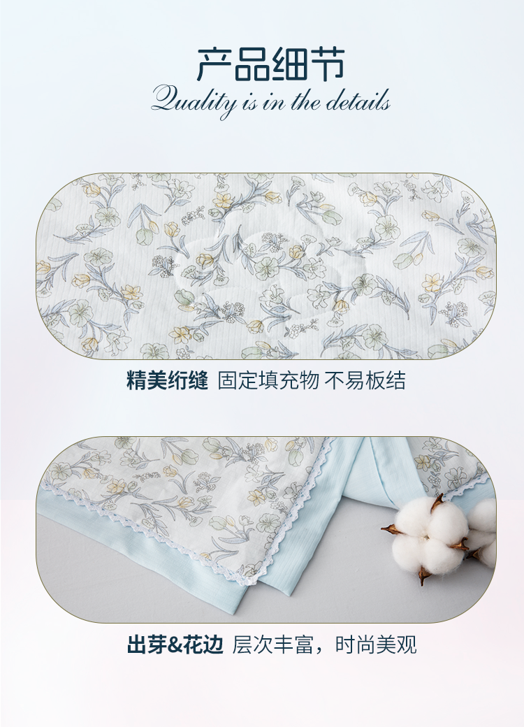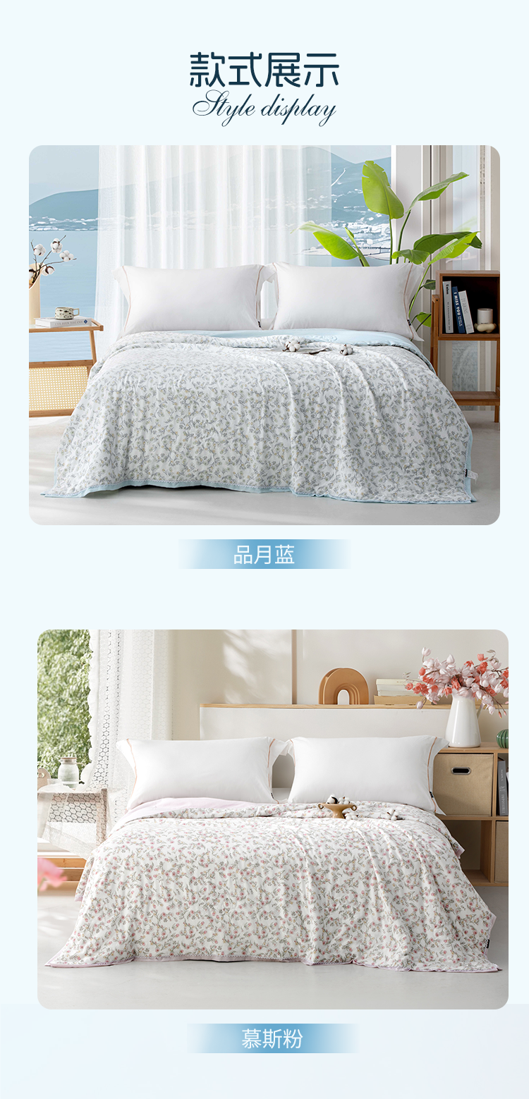 【脱脂棉花夏薄被】/空调被 【会员专享】多喜爱 沁夏花序棉花夏薄被芯/空调被(慕斯粉/品月蓝)【花边&出芽】【100%新疆棉】【升级脱脂棉】【提花面料】【A类抑菌】多层铺垫超柔水洗