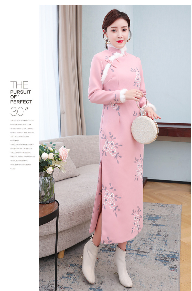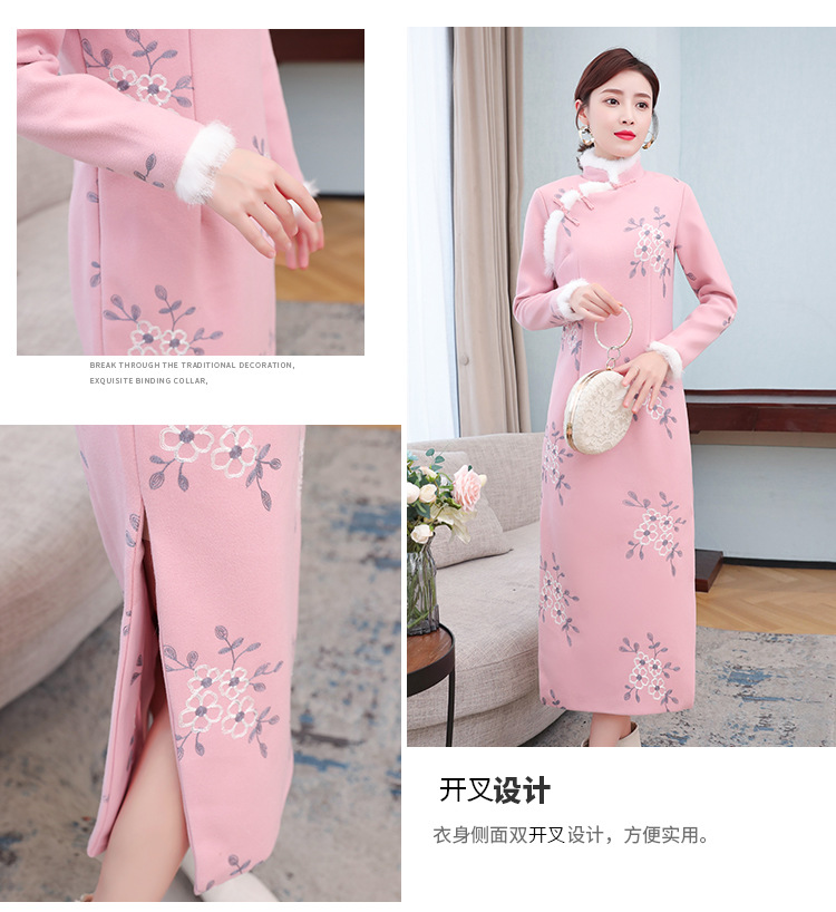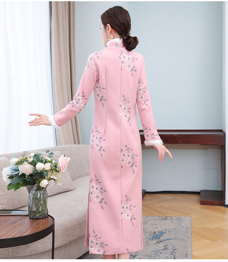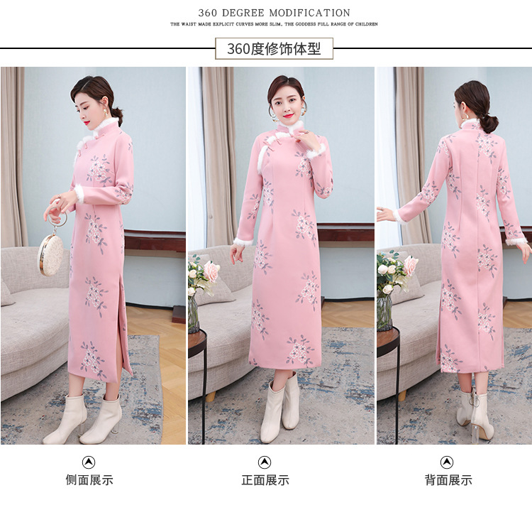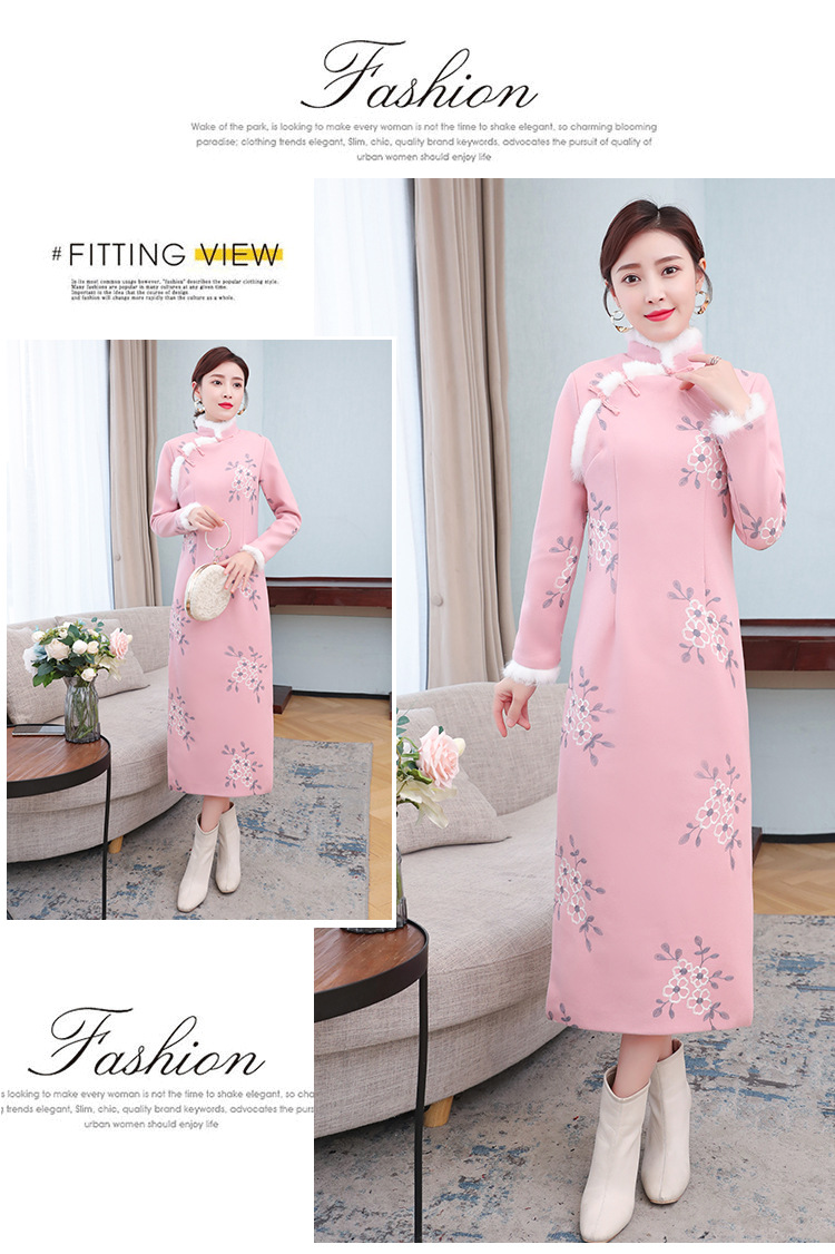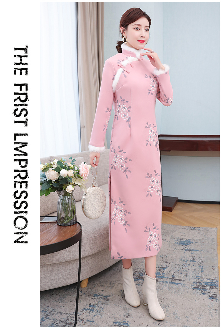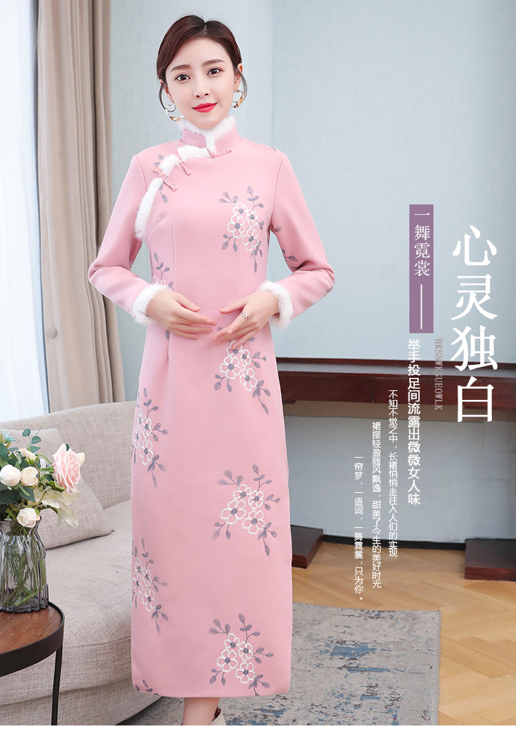 AHM-ylxz1666加厚夹棉改良旗袍连衣裙国潮旧事御姐风毛毛领2020秋冬加长款裙子