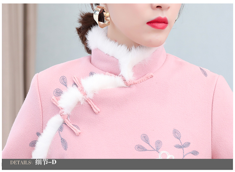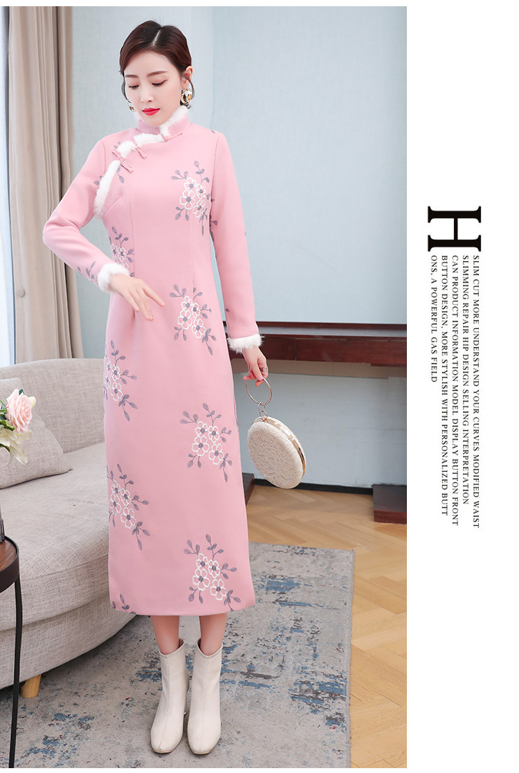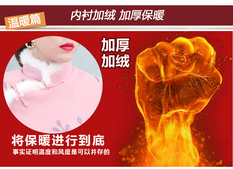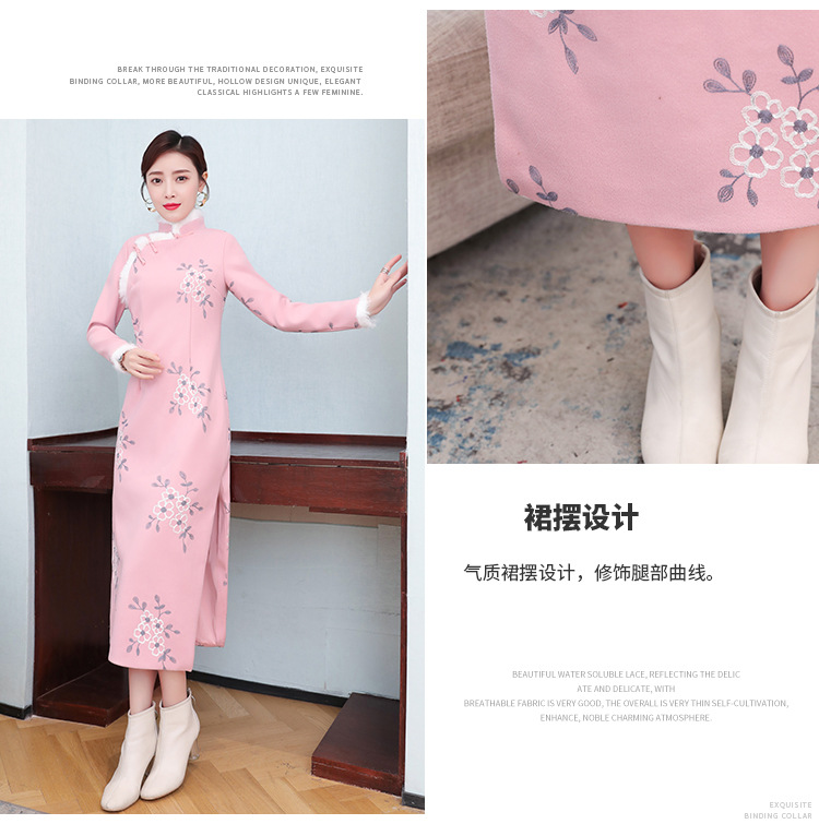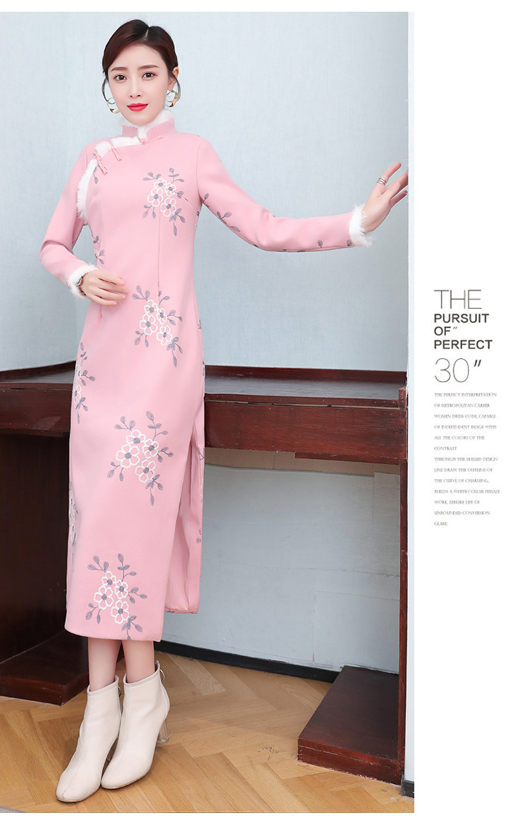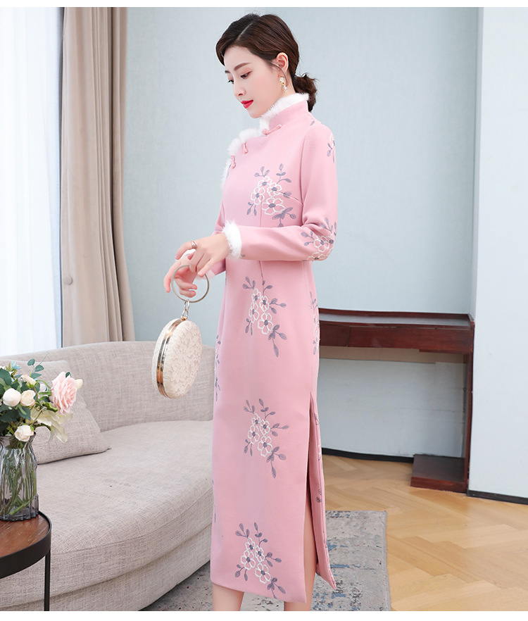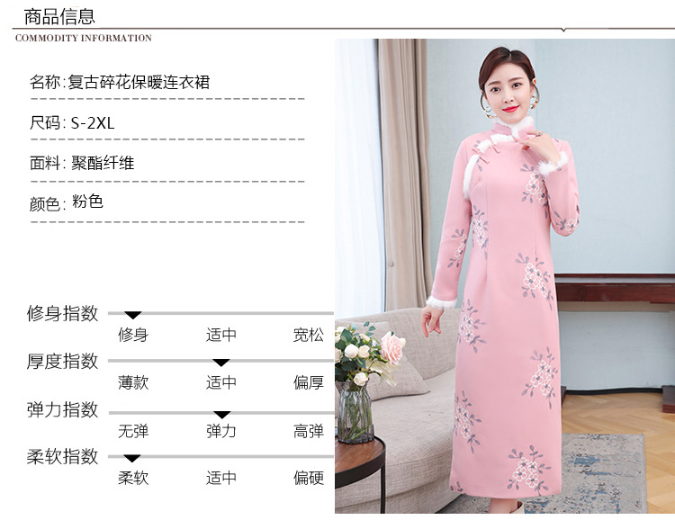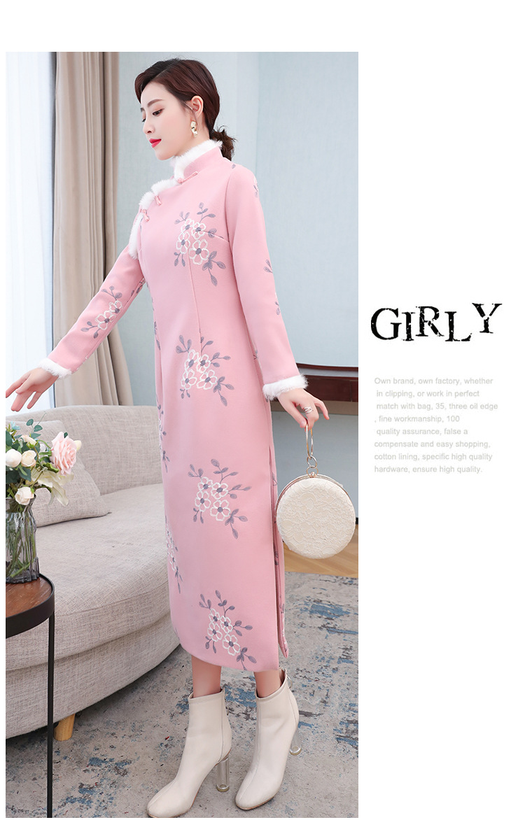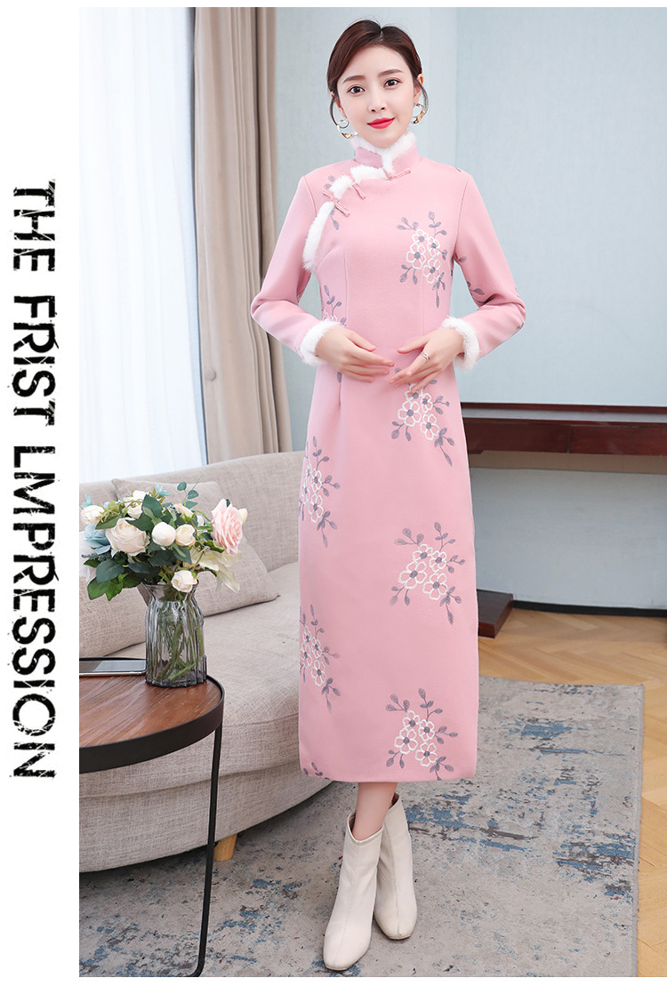 AHM-ylxz1666加厚夹棉改良旗袍连衣裙国潮旧事御姐风毛毛领2020秋冬加长款裙子