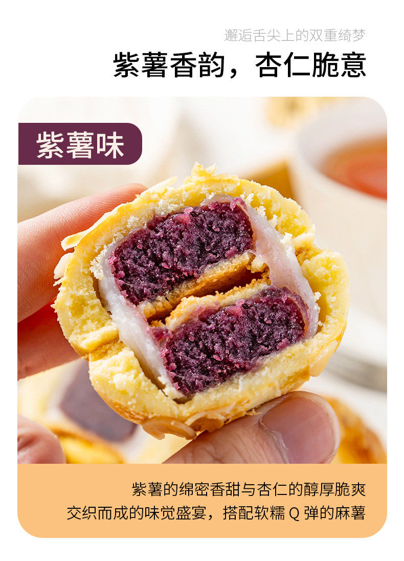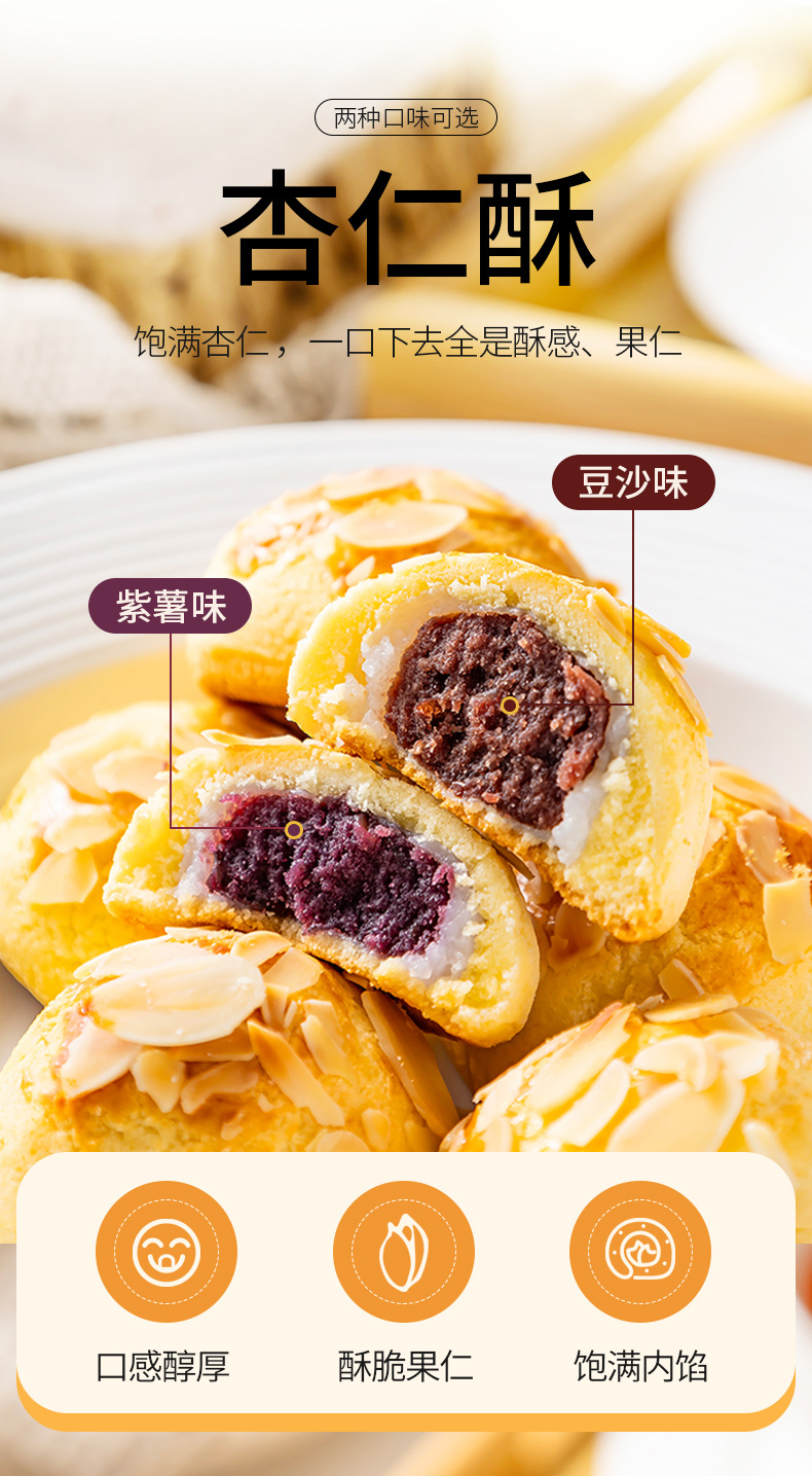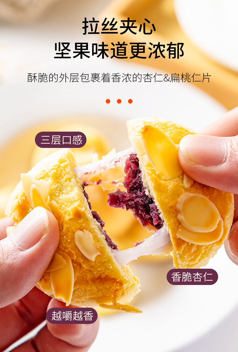 【饱腹扛饿!清甜不腻】豆沙红枣紫薯杏仁酥三重口感拉丝麻薯夹心代餐零食散装.xb