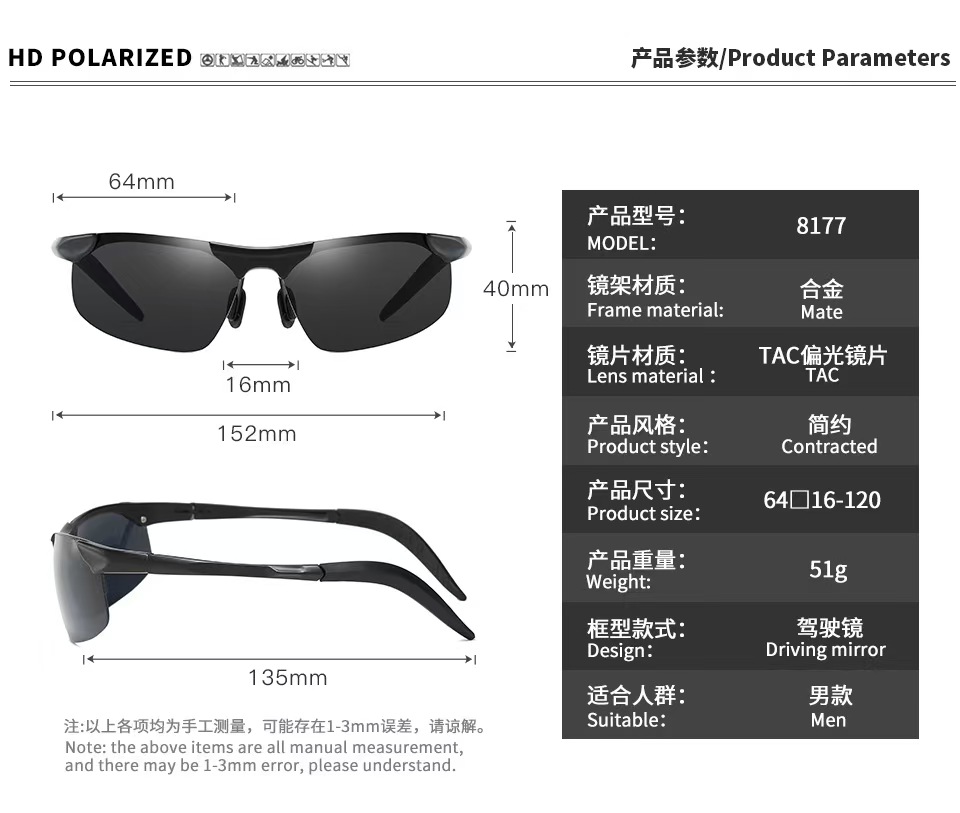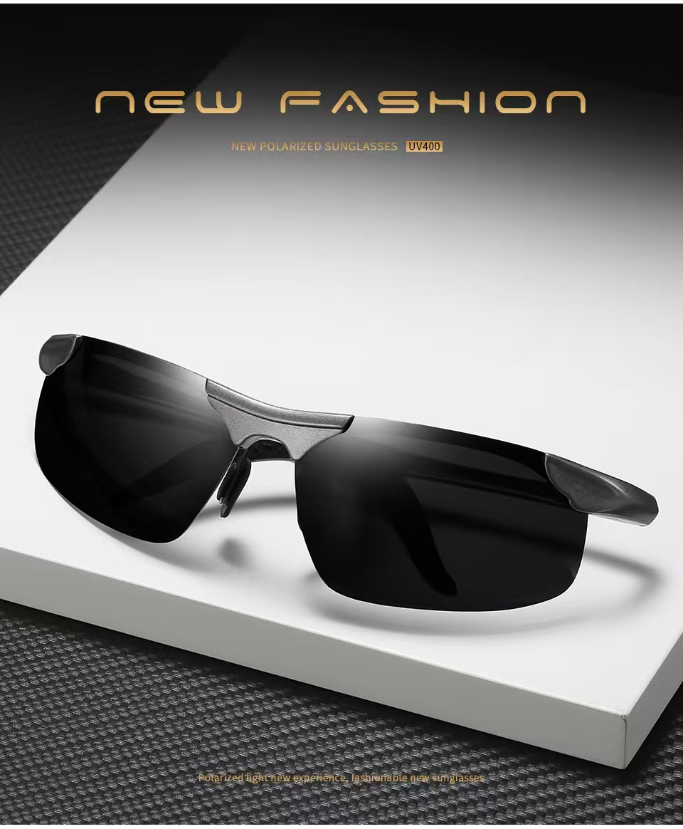 跑能新款偏光太阳镜/时尚运动眼镜/金属复古半框